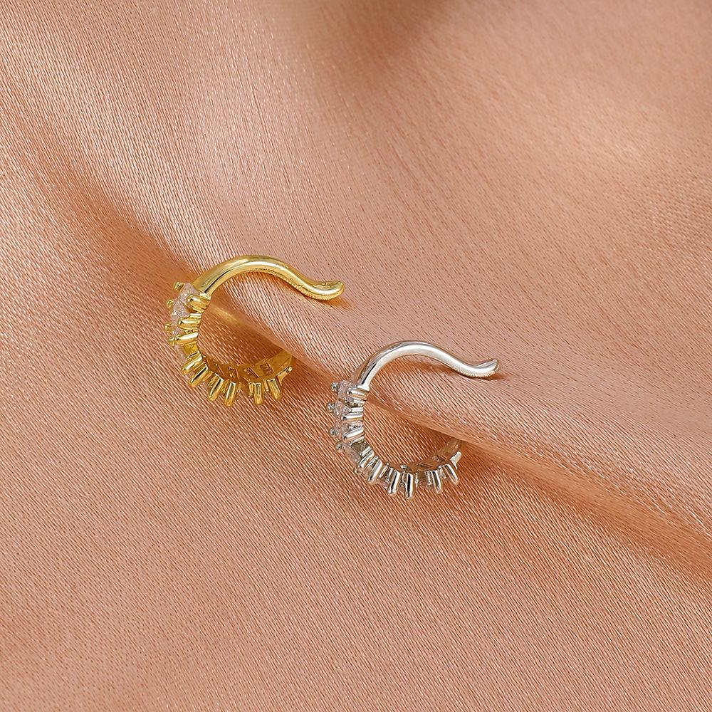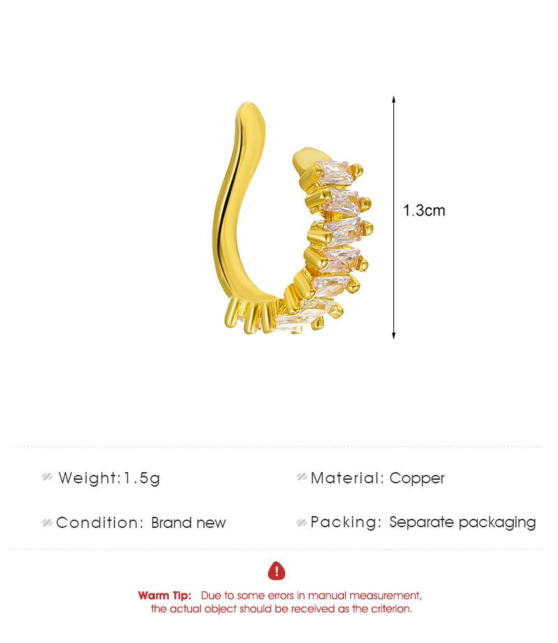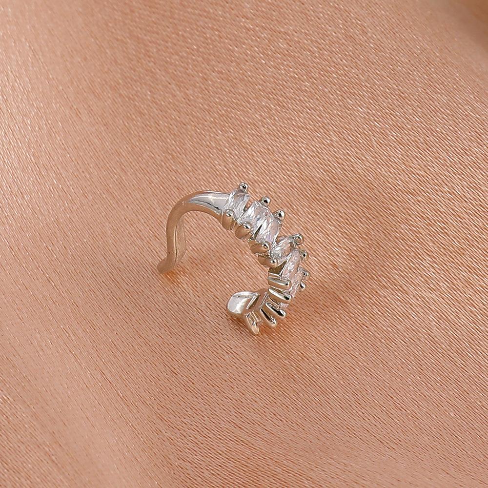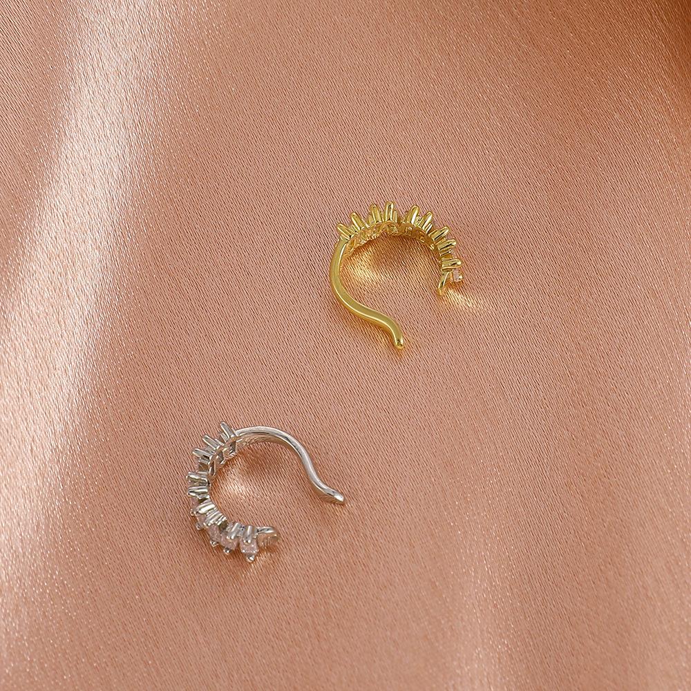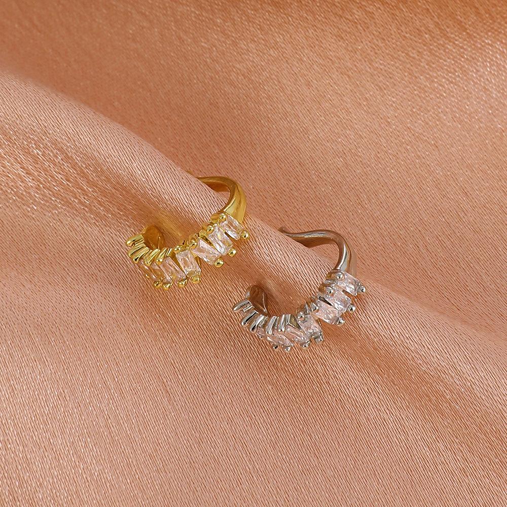 Clips para orejas de cobre con incrustaciones de circonitas estilo Ins europeo y americano para orejas no perforadas, clips modernos de lujo accesible geométricos en forma de C para cartílago para mujer, aretes transfronterizos