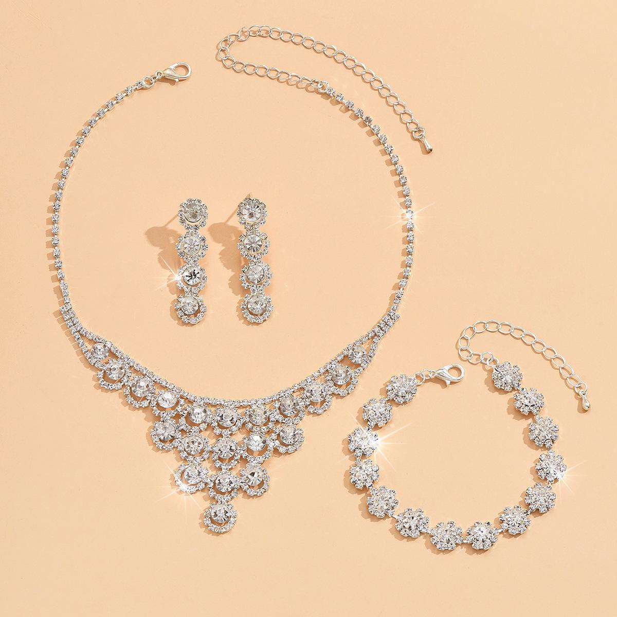Conjunto de joyería nupcial, collar de diamantes de imitación, pendientes, traje de cena, cadena de clavícula a juego, conjunto de joyería nupcial para mujer