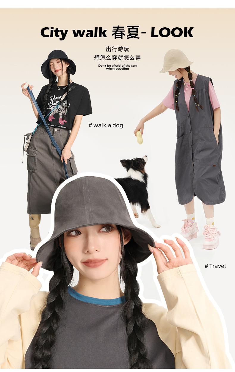 Sombrero de pescador de algodón para primavera y verano, sombrero para el sol al aire libre, sombrero de lavabo de cabeza grande elástico para mujer, sombrero para el sol simple japonés
