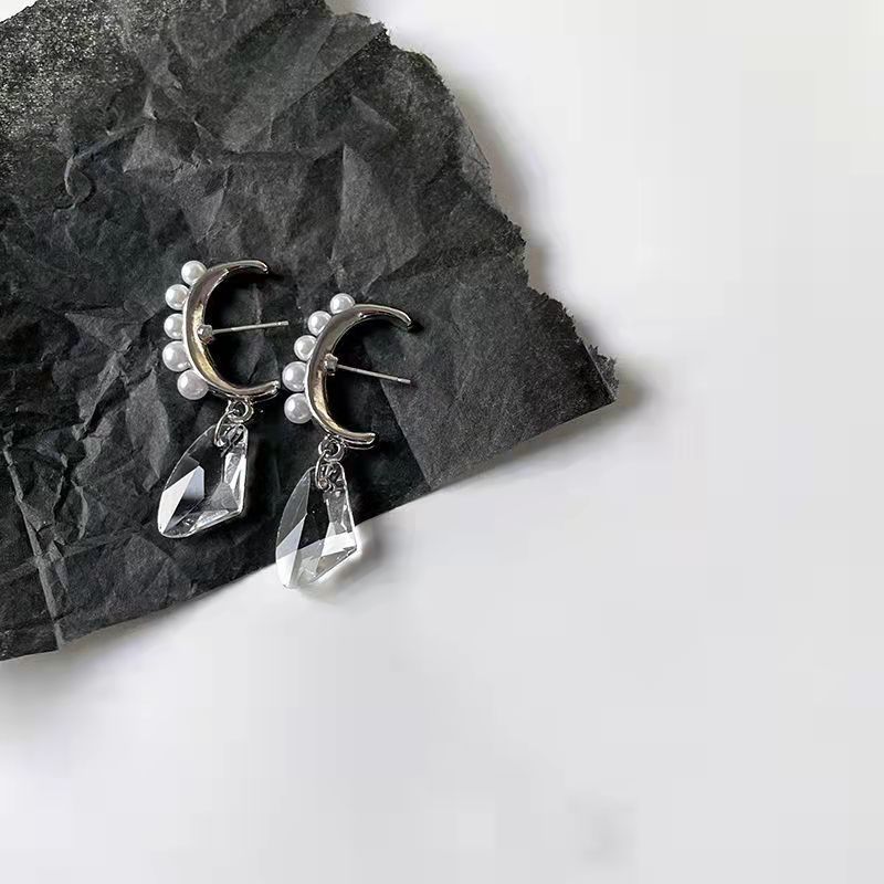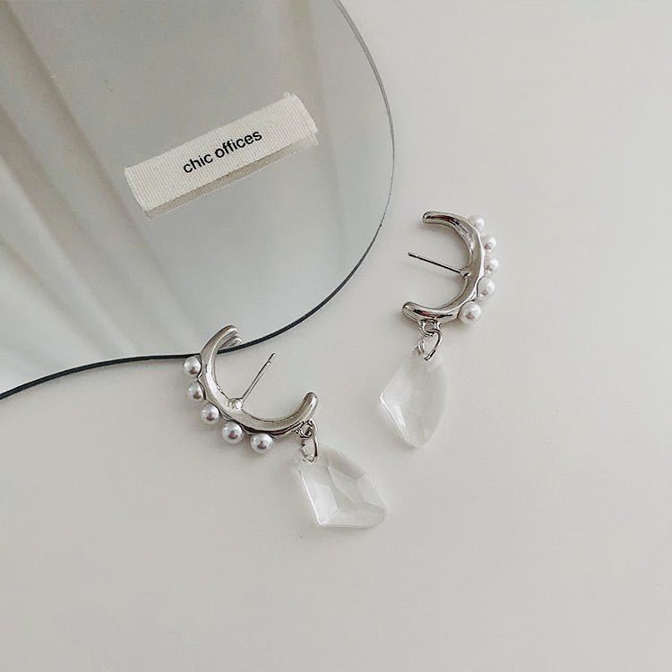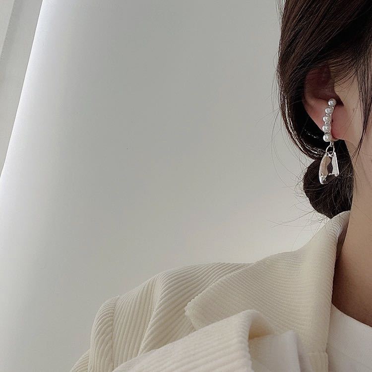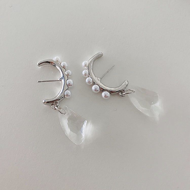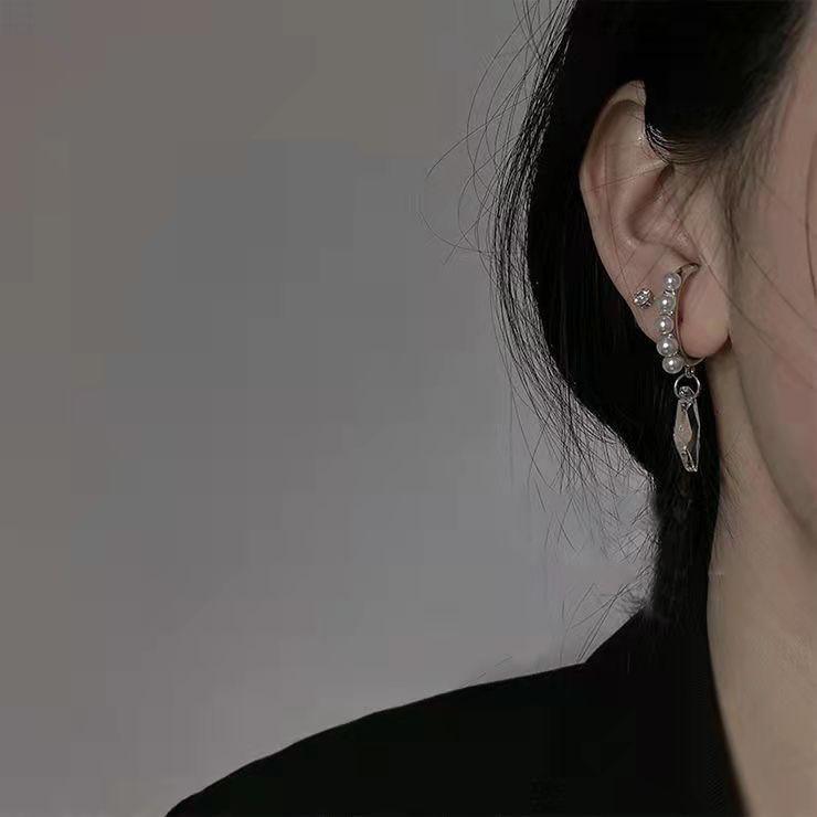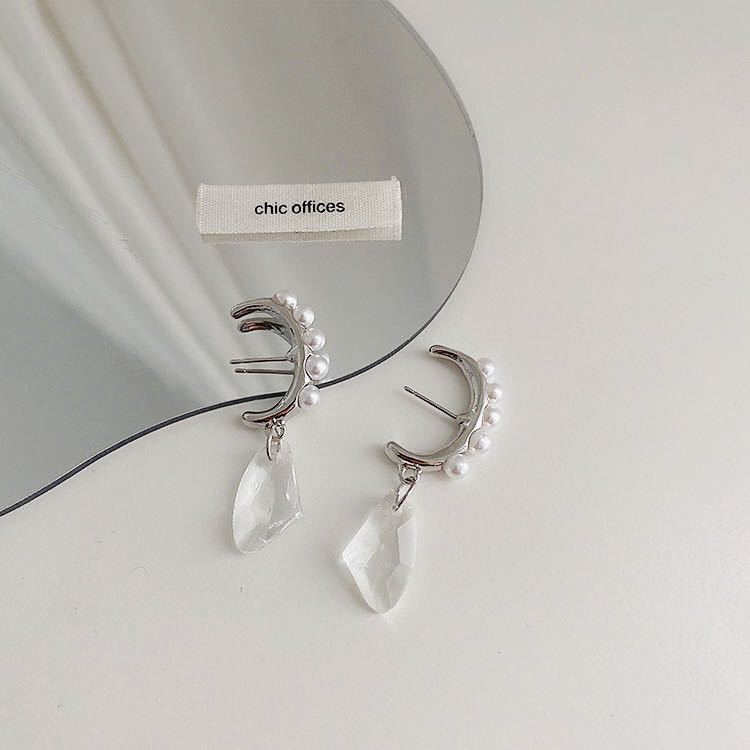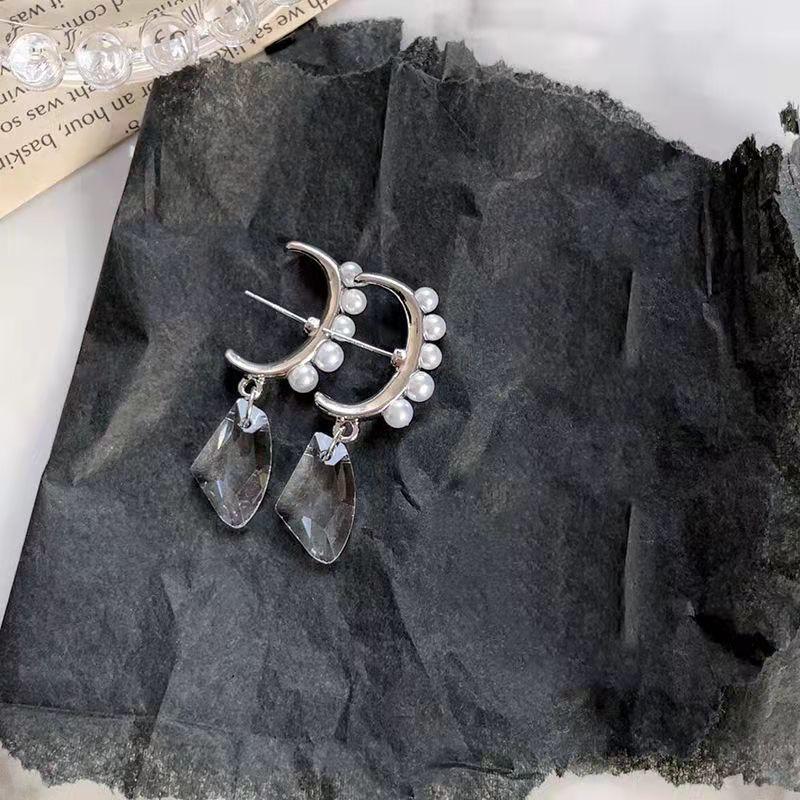 Pendientes colgantes de perlas de cristal transparente de estilo frío para mujer, estilo coreano, sencillos, combinables, elegantes y a la moda.