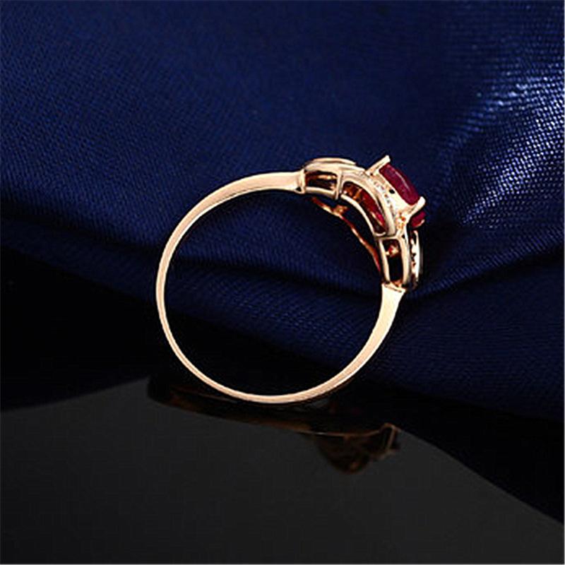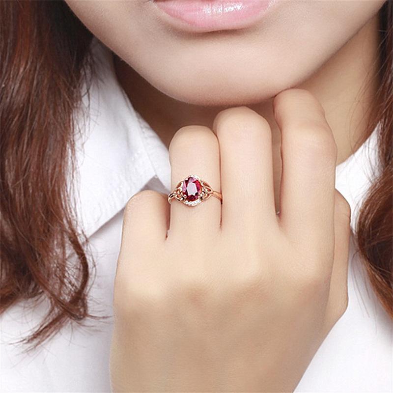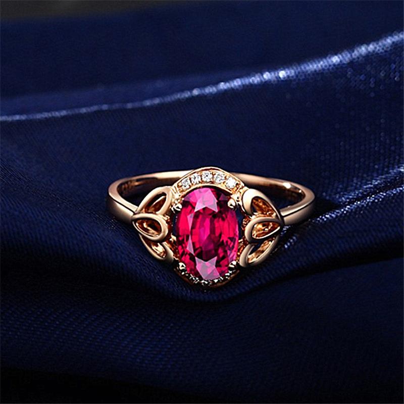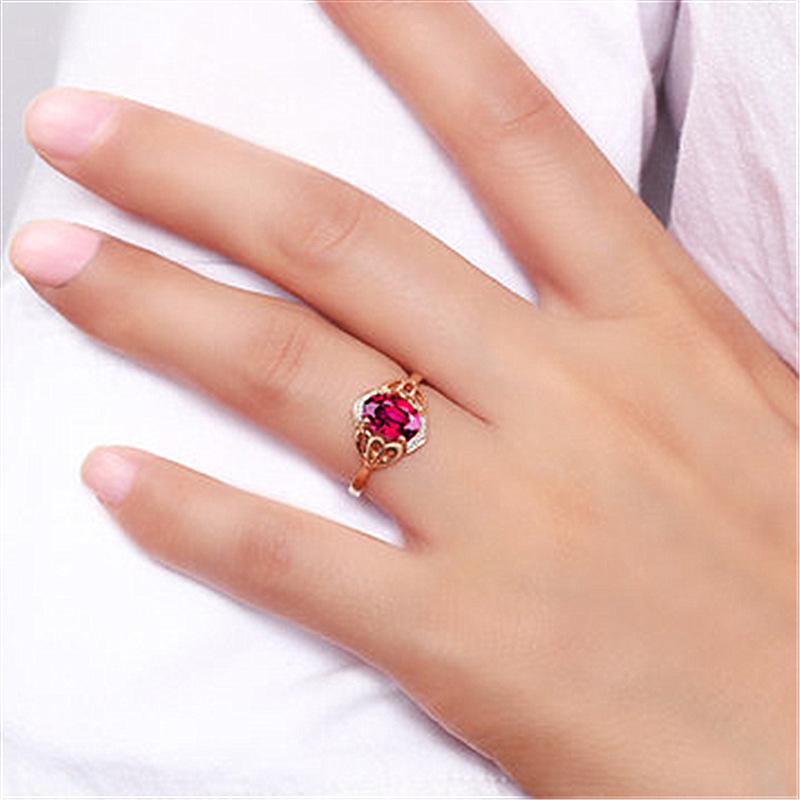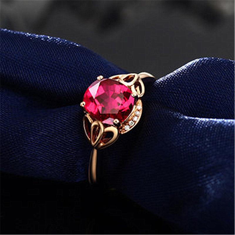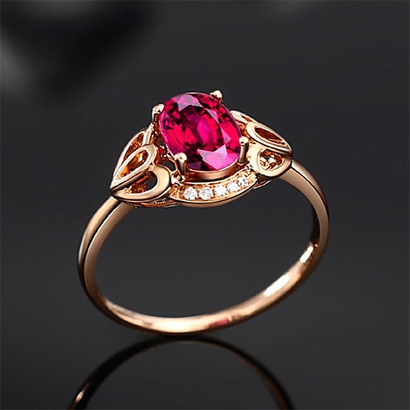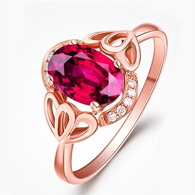 Anillo Corona de Rubí Estilo Coreano Anillo Brillante Color Fuego Chapado en Oro Rosa Pétalo Abierto Anillo de Diamante Rojo con Forma de Huevo