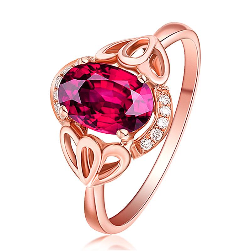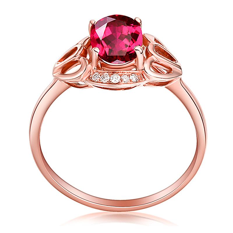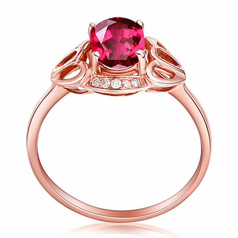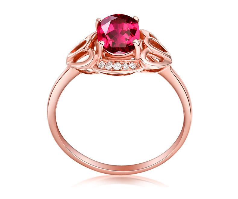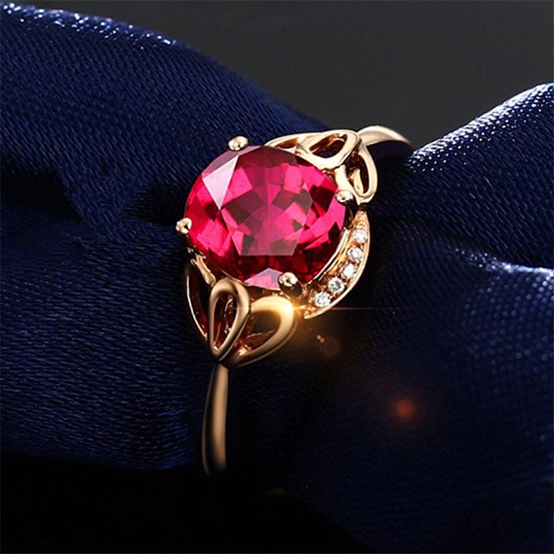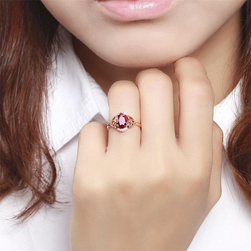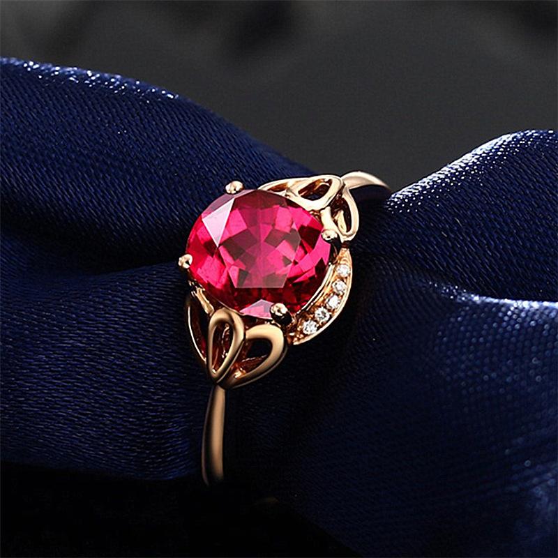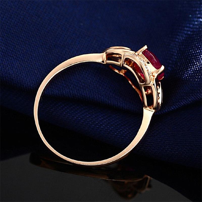 Anillo Corona de Rubí Estilo Coreano Anillo Brillante Color Fuego Chapado en Oro Rosa Pétalo Abierto Anillo de Diamante Rojo con Forma de Huevo