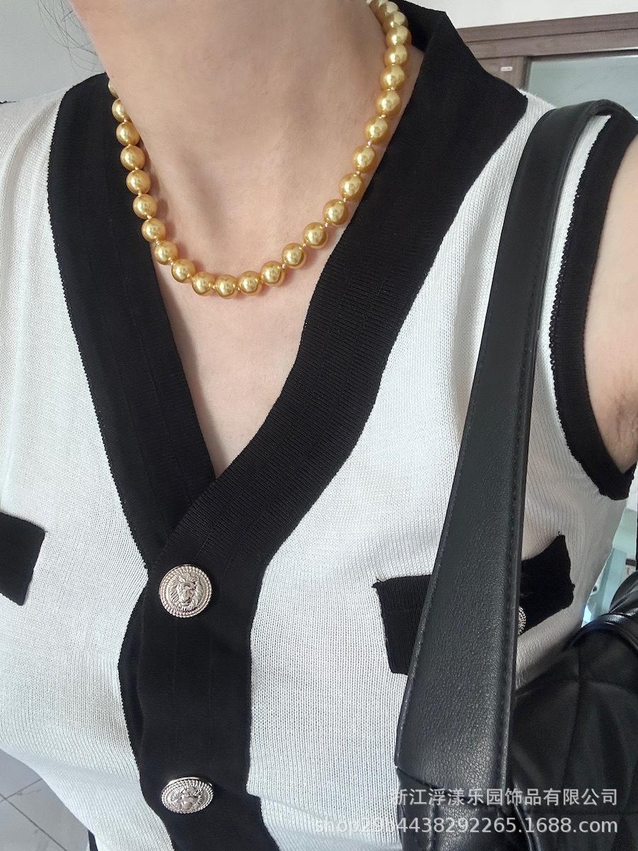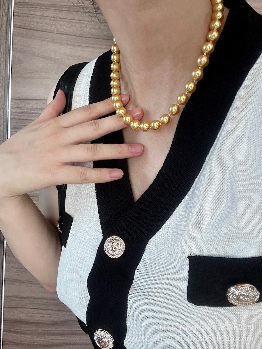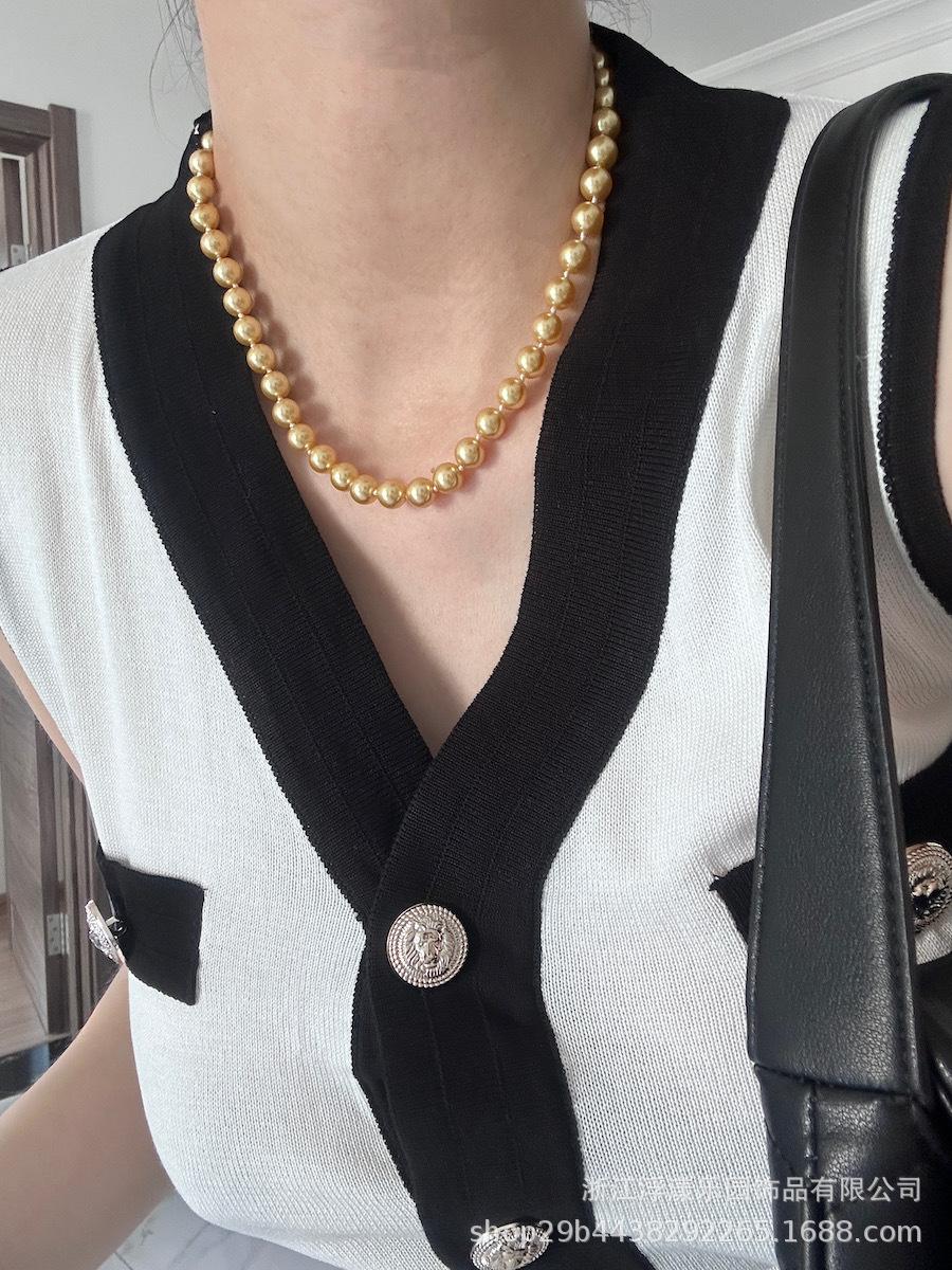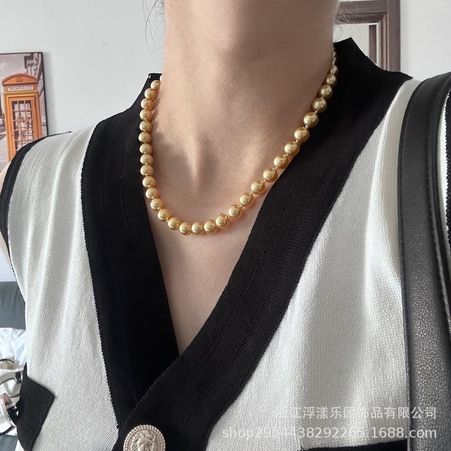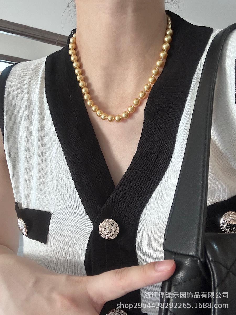 Collar de Perlas Brillantes Doradas del Mismo Estilo de Ni Ni Collar Francés para Mujer Diseño Nicho Lujo Accesible Cadena Clavicular de Alta Gama
