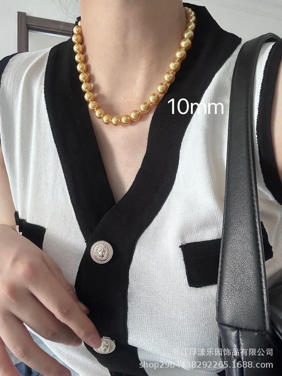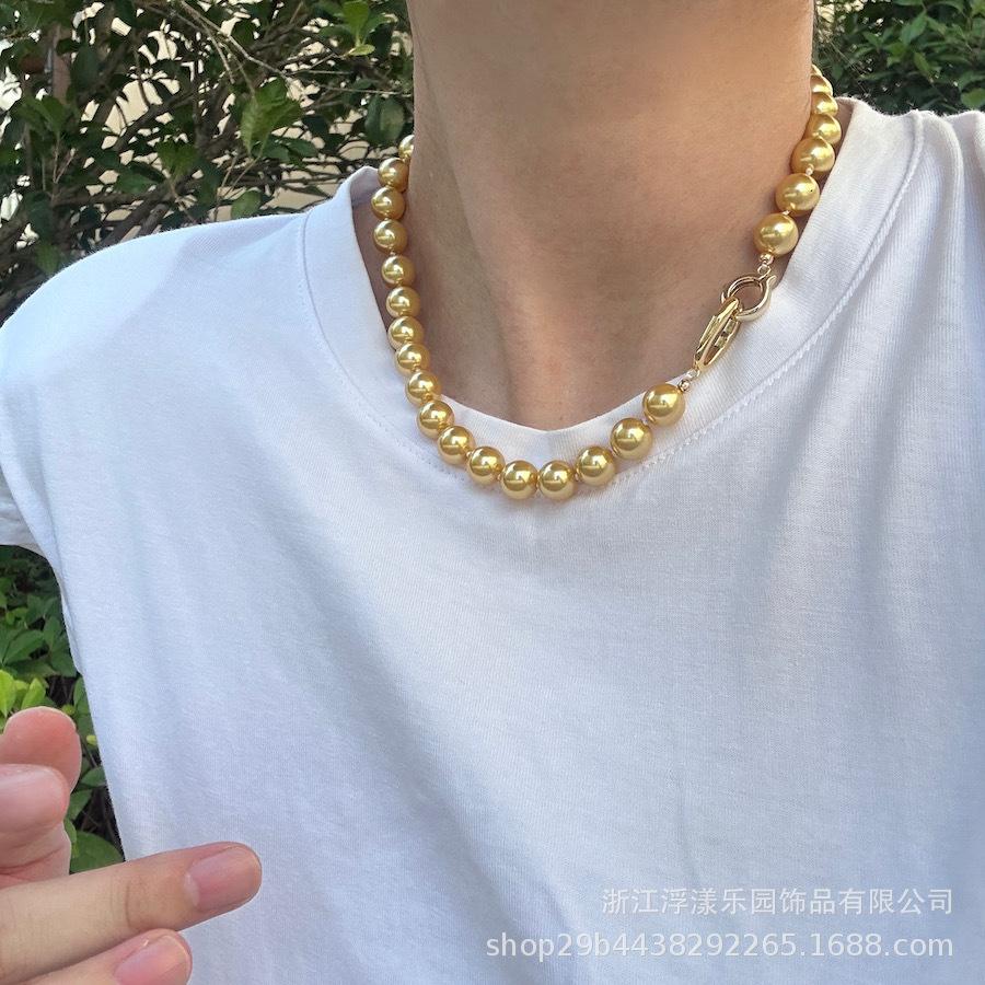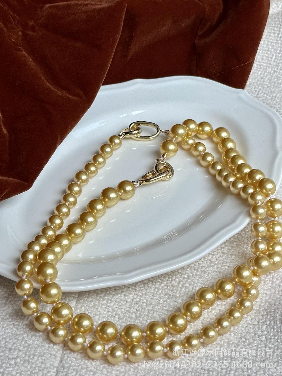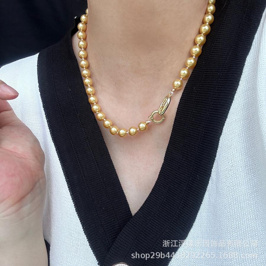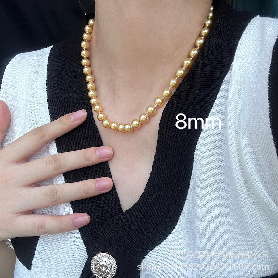 Collar de Perlas Brillantes Doradas del Mismo Estilo de Ni Ni Collar Francés para Mujer Diseño Nicho Lujo Accesible Cadena Clavicular de Alta Gama