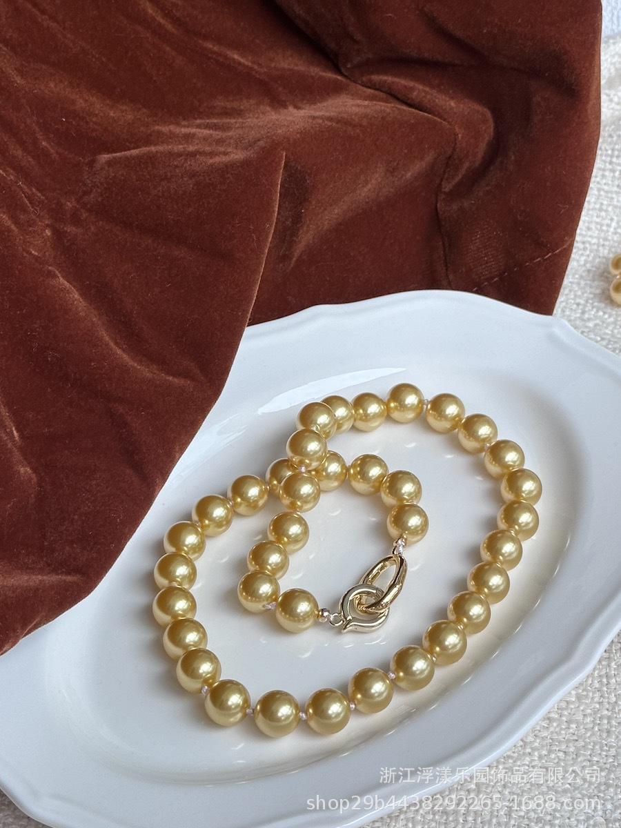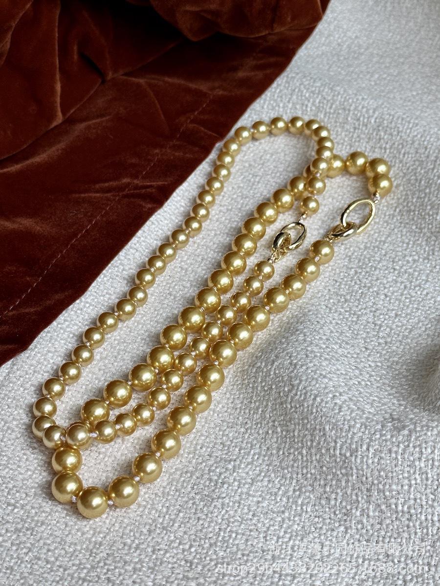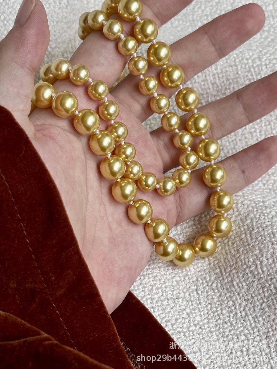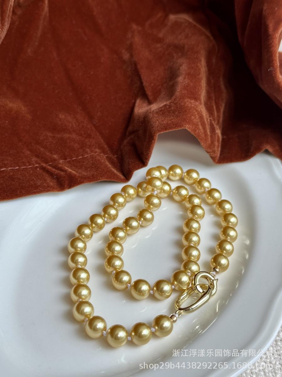 Collar de Perlas Brillantes Doradas del Mismo Estilo de Ni Ni Collar Francés para Mujer Diseño Nicho Lujo Accesible Cadena Clavicular de Alta Gama