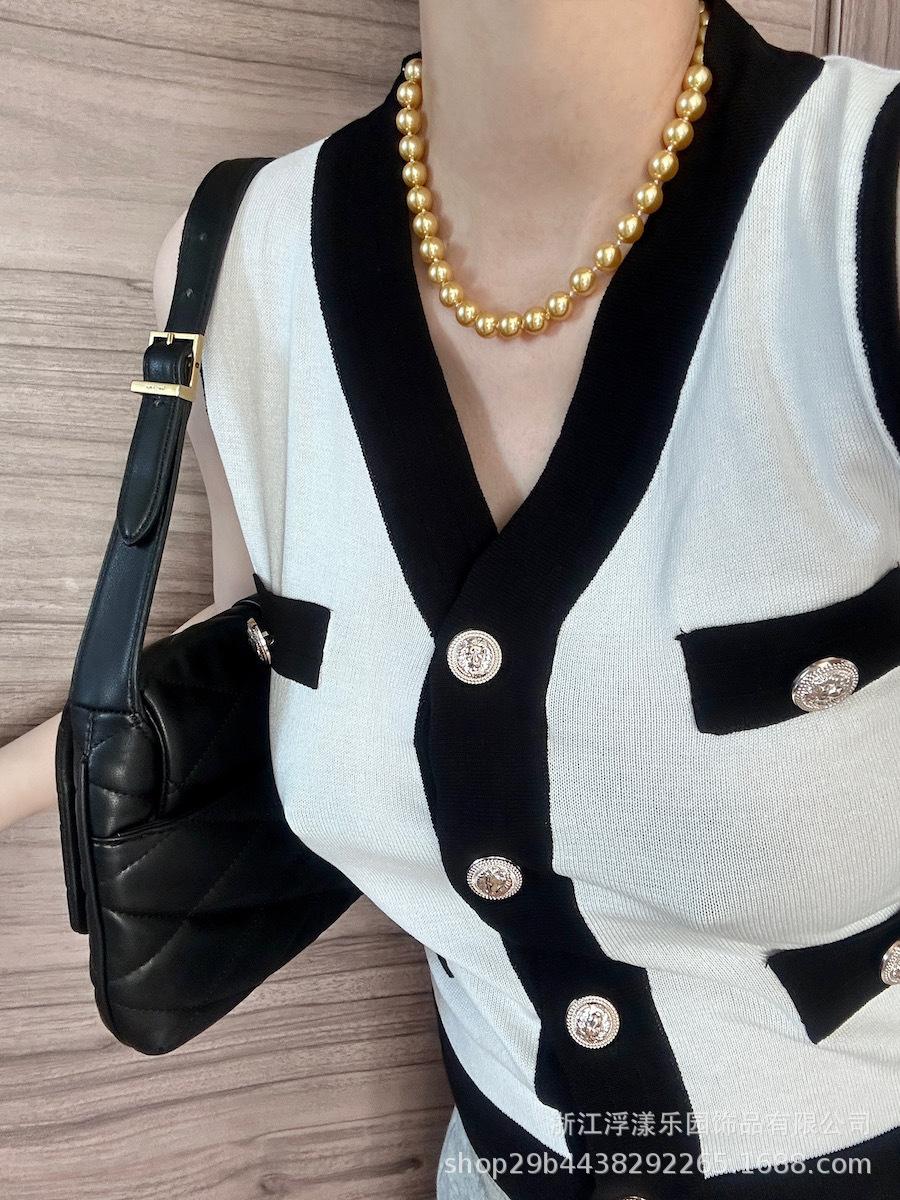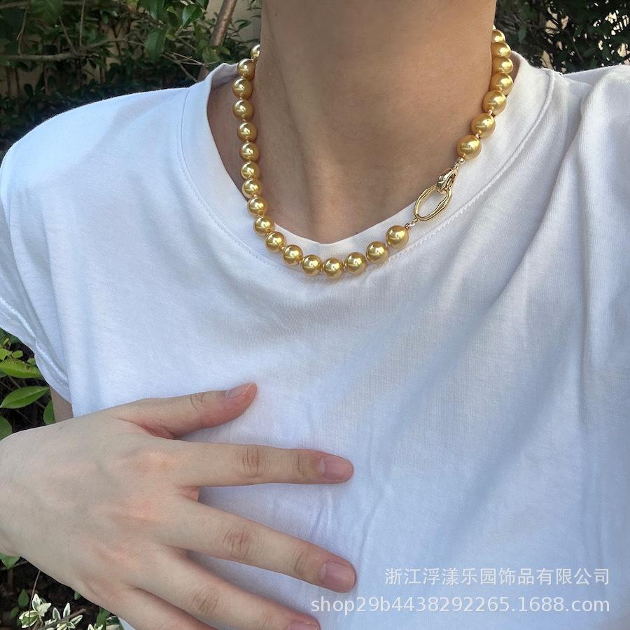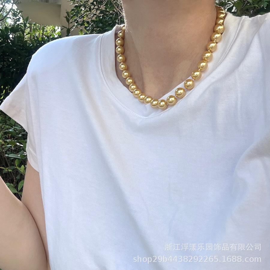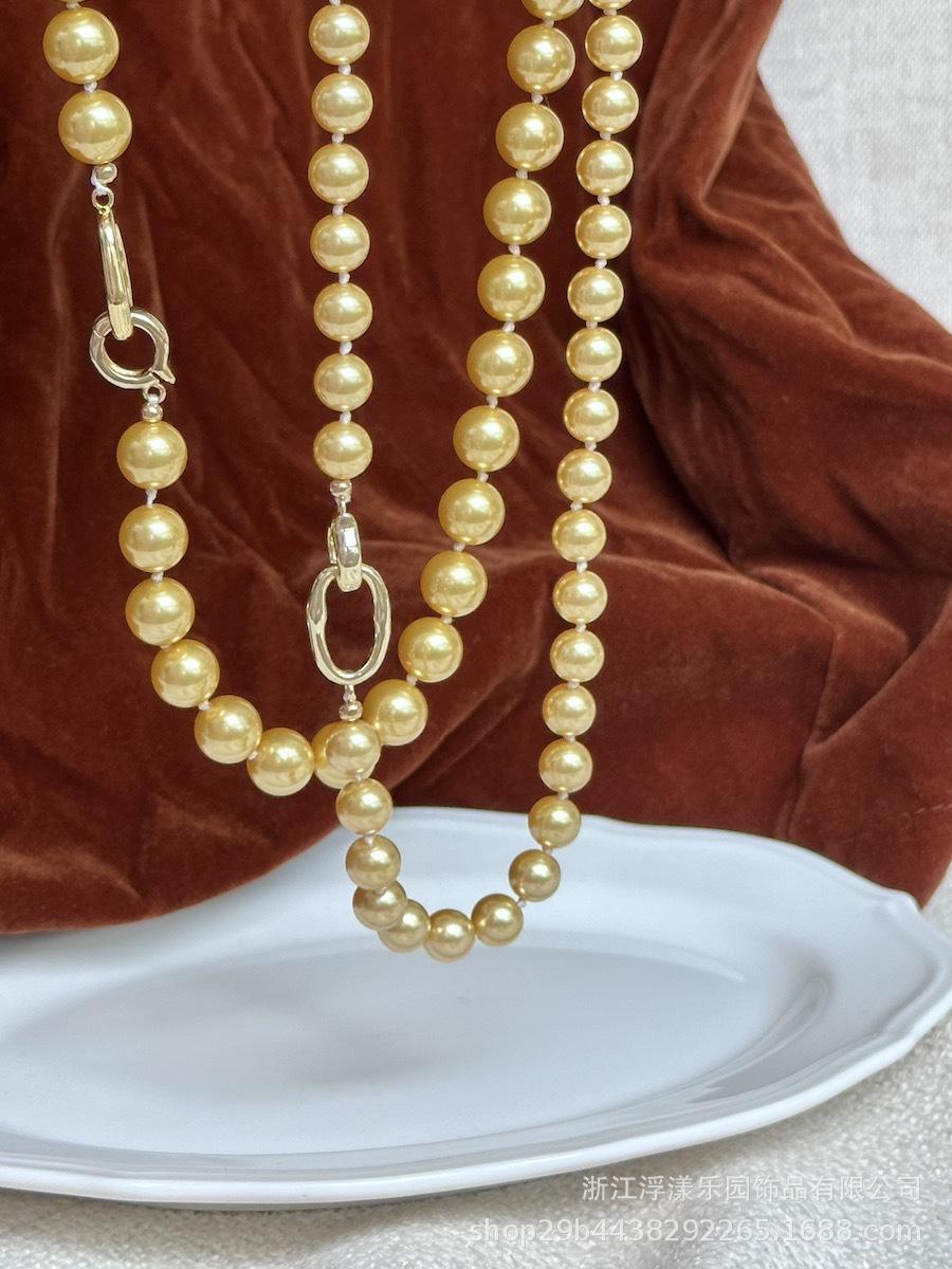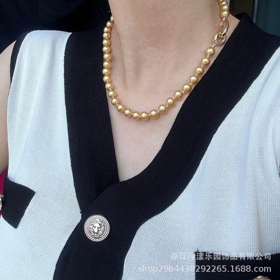 Collar de Perlas Brillantes Doradas del Mismo Estilo de Ni Ni Collar Francés para Mujer Diseño Nicho Lujo Accesible Cadena Clavicular de Alta Gama