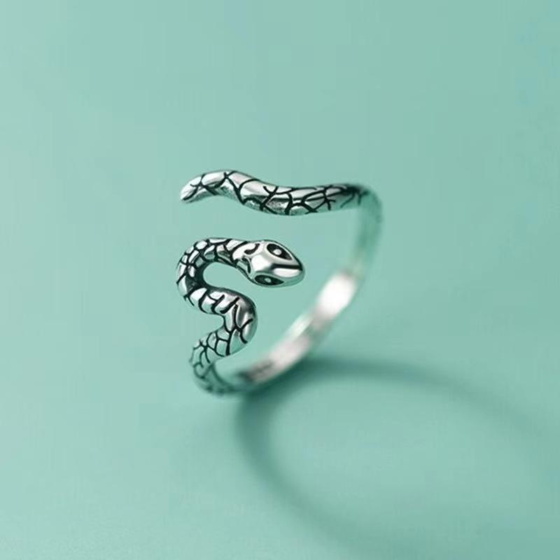Suministro transfronterizo de anillo de serpiente abierta de aleación de plata antigua retro europea y americana, anillo de serpiente punk exagerado, multiestilo opcional