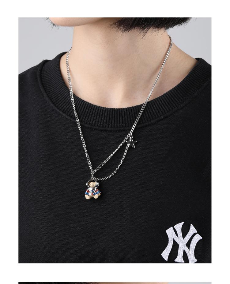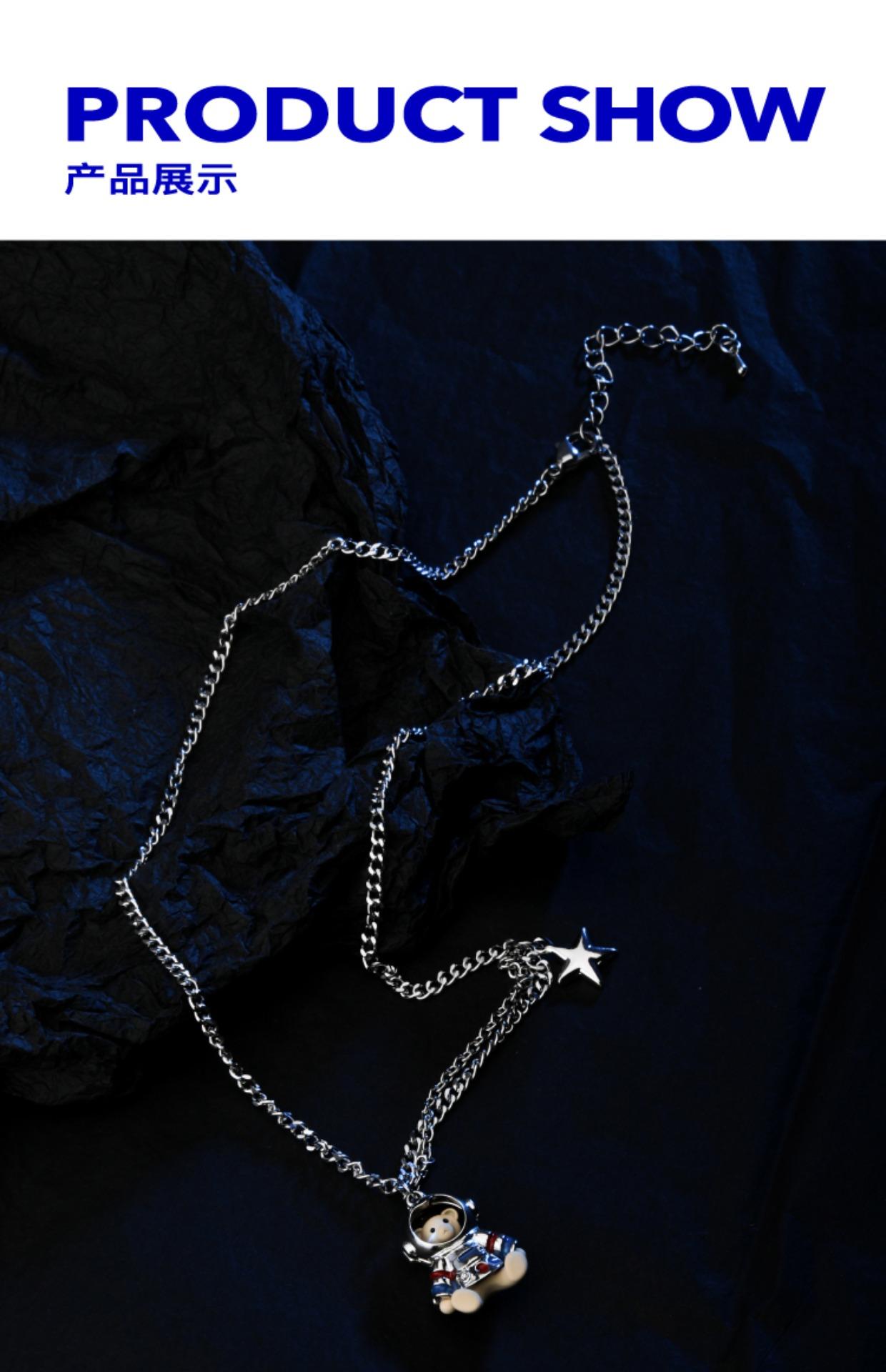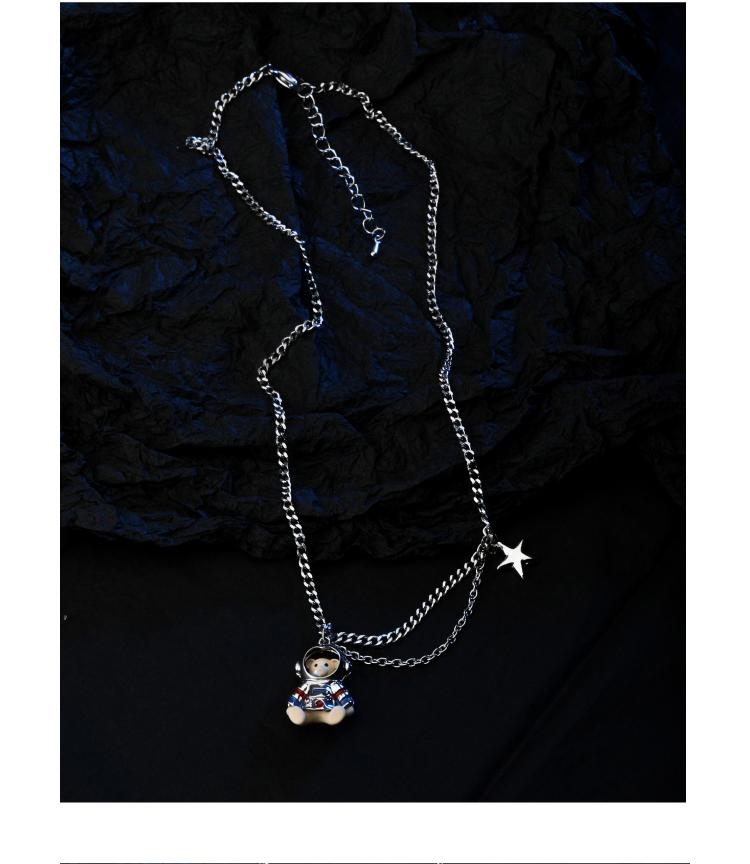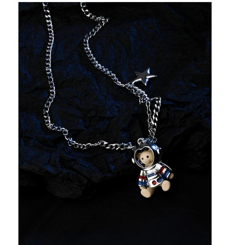 Nuevo collar de estrella de astronauta de oso de dibujos animados, accesorios creativos de nicho personalizados, cadena de sudadera de moda