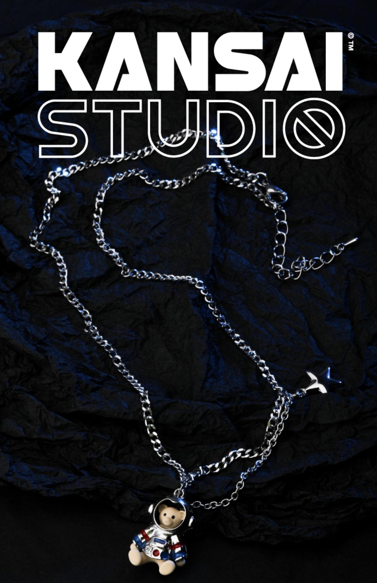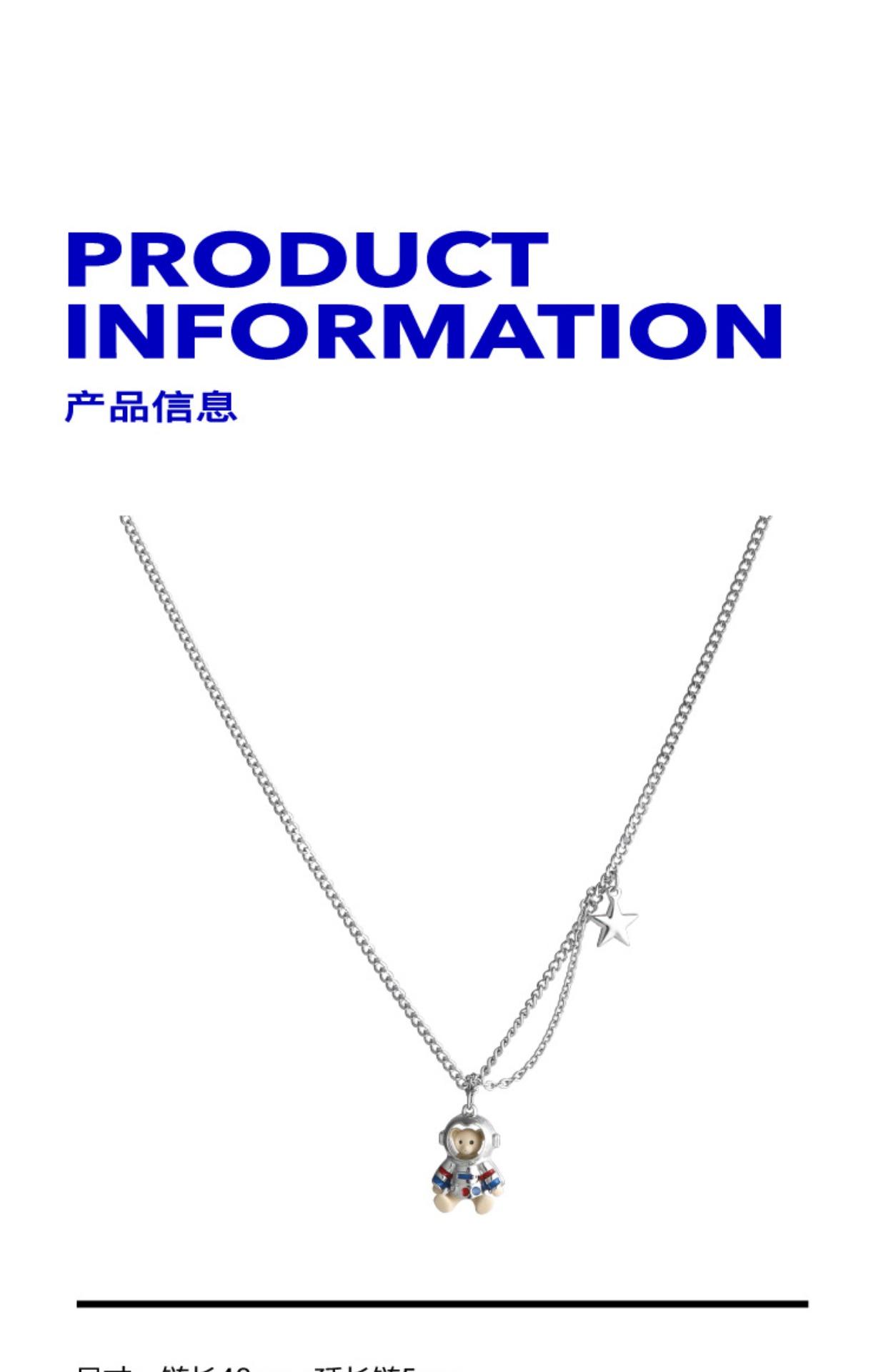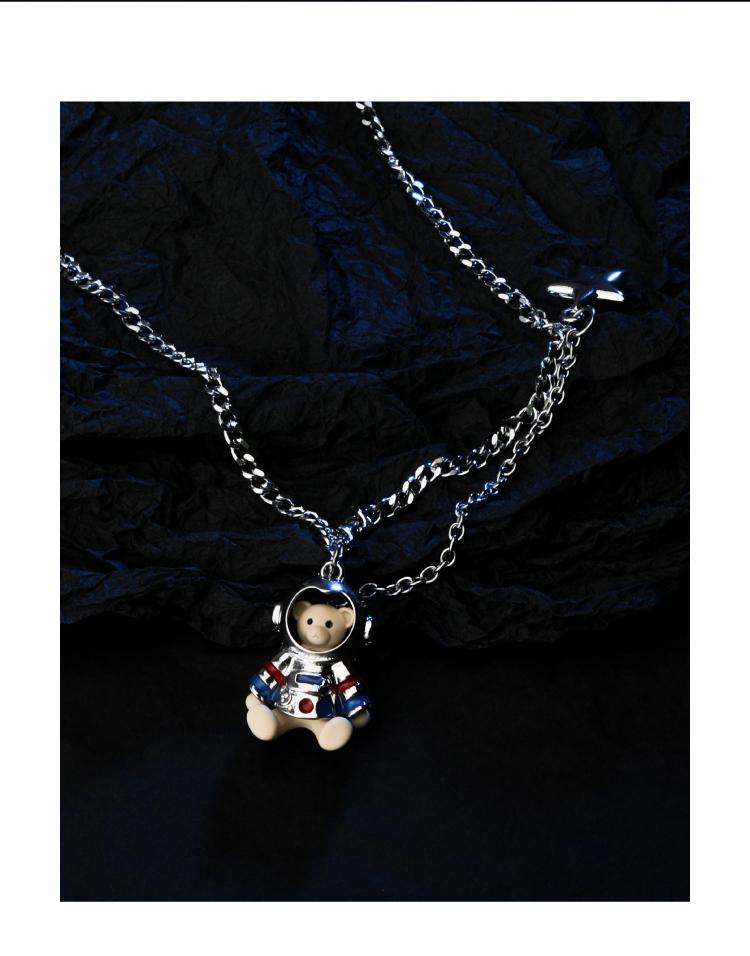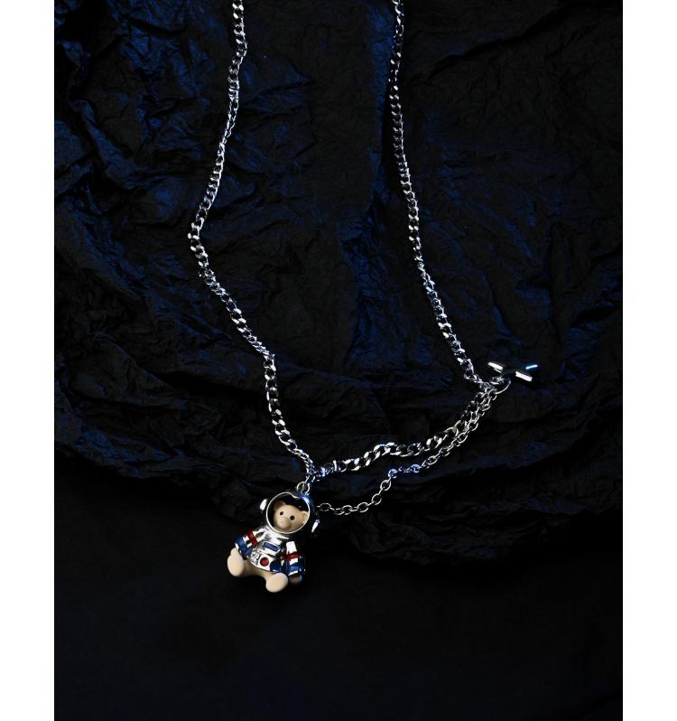 Nuevo collar de estrella de astronauta de oso de dibujos animados, accesorios creativos de nicho personalizados, cadena de sudadera de moda