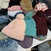 Gorro de Lana con Pompon de Colores para Mujer para Otoño e Invierno, Versátil Gorro de Punto Cálido, Estilo K, Lindo y a la Moda Gorro Domo con Protección para las Orejas