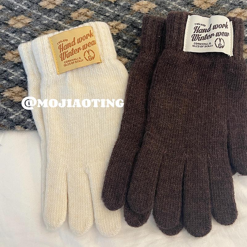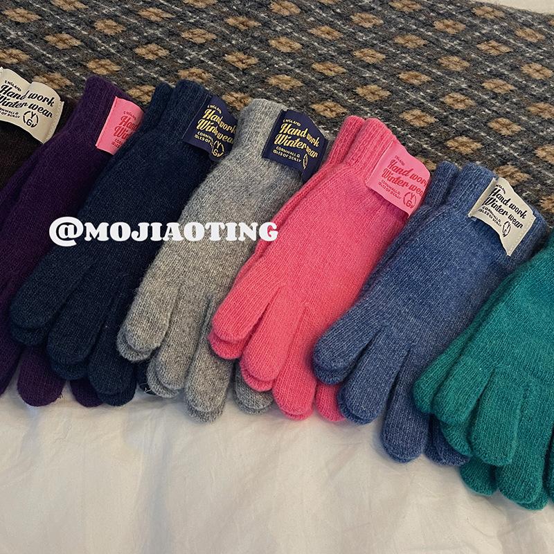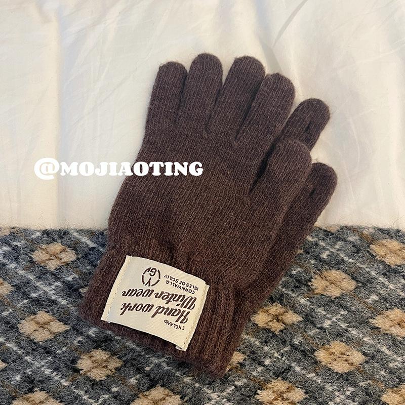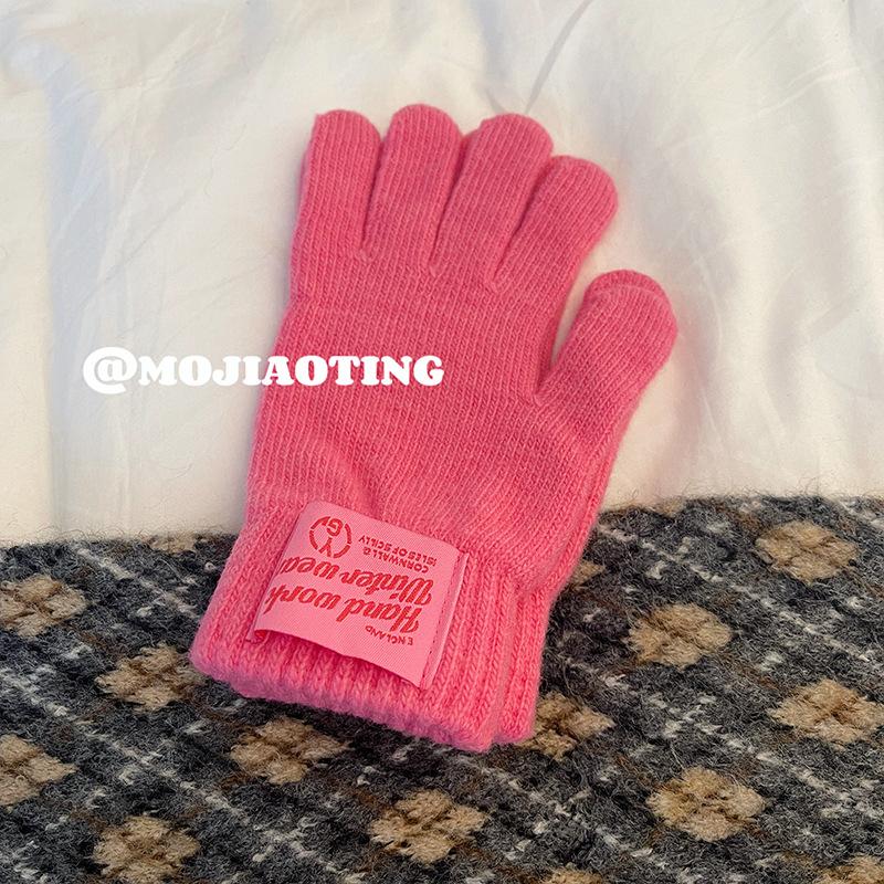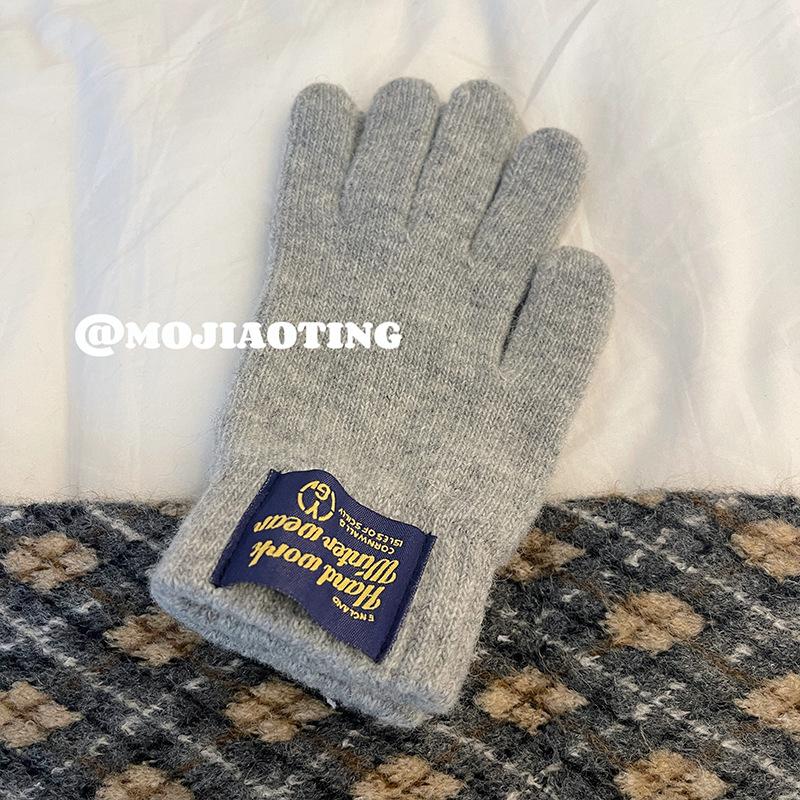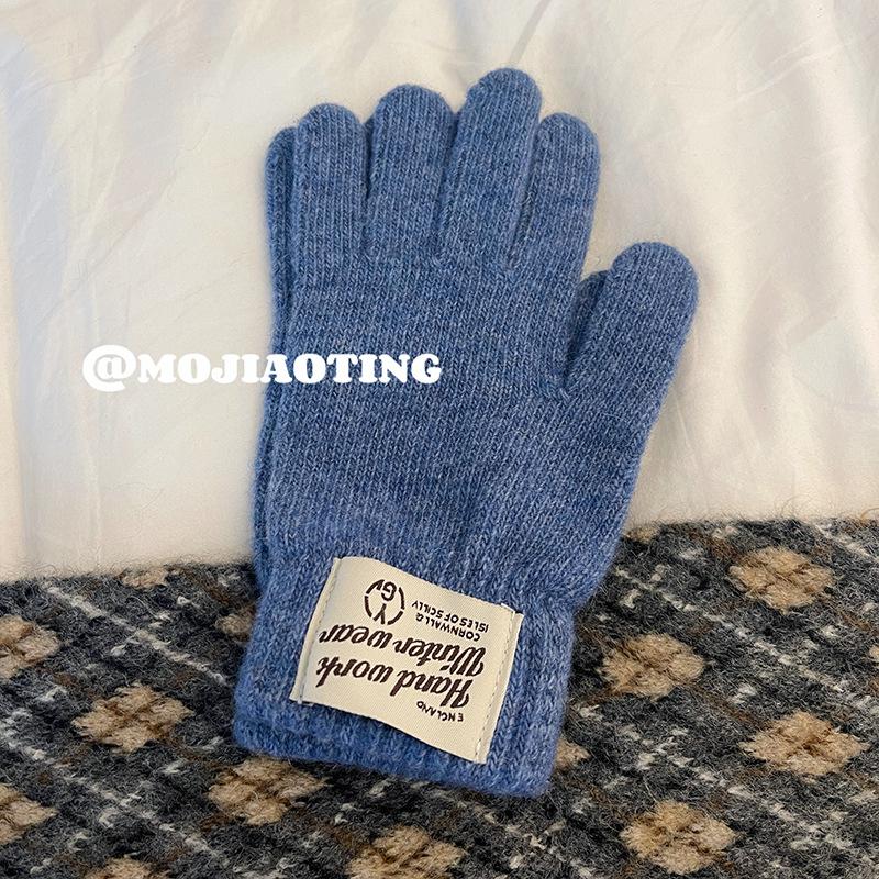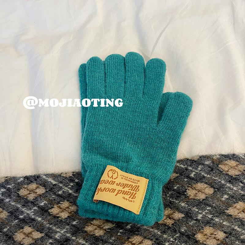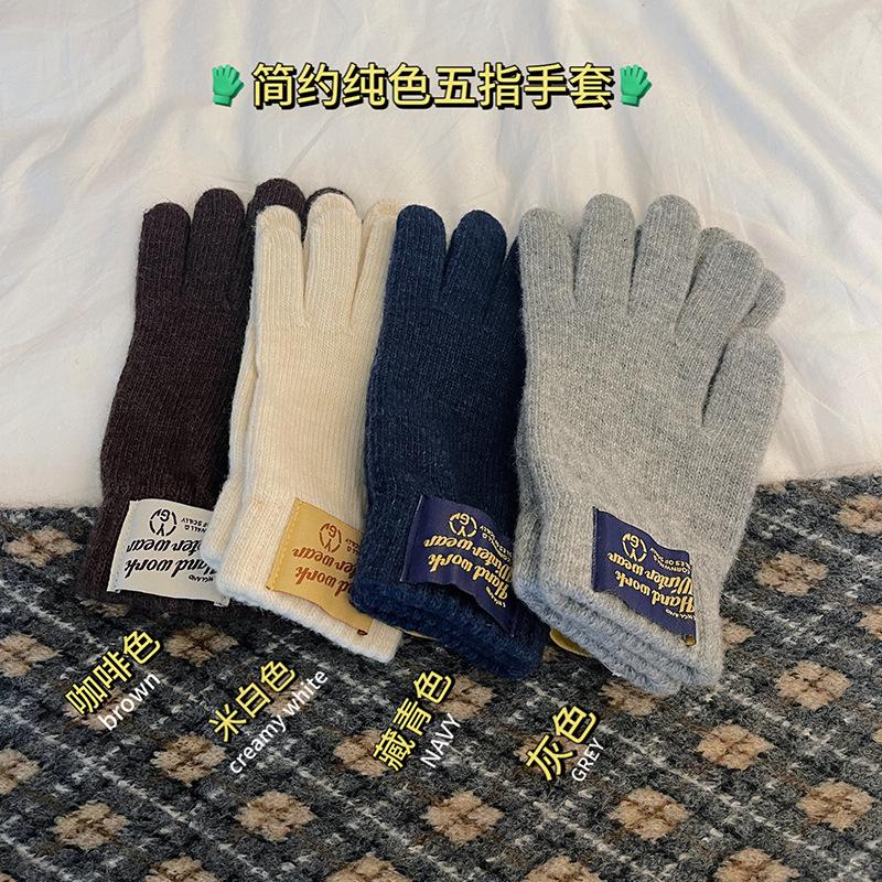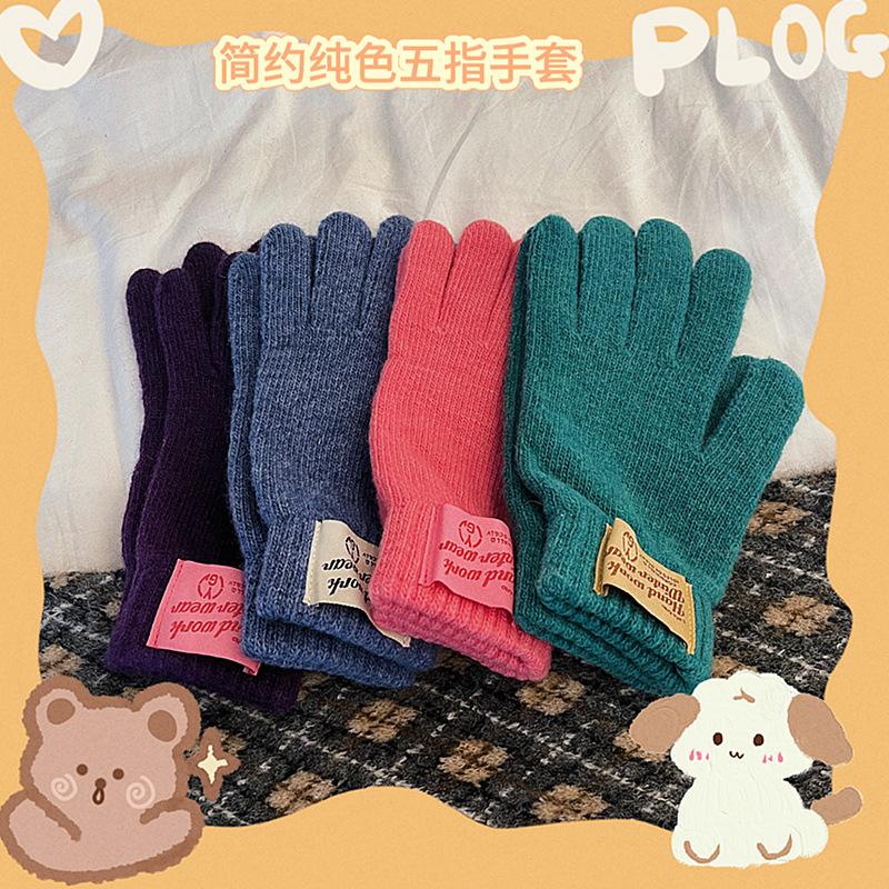 Guantes de lana de color sólido para mujer, otoño e invierno, cálidos, para estudiantes, estilo coreano, para montar en coche eléctrico, tejidos con cinco dedos, a prueba de frío, con pantalla táctil