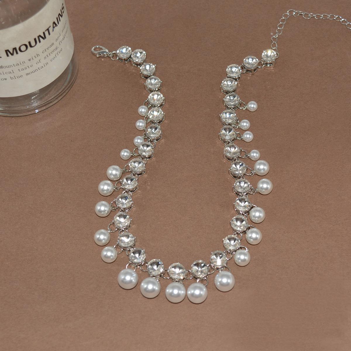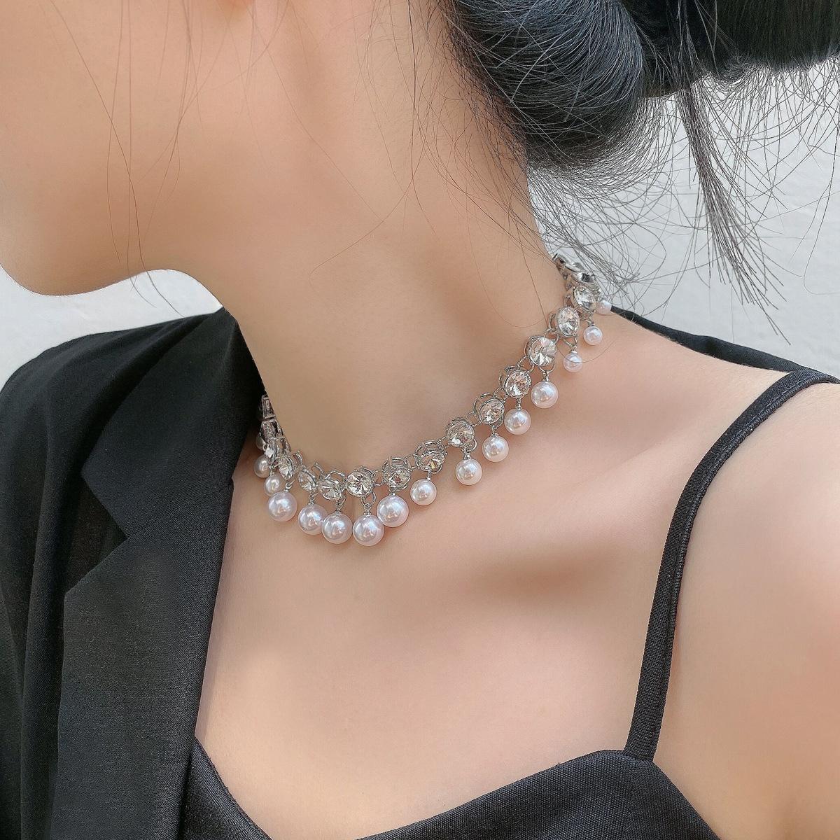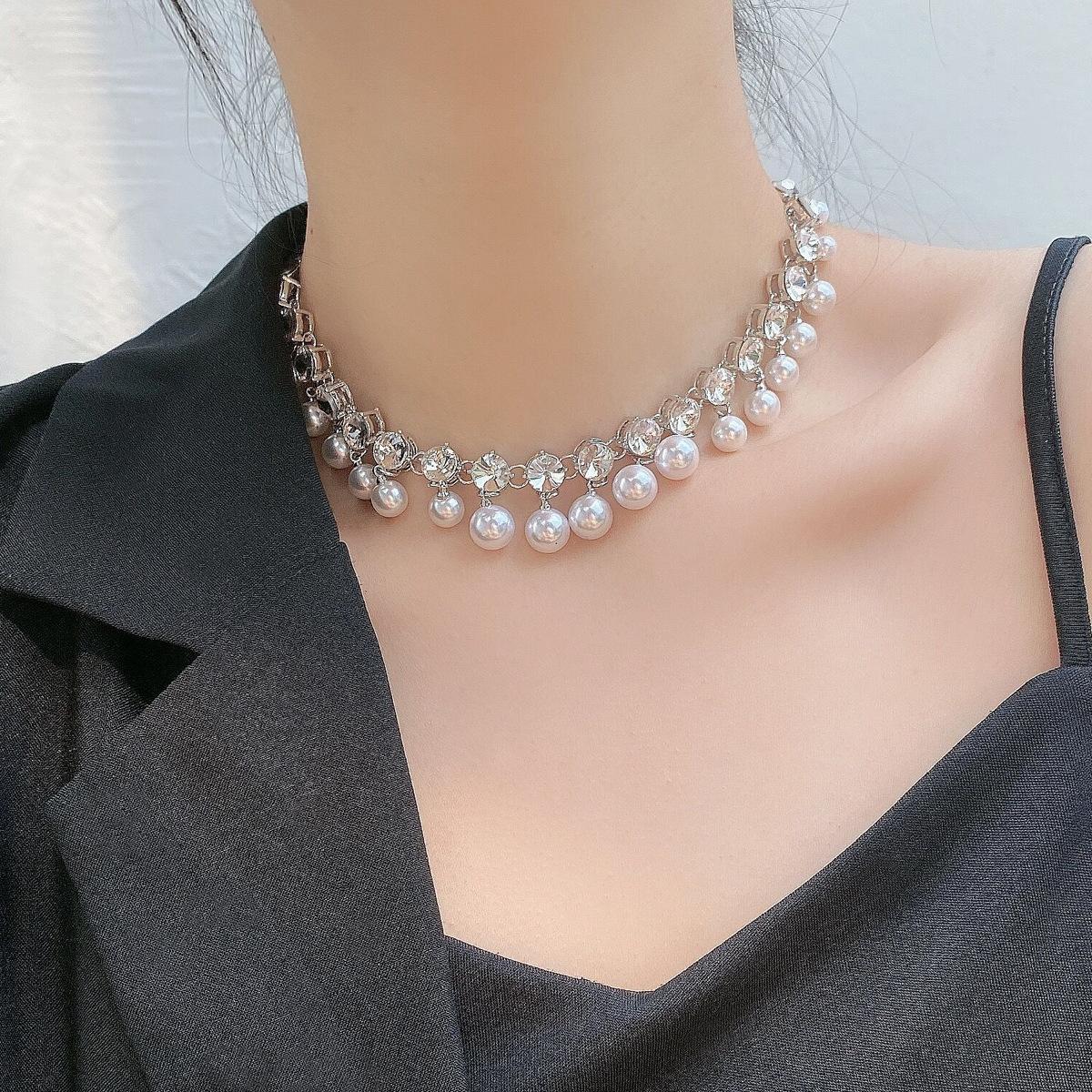 Collar de clavícula nupcial de cristal con borla de perla 2023, collar de diamantes de nicho de lujo ligero para mujer, moda de alta calidad