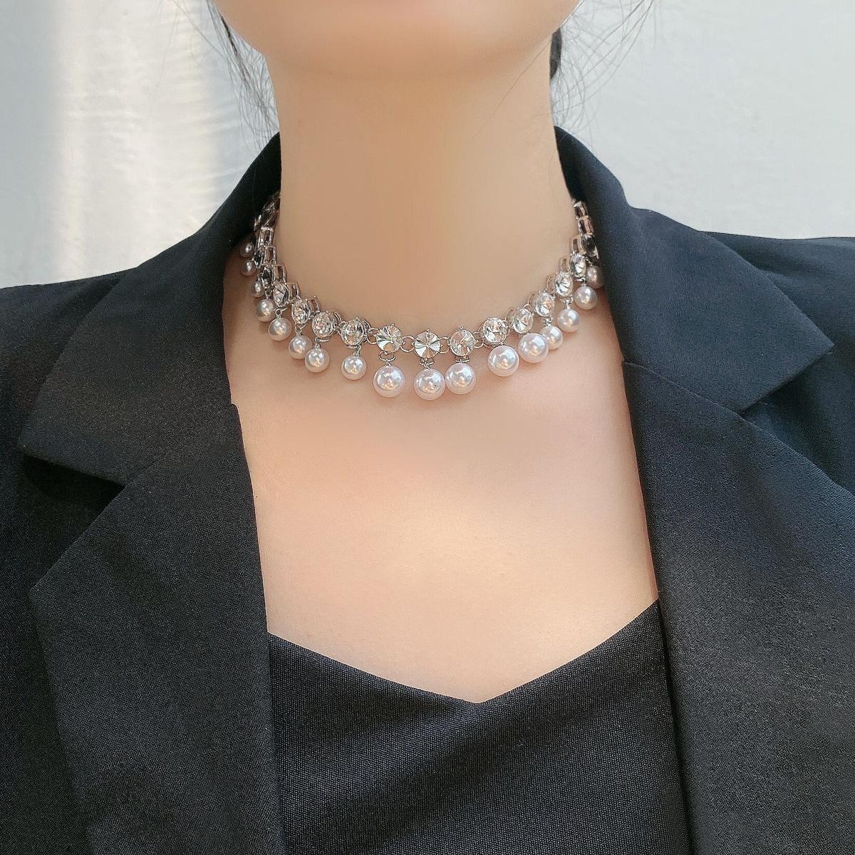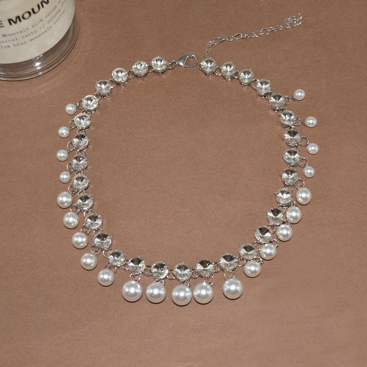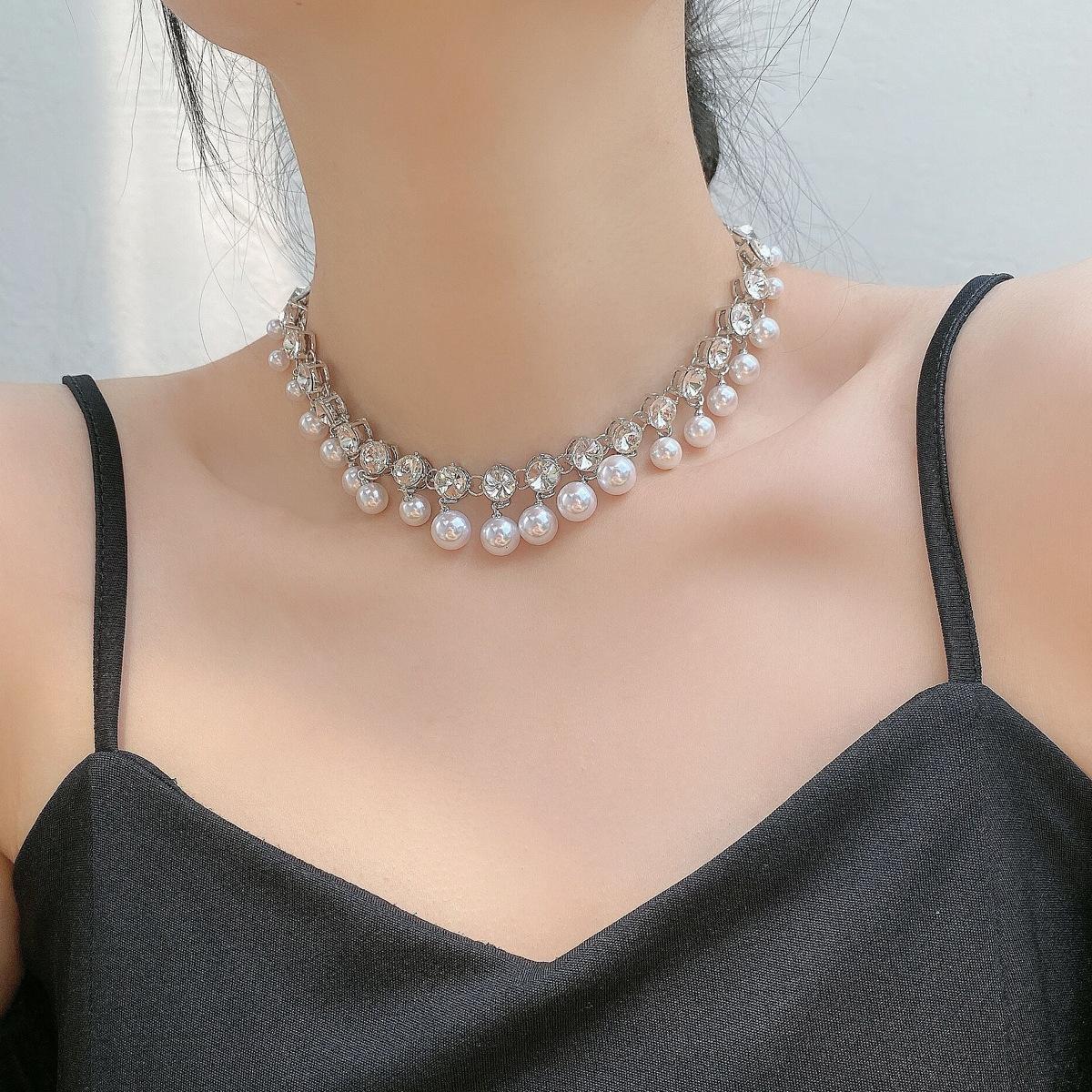 Collar de clavícula nupcial de cristal con borla de perla 2023, collar de diamantes de nicho de lujo ligero para mujer, moda de alta calidad