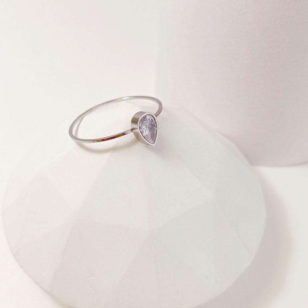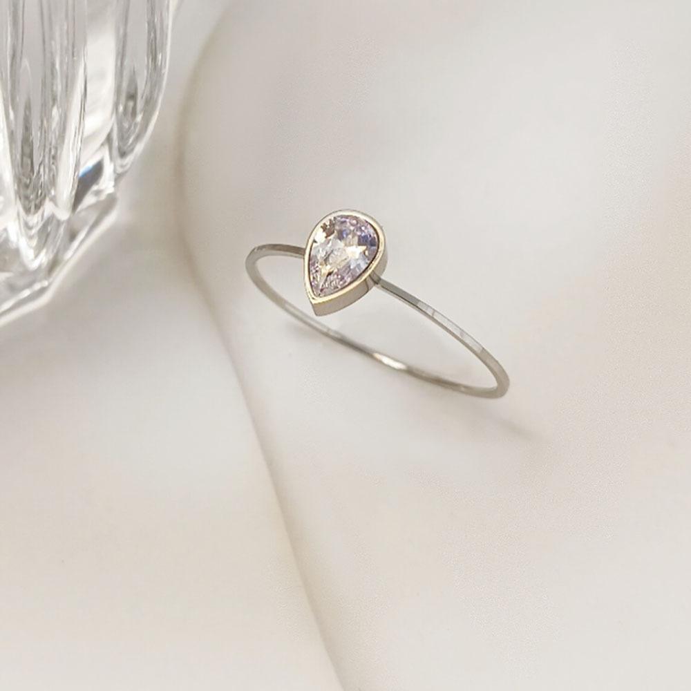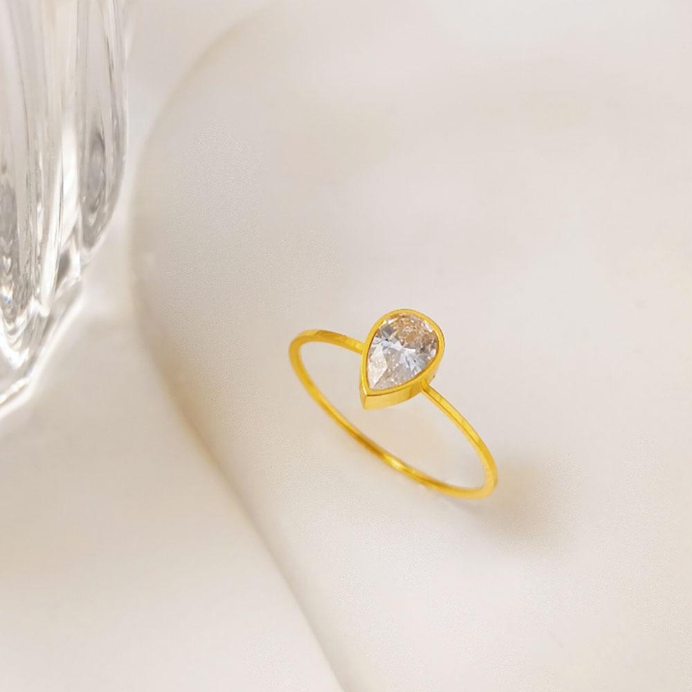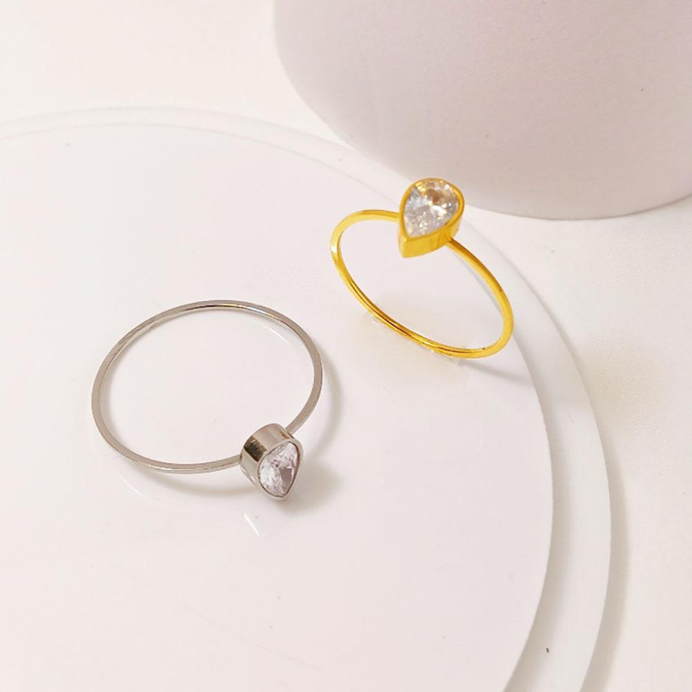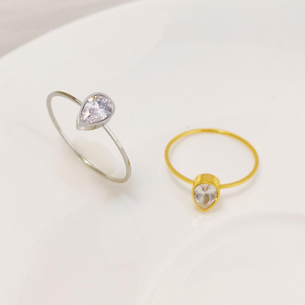 Water Drop Zircon Ring Gold B400, Water Drop Zircon Ring Steel Color B400