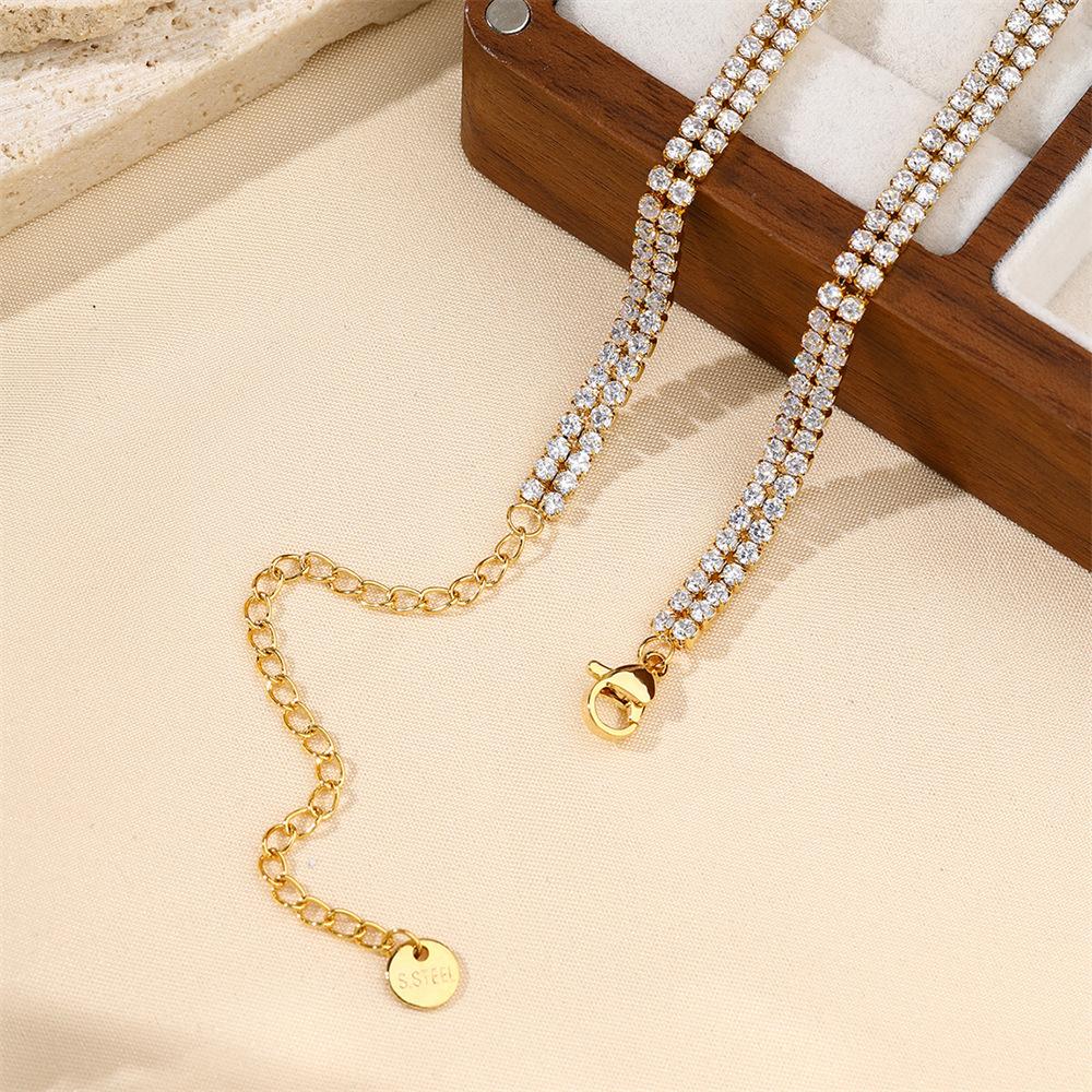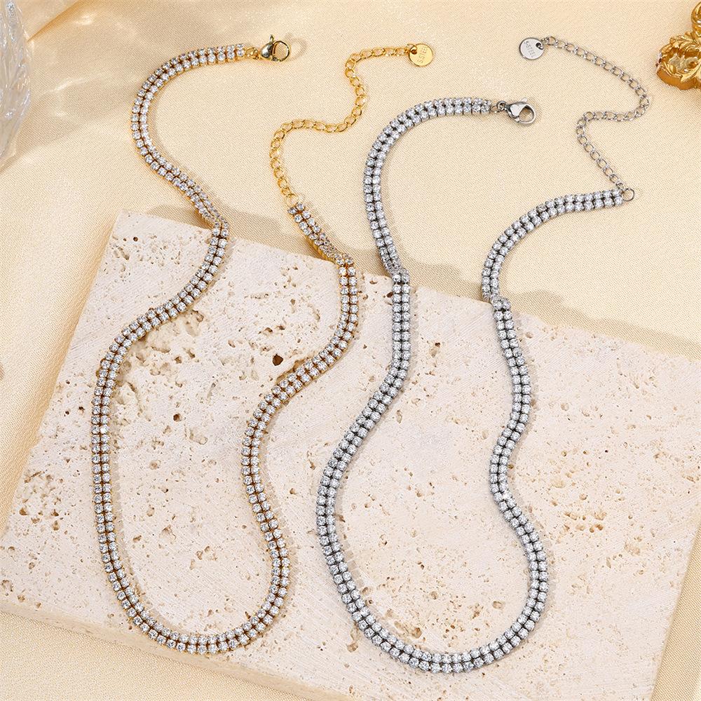 Cadena de clavícula de lujo con temperamento a juego, joyería de acero inoxidable con incrustaciones de oro de 18 quilates, collar de circonita, joyería para mujer, moda europea y americana