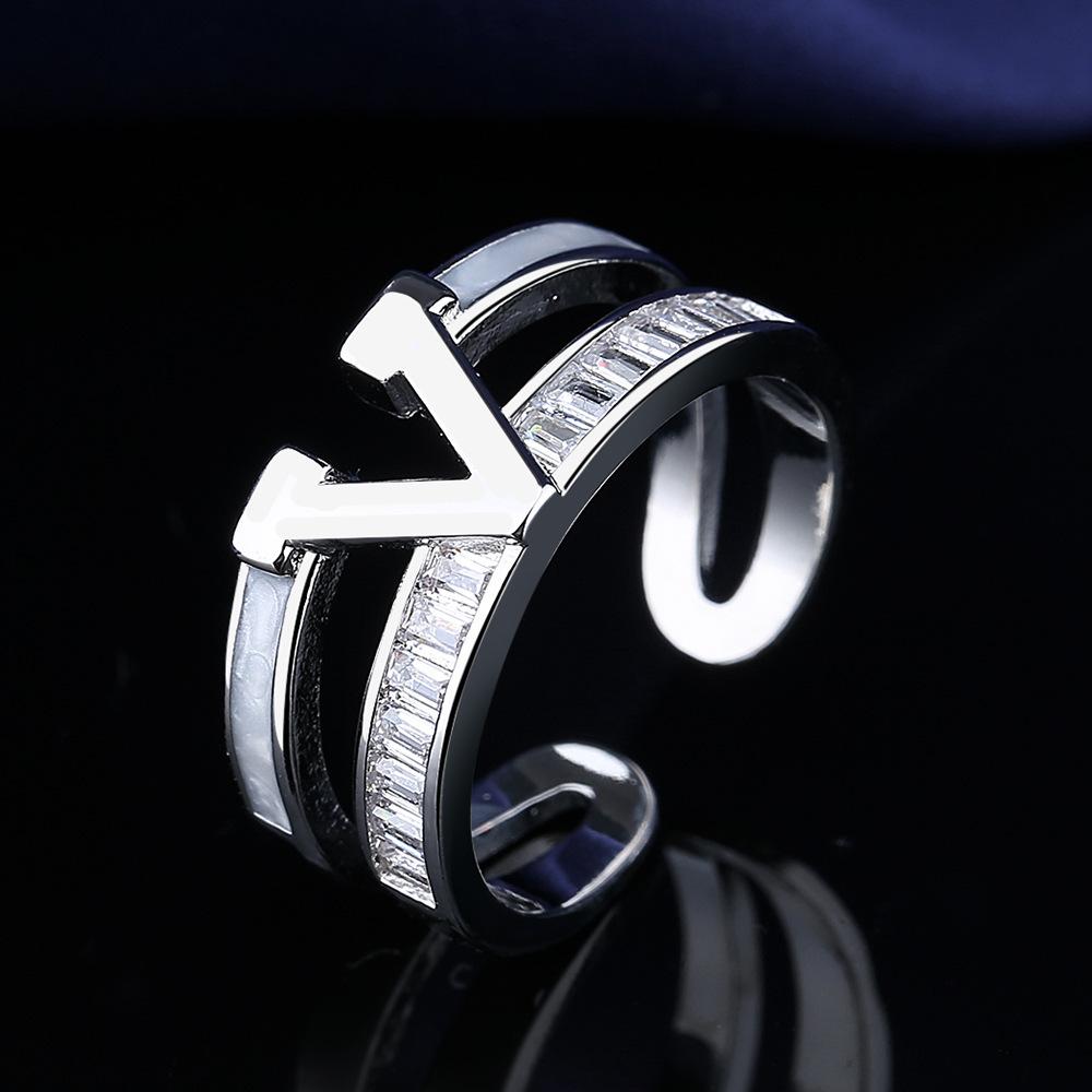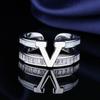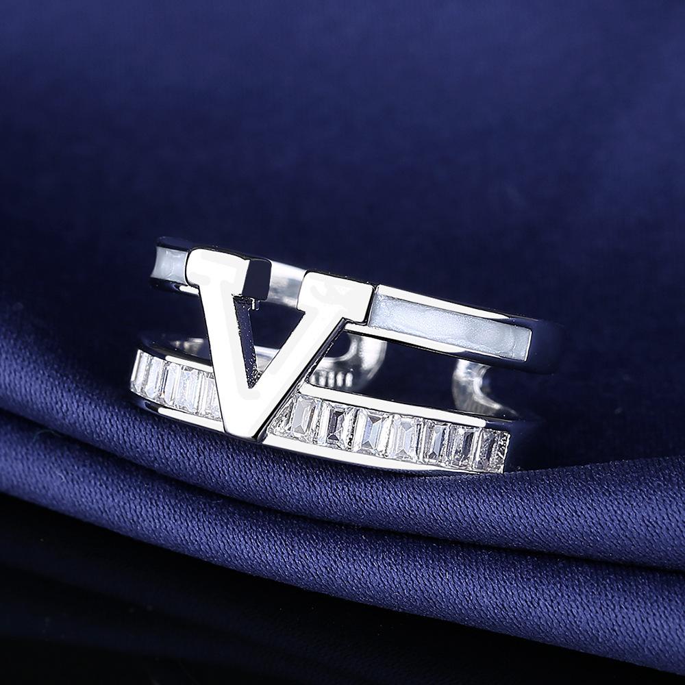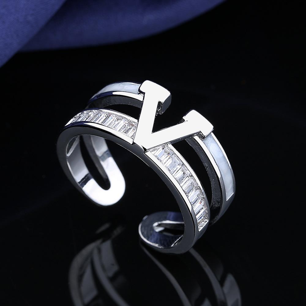 Anillo letra V de personalidad de moda europea y americana, anillo de circonita incrustada, temperamento de moda de onda, joyería para mujer, generación de fábrica