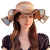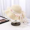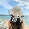 Nuevo sombrero de sol con lazo de flor para mujer, vacaciones junto al mar, dulce sombrero de sol de encaje, verano, ala grande, sombrero de paja al por mayor