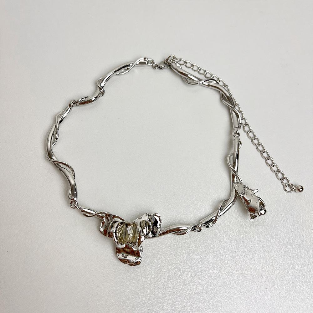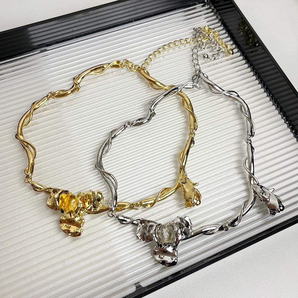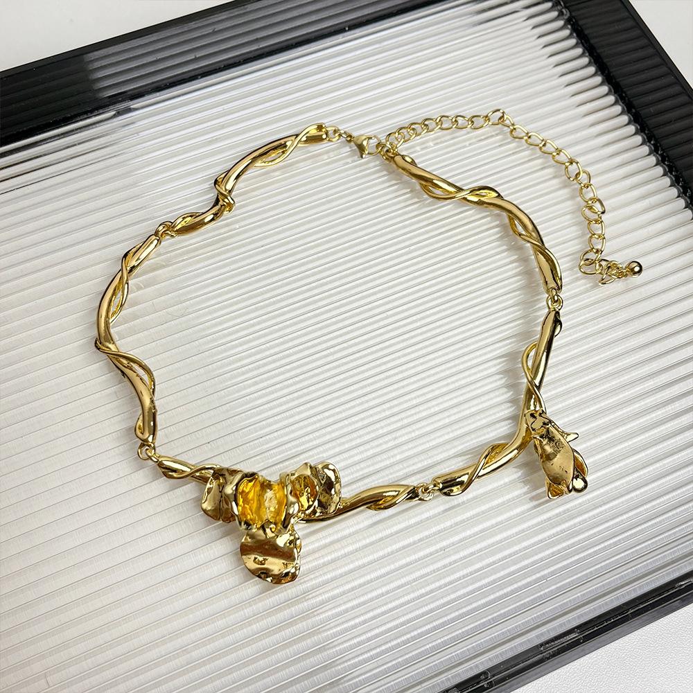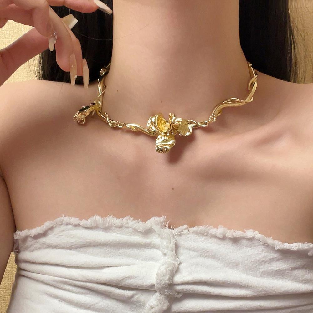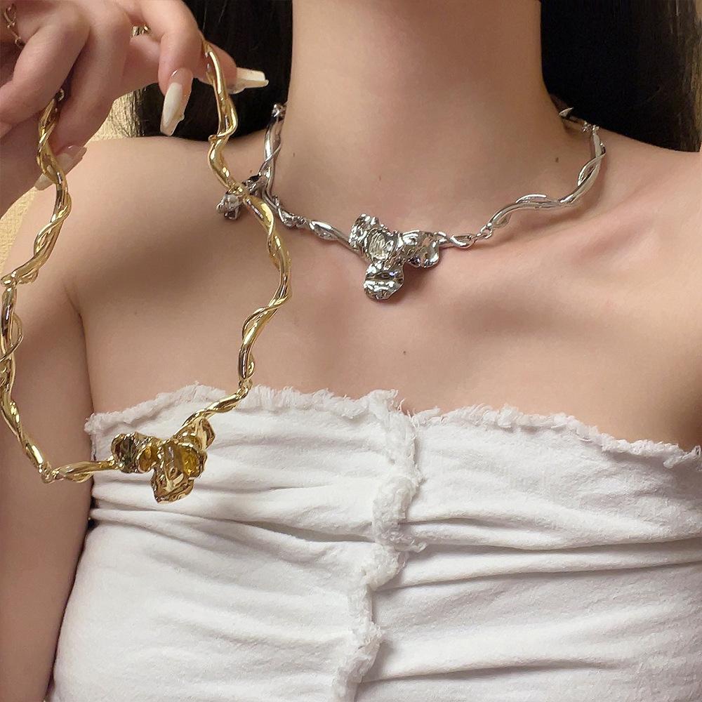 Moda Europea y Americana Metal Irregular Iris Collar Cadena Clavícula Vid Plisada Lujo Ligero Retro para Mujer Nueva Cadena de Collar