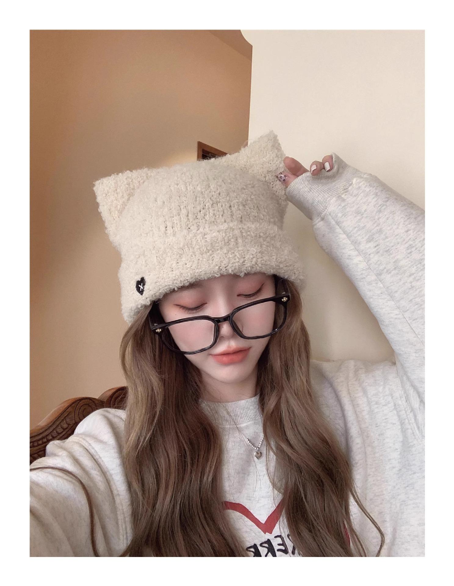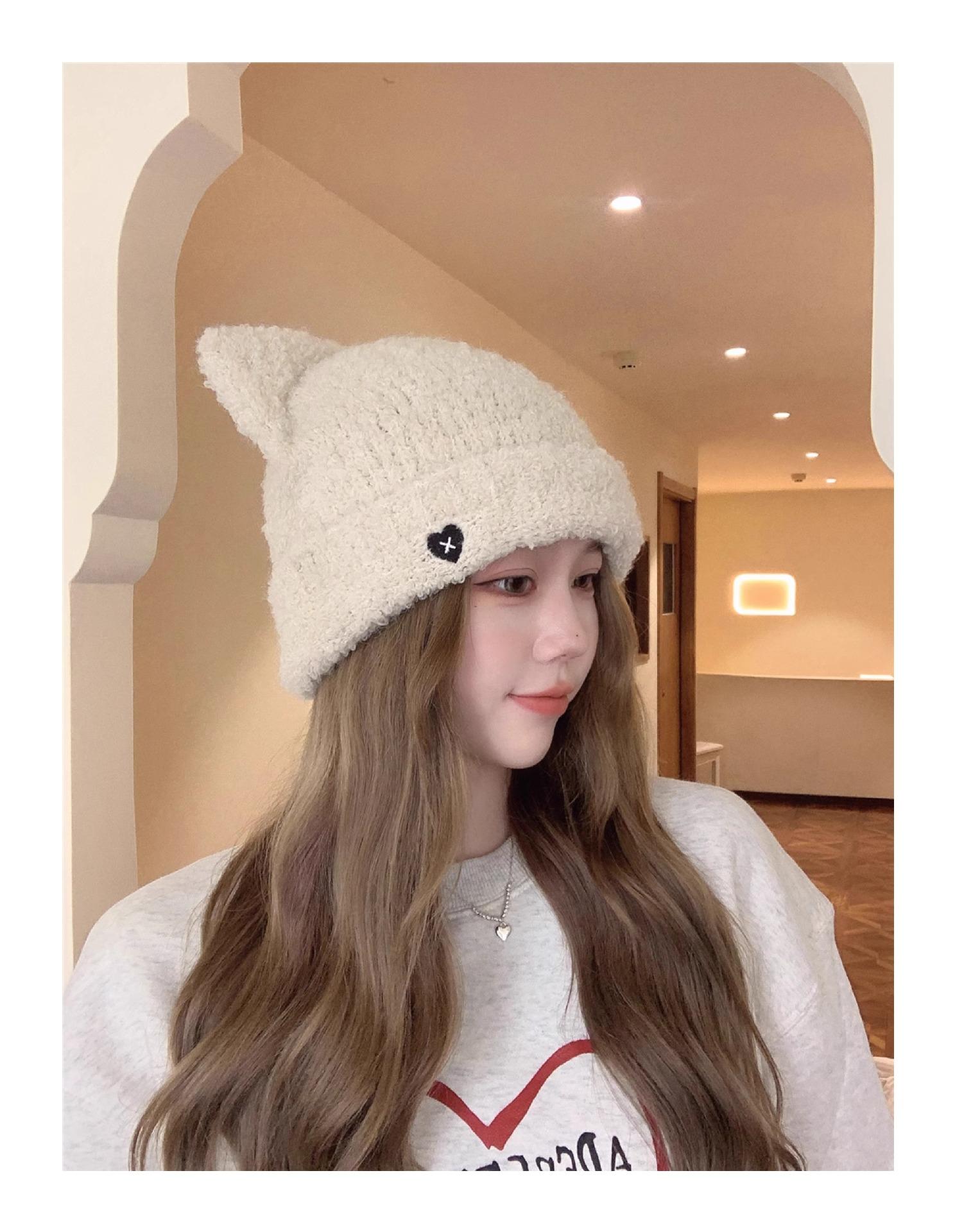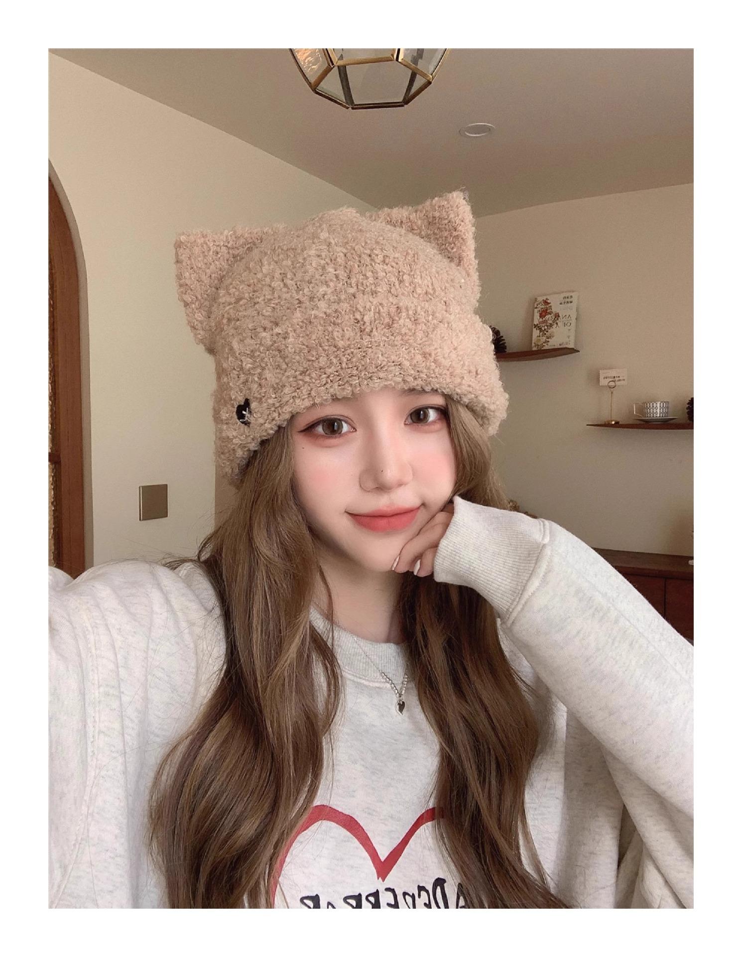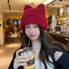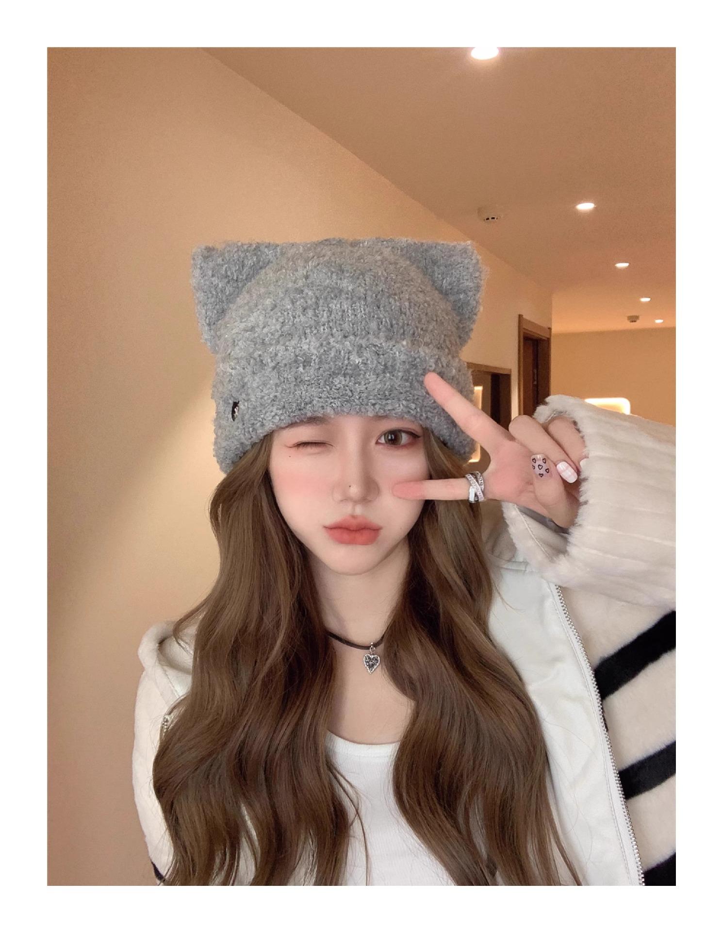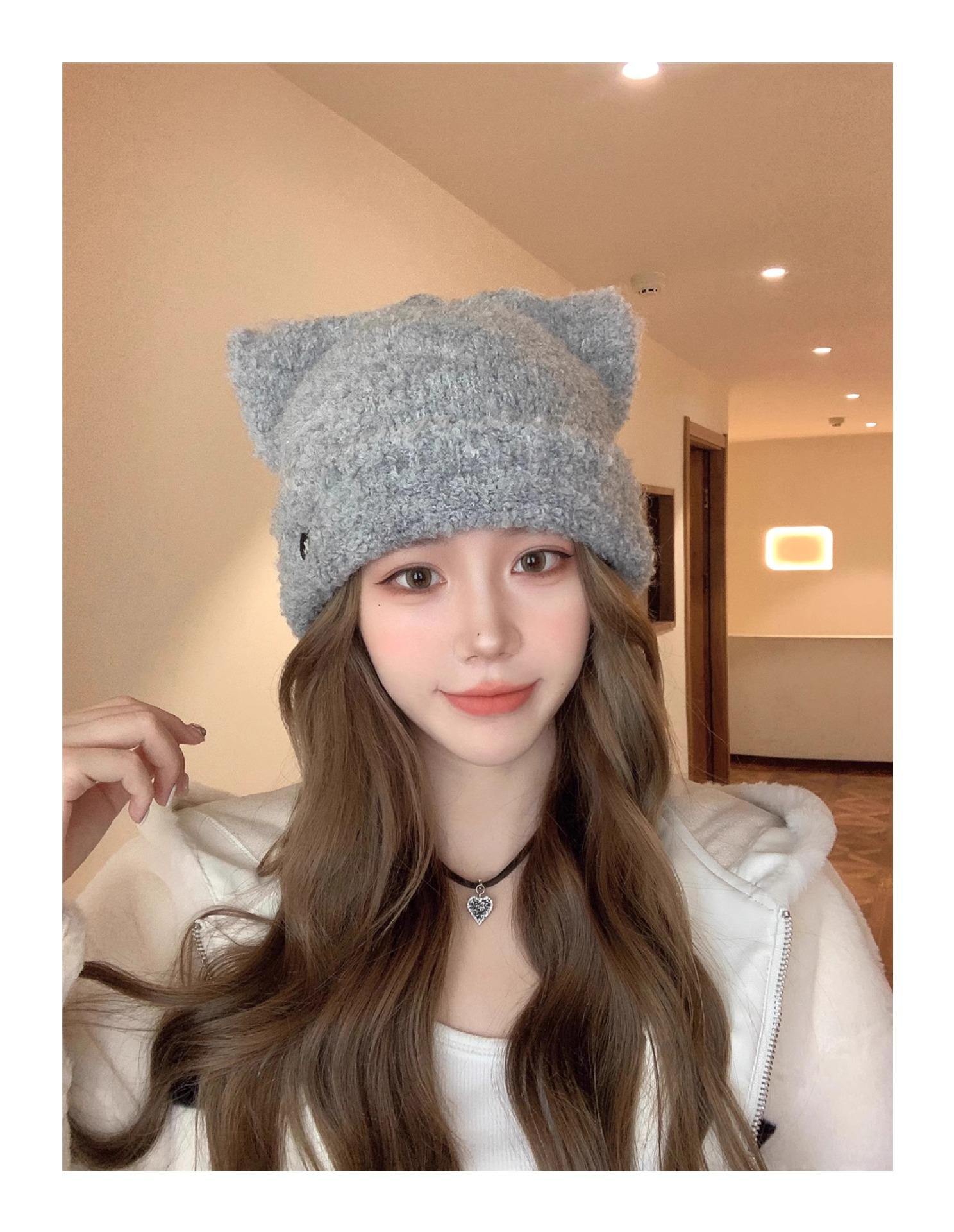 Sombrero de lana bordado encantador de orejas de gato dulce japonés para mujer, otoño e invierno, cálido, con protección para las orejas, de punto afelpado