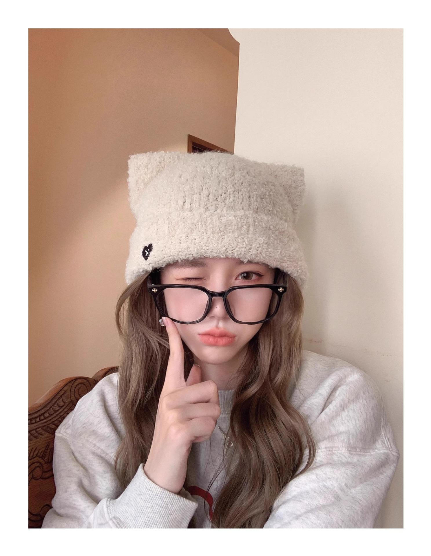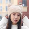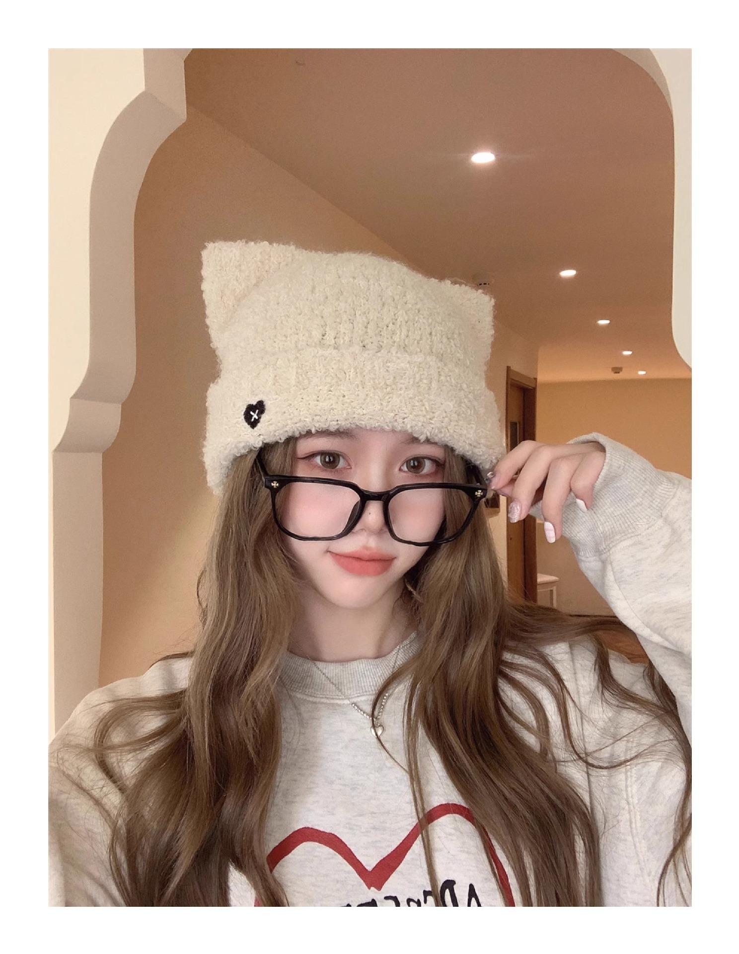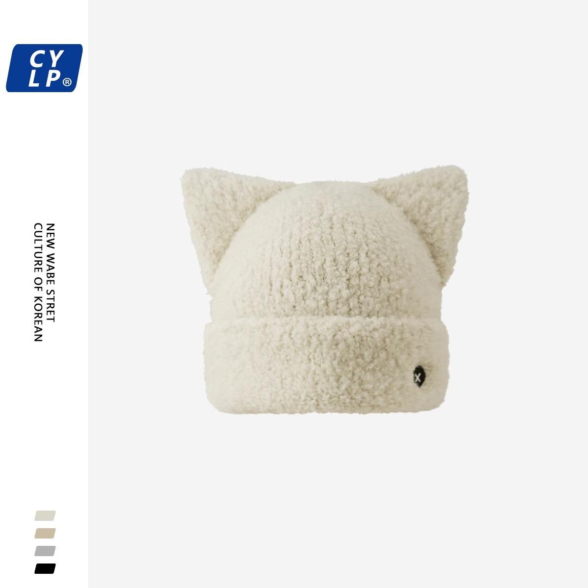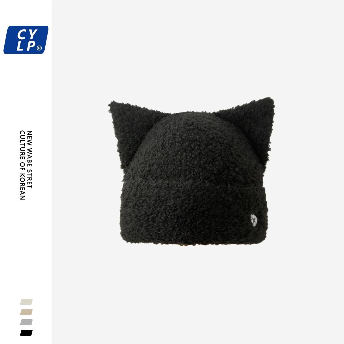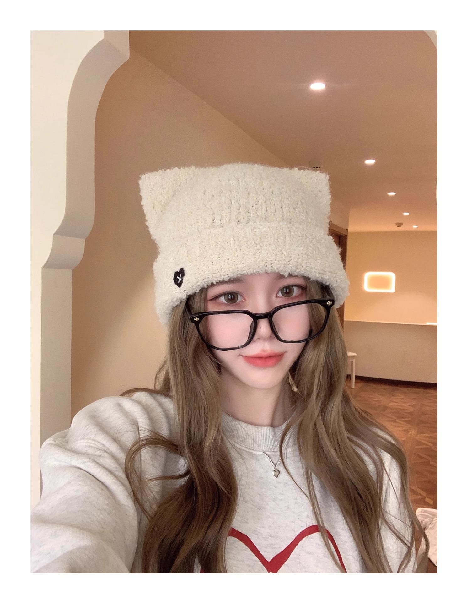 Sombrero de lana bordado encantador de orejas de gato dulce japonés para mujer, otoño e invierno, cálido, con protección para las orejas, de punto afelpado