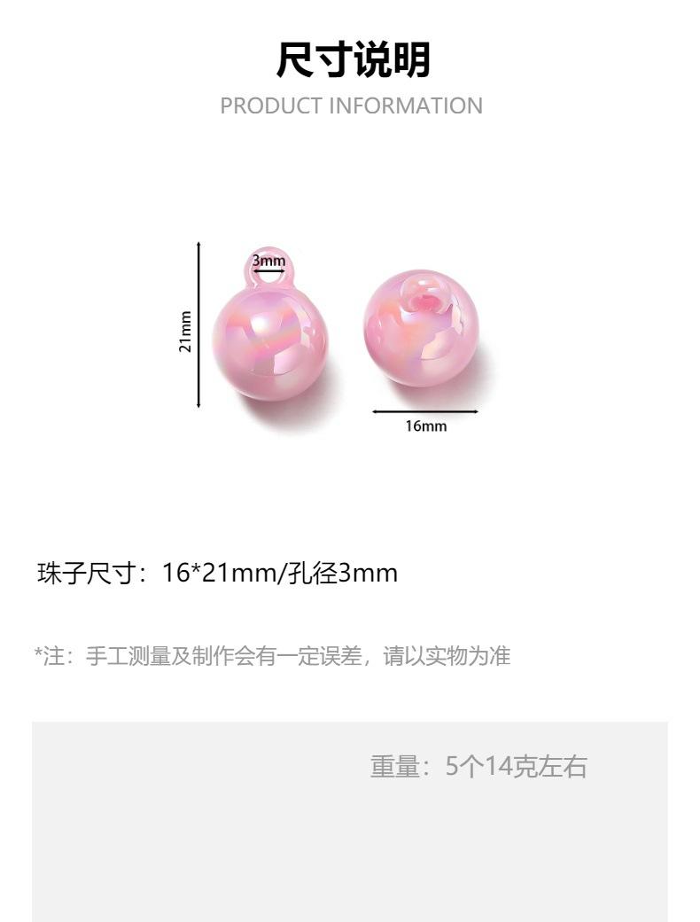 Nuevas cuentas redondas colgantes individuales de 16 mm de acrílico con baño UV de color brillante, cadena para teléfono móvil DIY, cadena para bolso, accesorios de joyería, cuentas sueltas