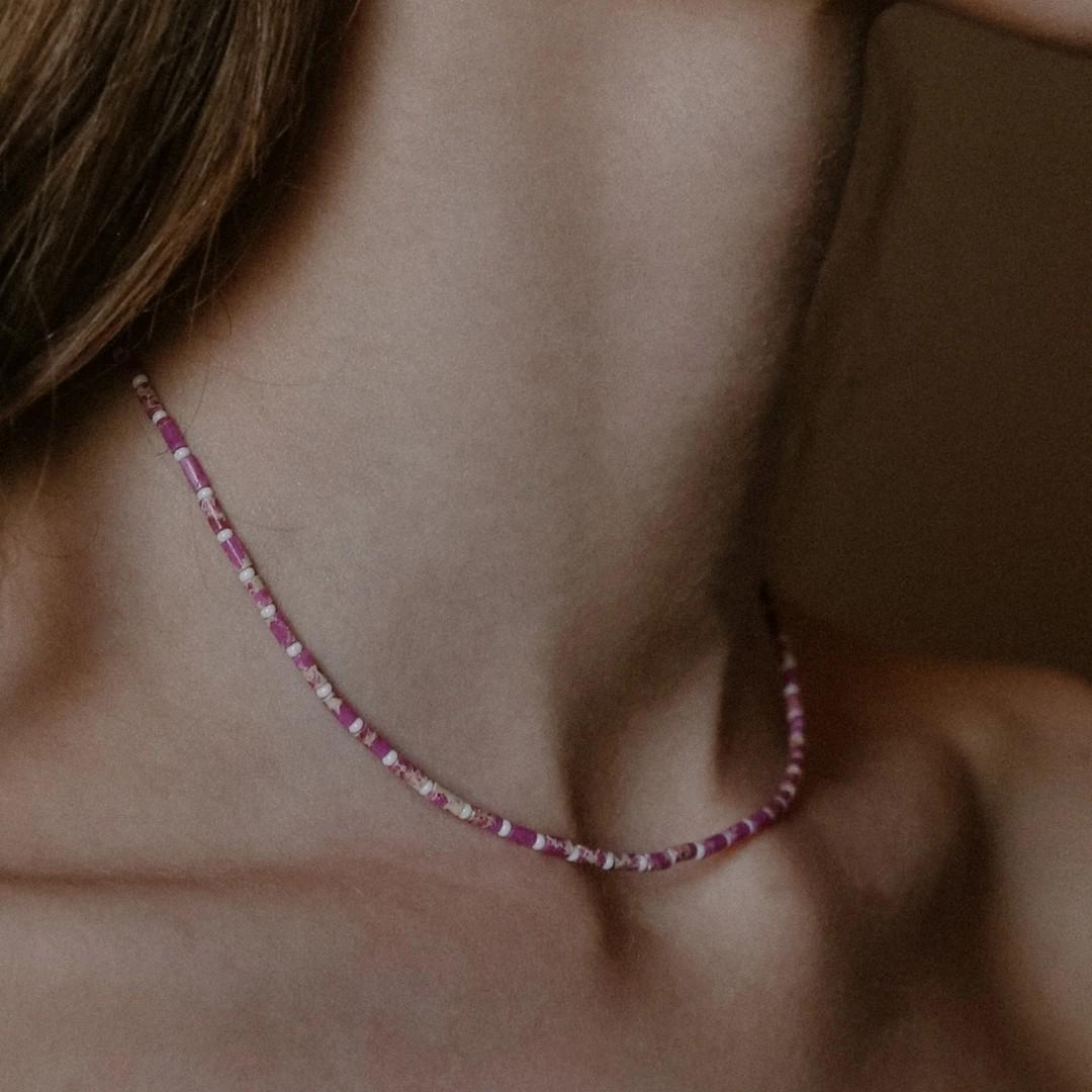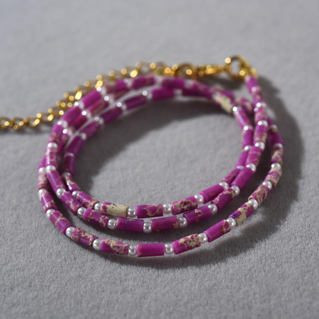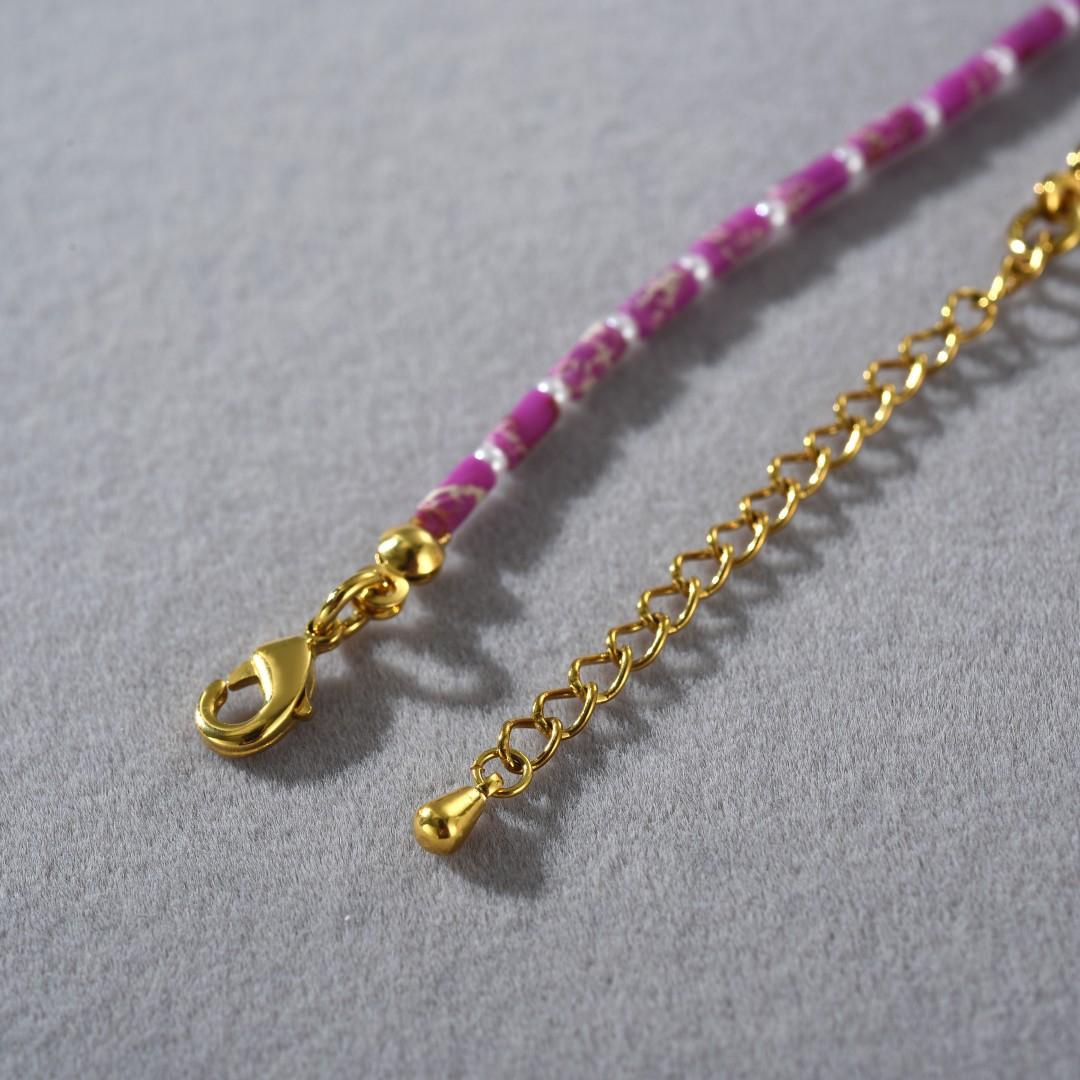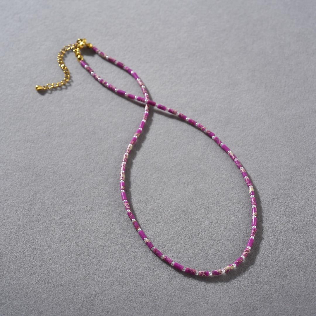 Cadena Clavicular Europea y Americana Chapada en Cobre Oro Real de 18K Dopamina Gema Púrpura Contrastante Perlas Ensartadas Collar Imprescindible de Verano