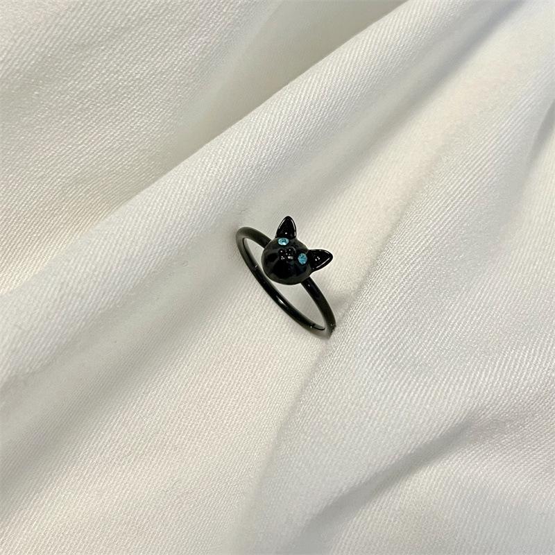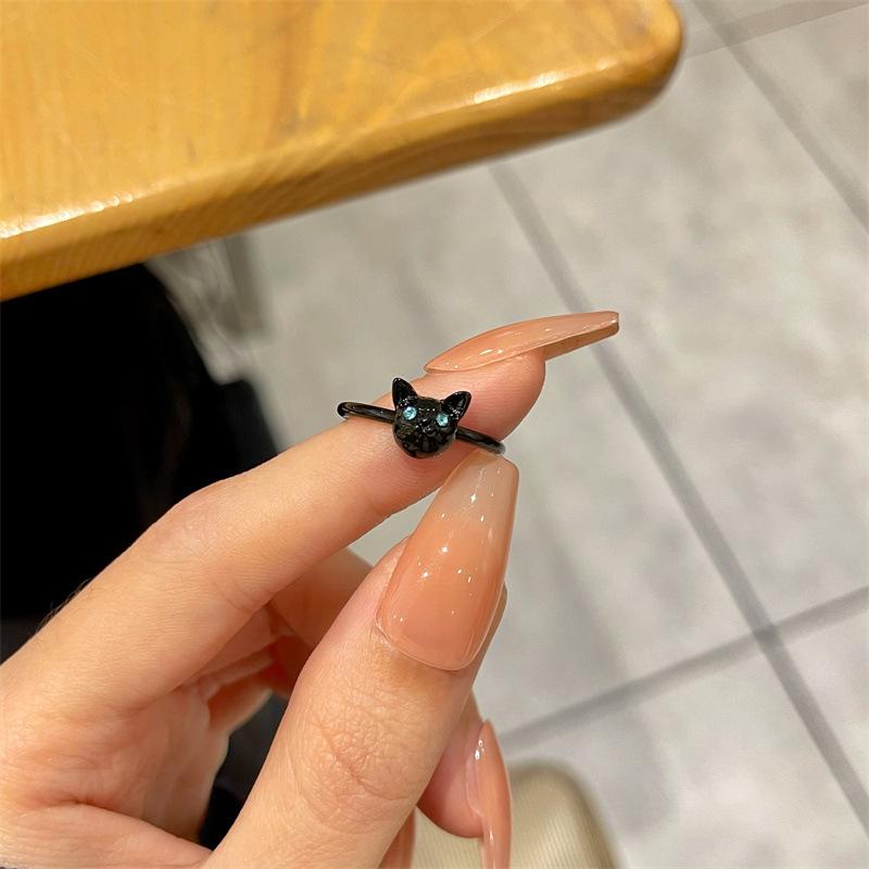 Anillo de Gatito Negro para Mujer 2025 Nuevo Anillo de Dedo Índice de Diseño Nicho Trendy Ins Anillo de Moda Personalizado