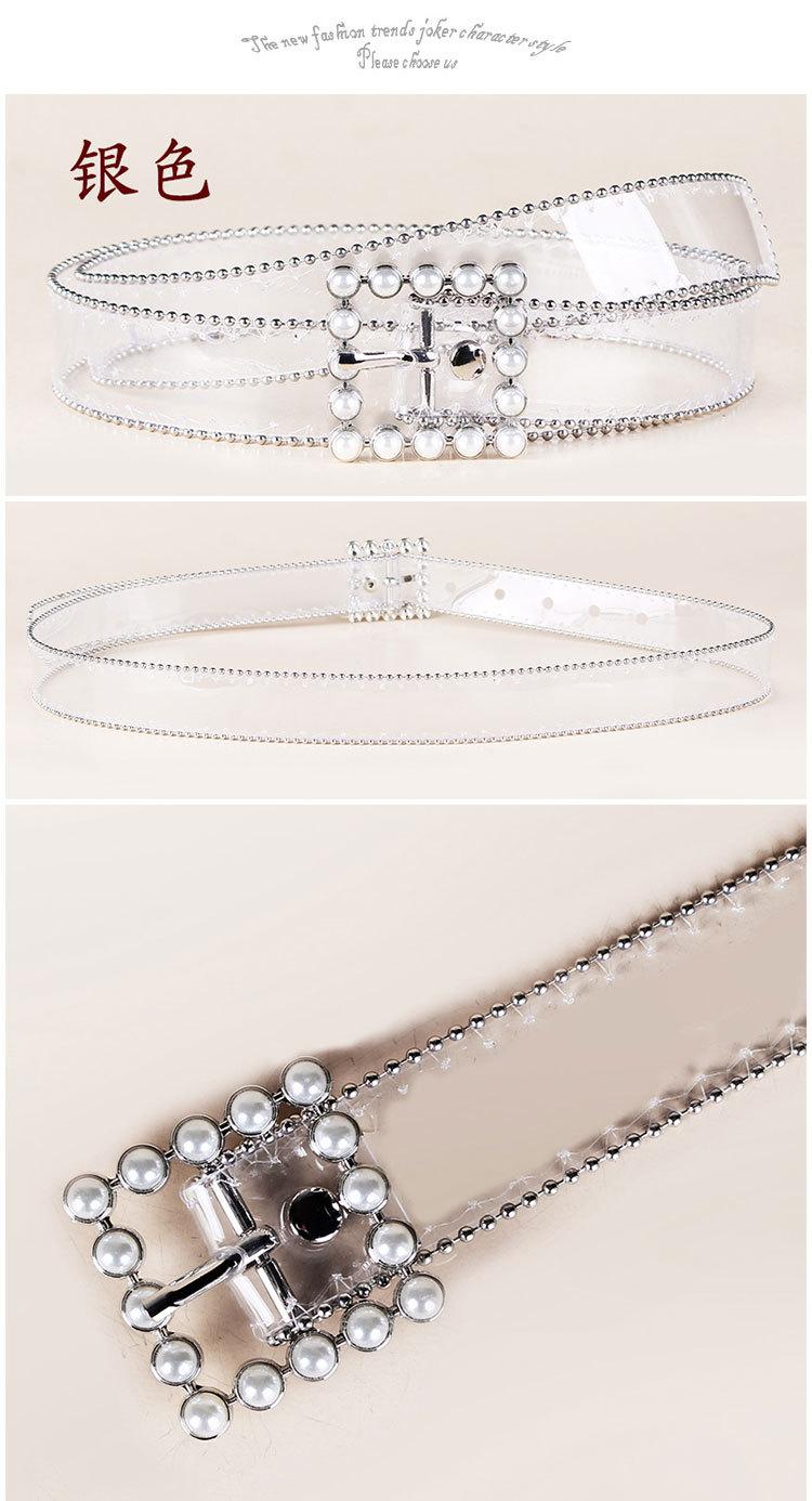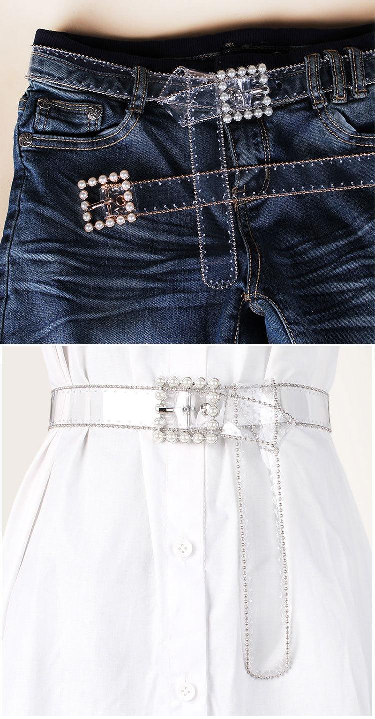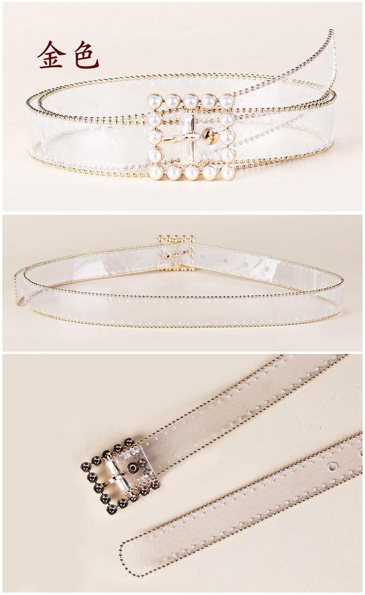 Cinturón fino transparente de buena calidad para mujer, estilo punk, con remaches y hebilla cuadrada, de plástico vintage para vaqueros.