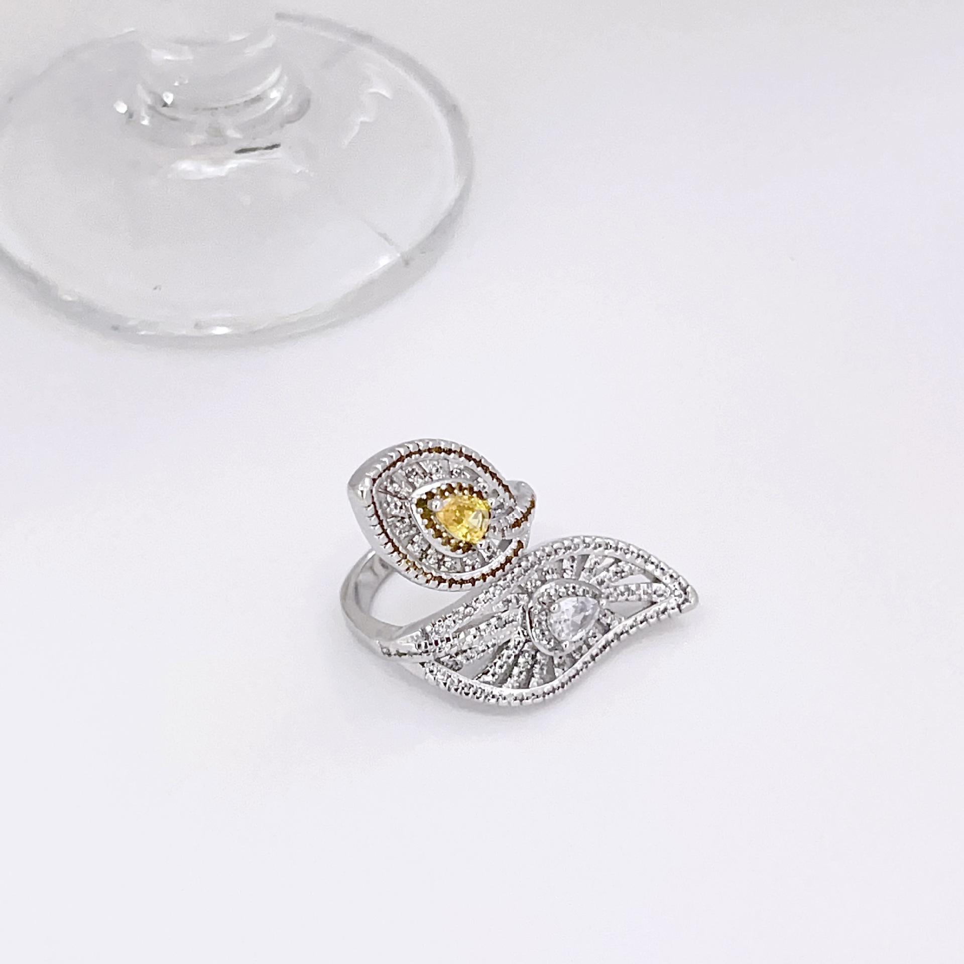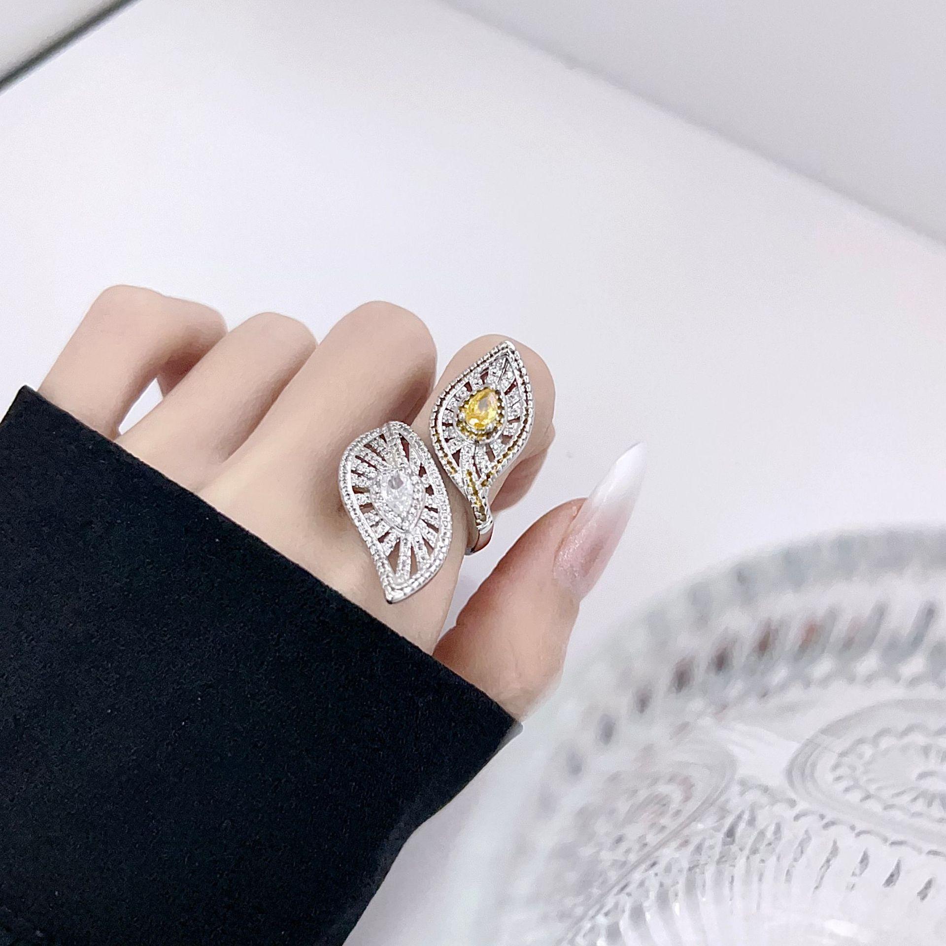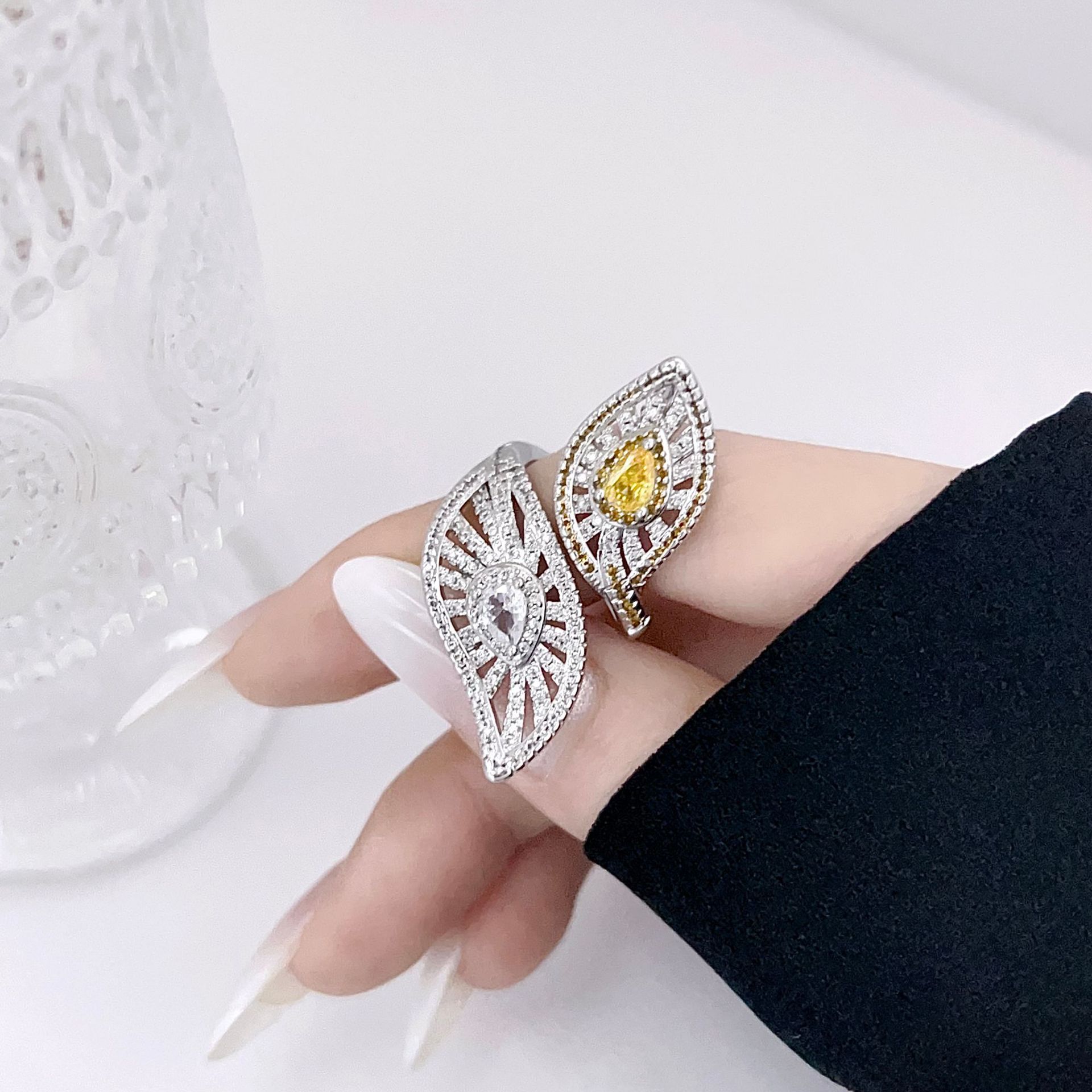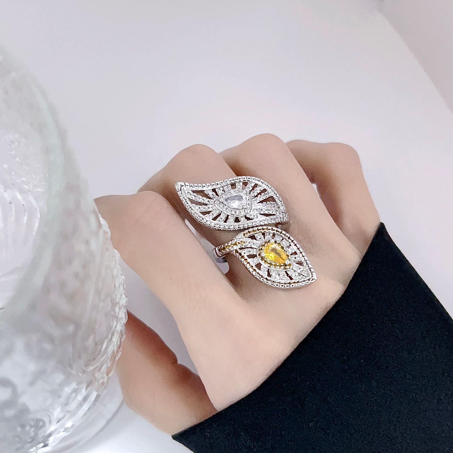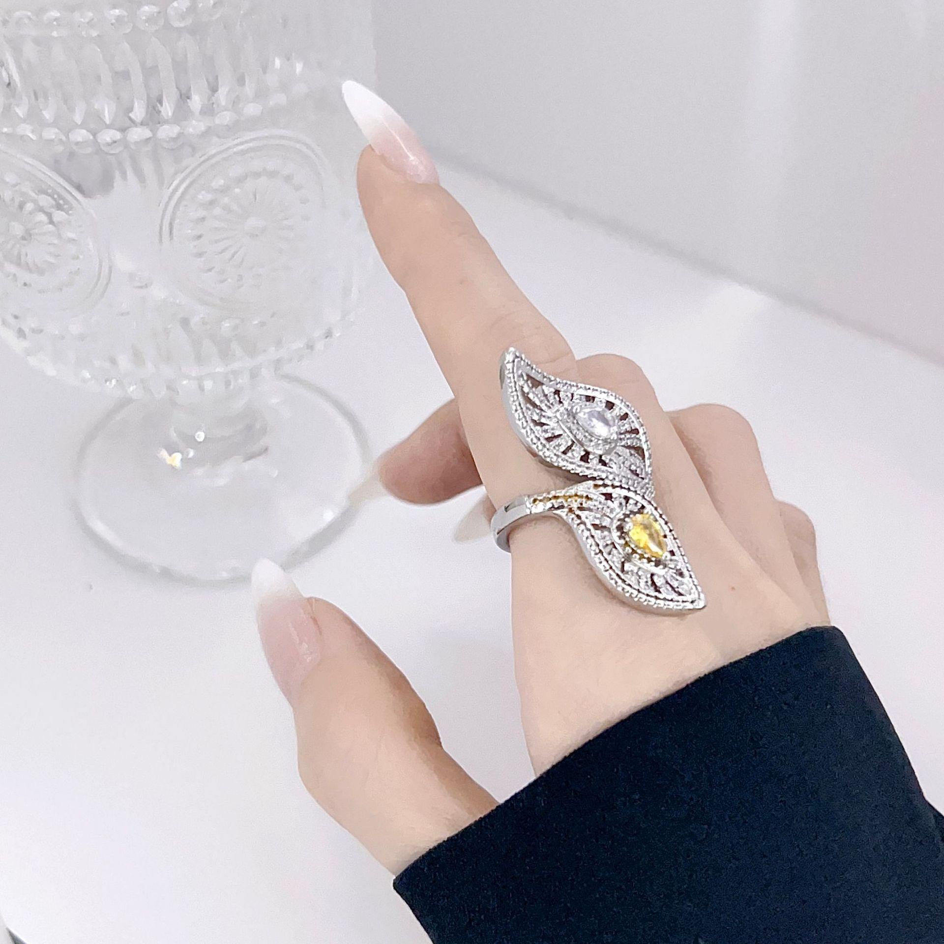 Anillo hueco vintage de la industria pesada, exquisito, con apertura de joyería de reina, diseño de nicho de circón y diamante amarillo, anillo que combina con todo.
