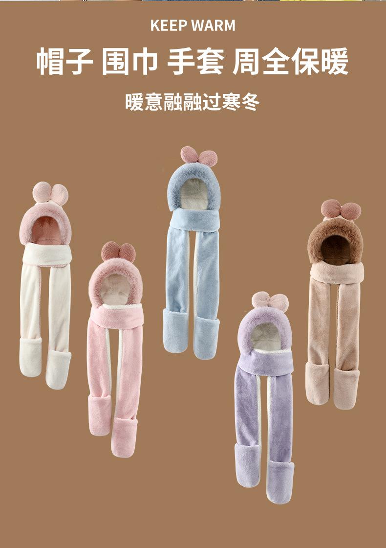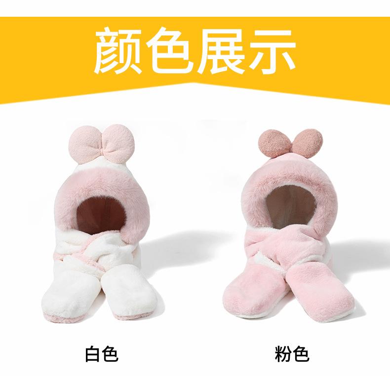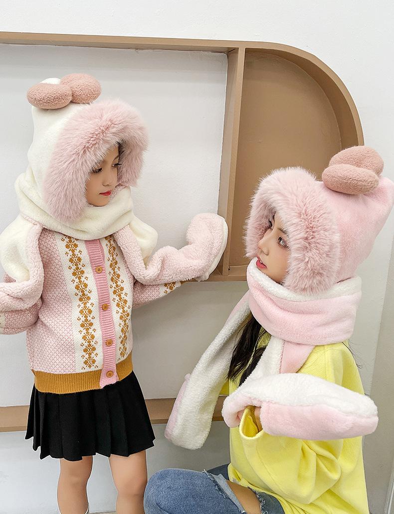 Gorro de felpa de invierno con bufanda integrada para niños, cálido, resistente al frío, suave, estilo coreano, para padres e hijos, adultos, traje de bufanda