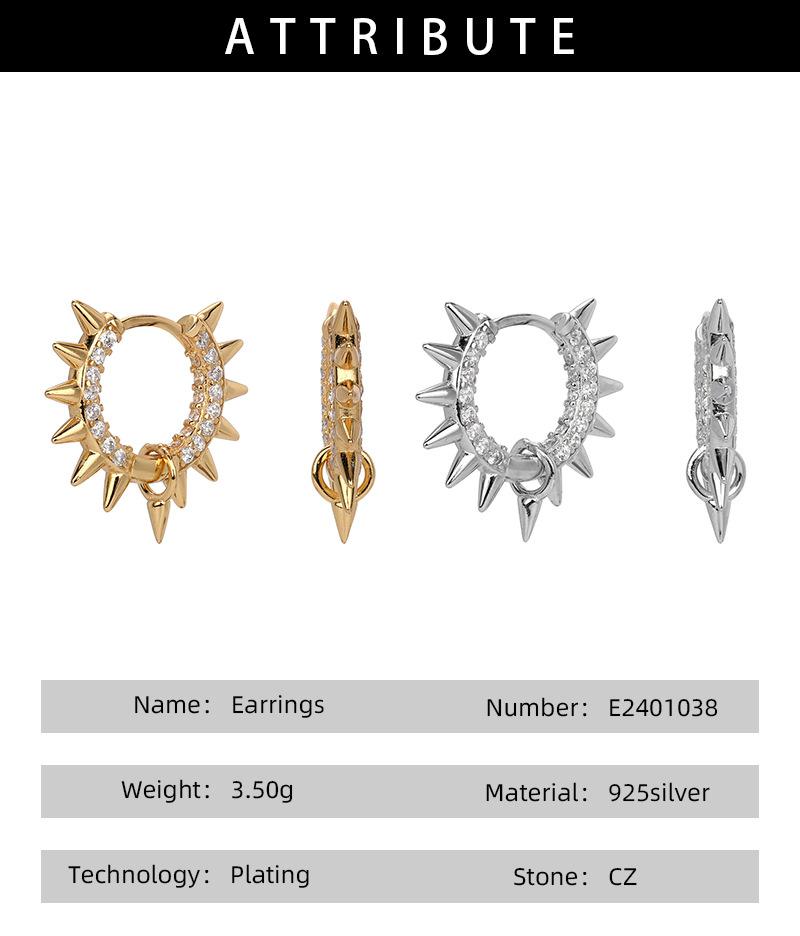 Pendientes de plata de ley S925 con remaches y hebilla, de gran venta transfronteriza entre Europa y América, de moda, ligeros, de lujo y de alta calidad, combinables con todo.