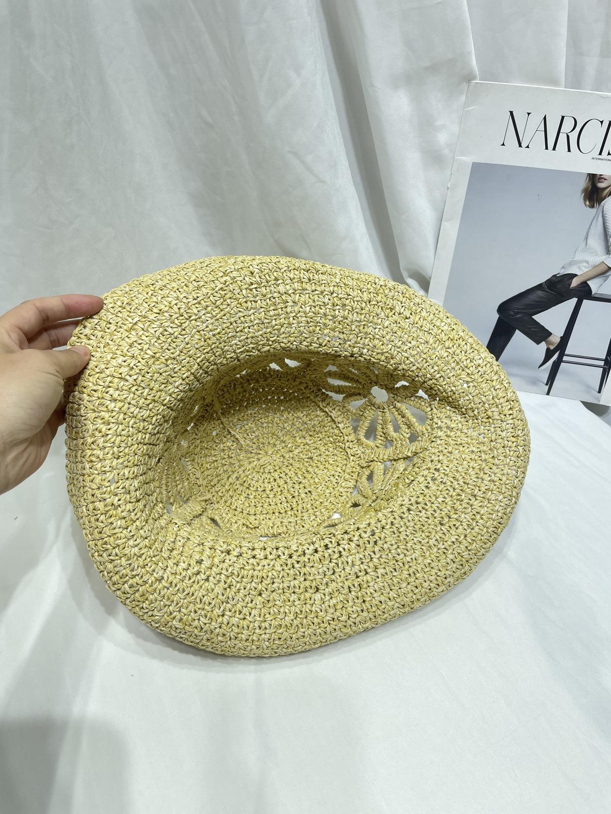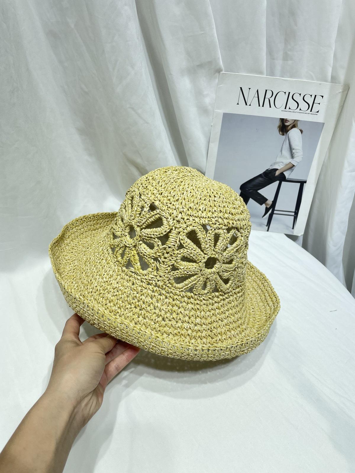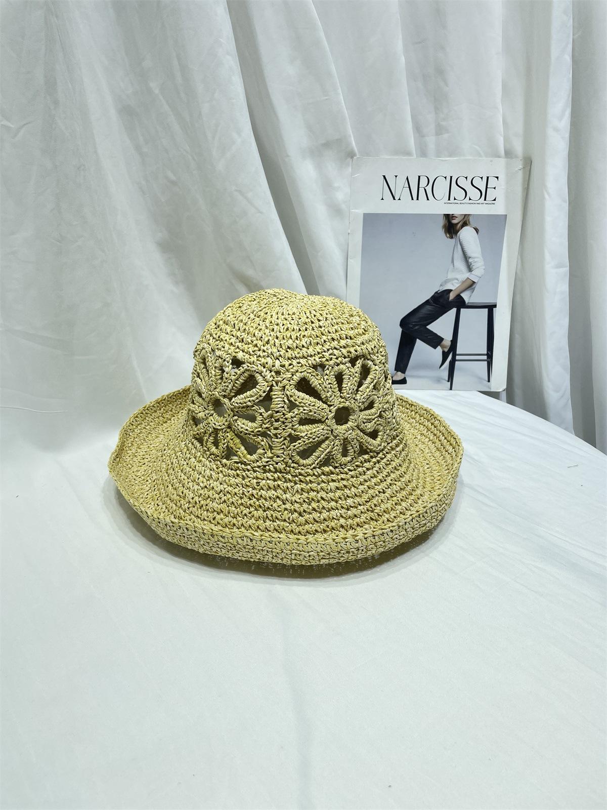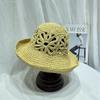 Sombrero de Paja de Flores Tejido a Mano para Niños Verano Calado Transpirable Artístico Rizo Sombrero de Pescador Sombrero de Playa Sombrilla para la Orilla del Mar