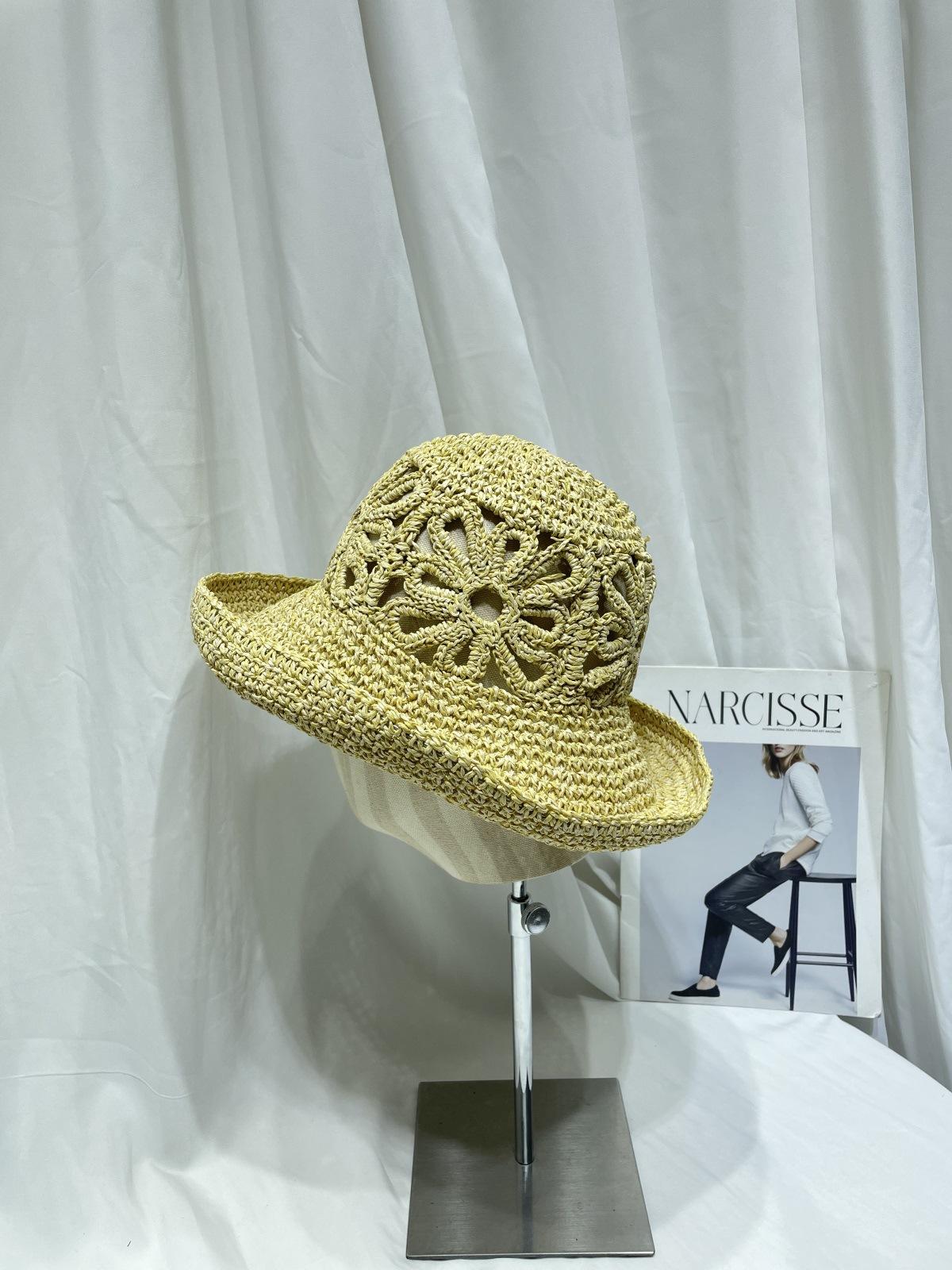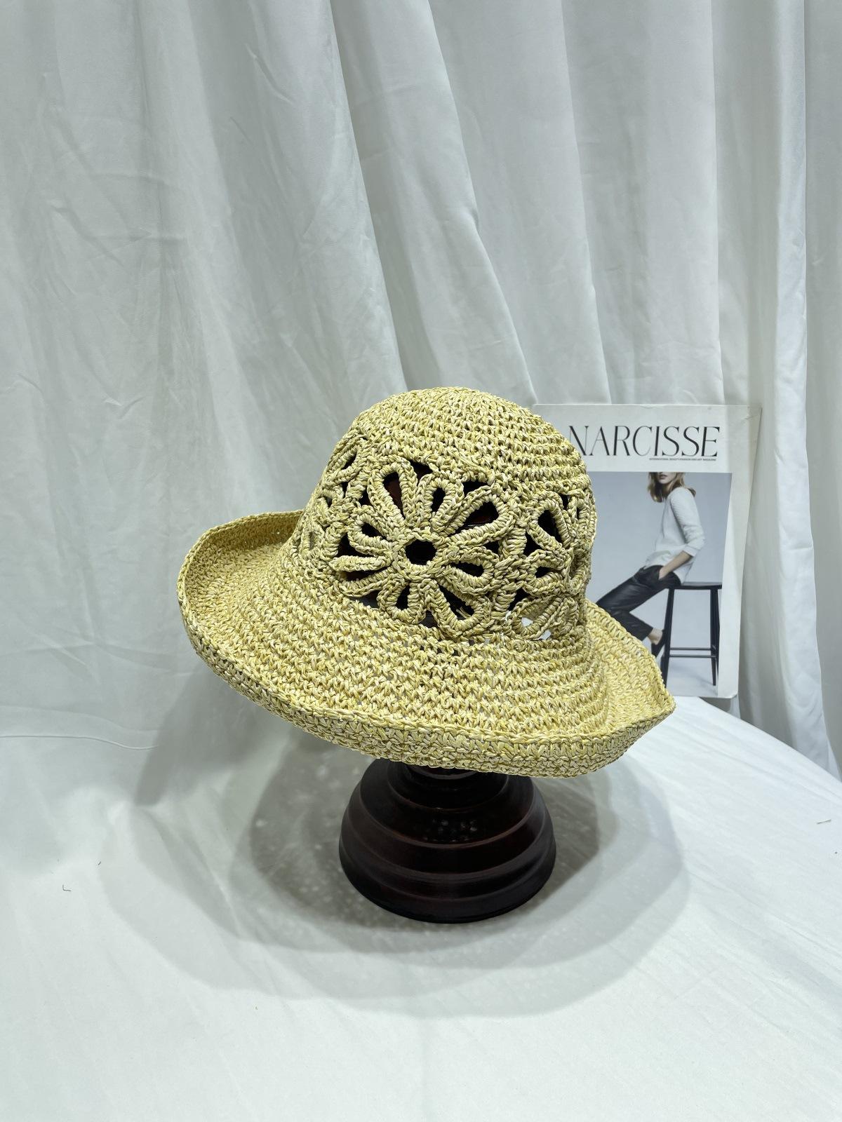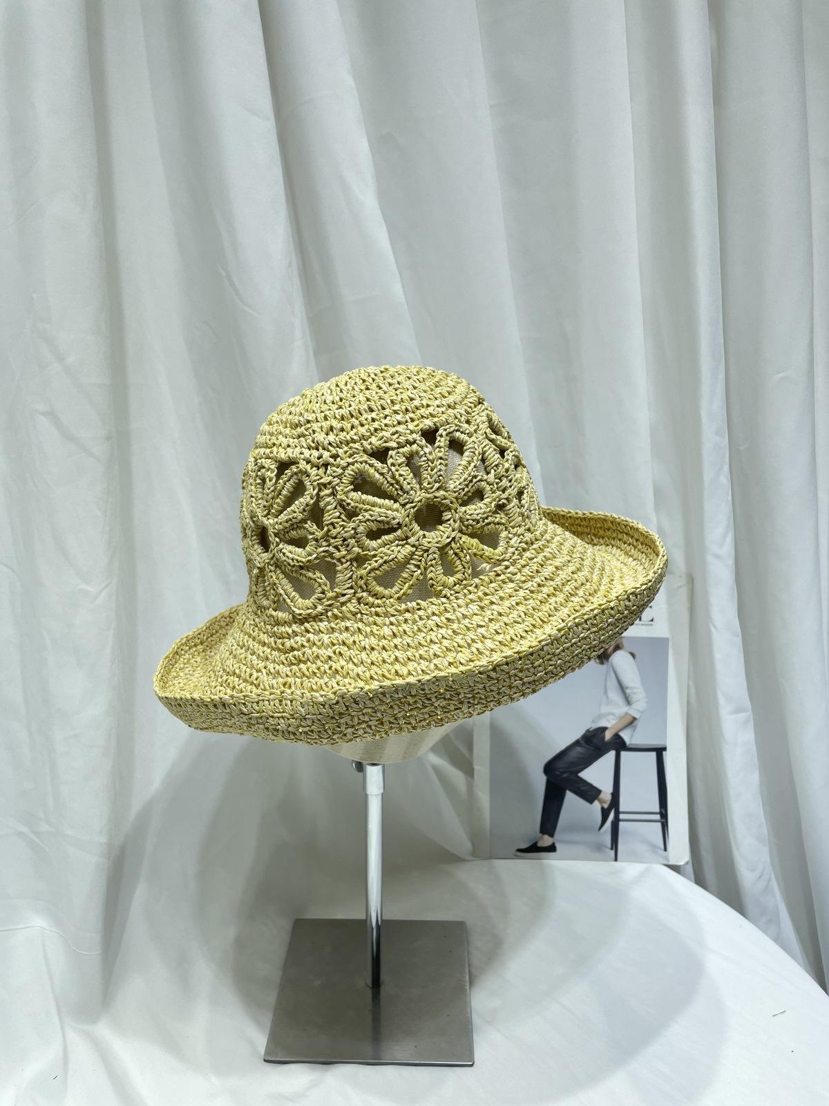 Sombrero de Paja de Flores Tejido a Mano para Niños Verano Calado Transpirable Artístico Rizo Sombrero de Pescador Sombrero de Playa Sombrilla para la Orilla del Mar