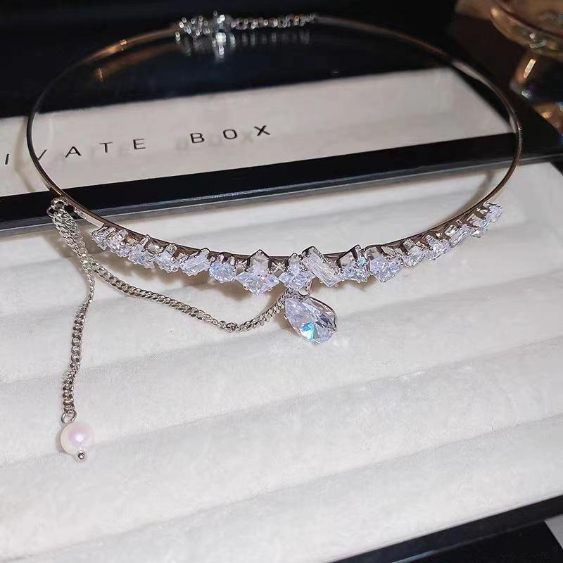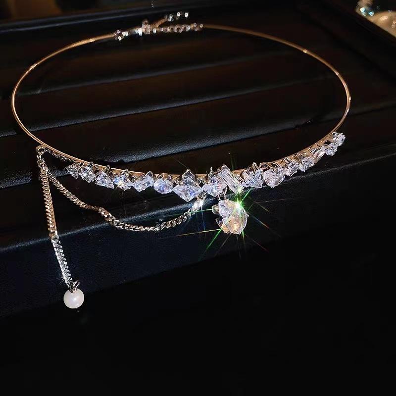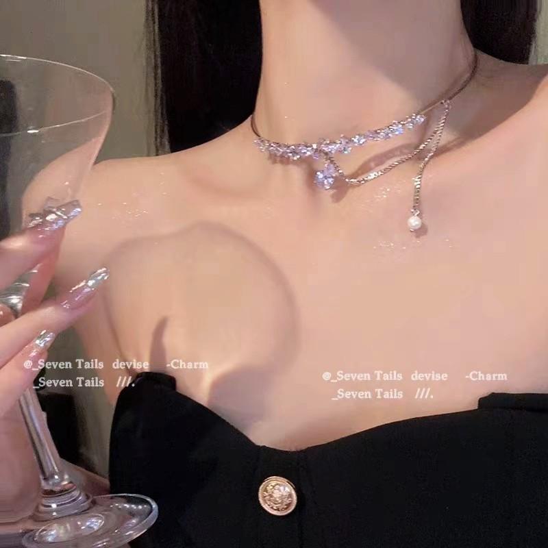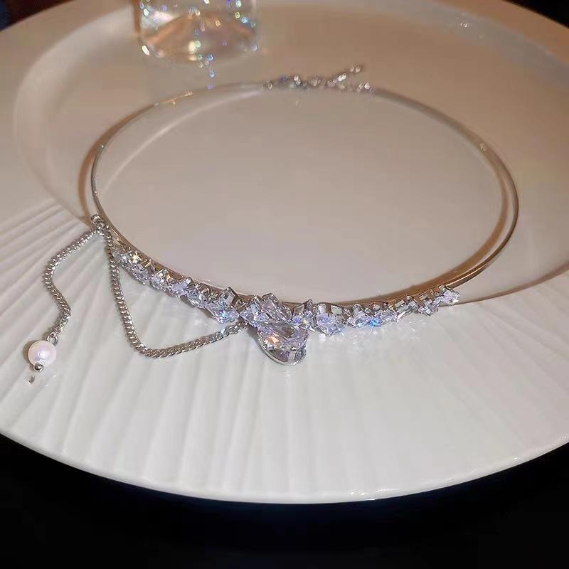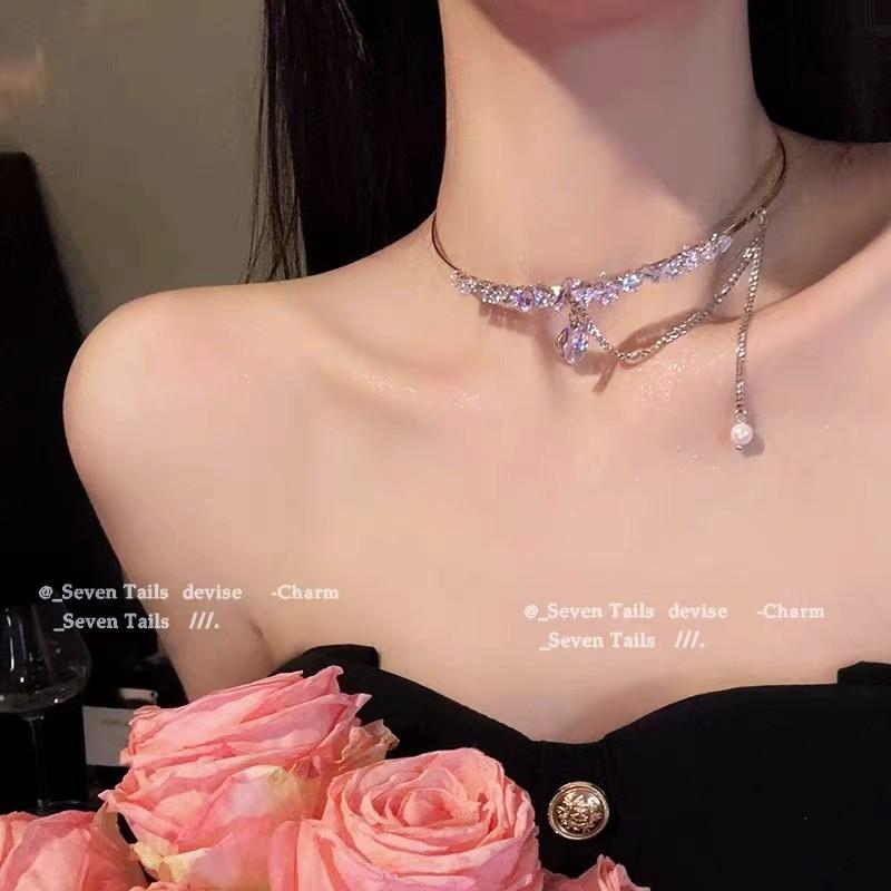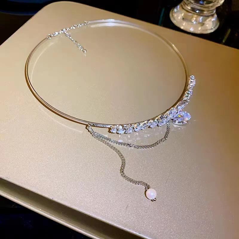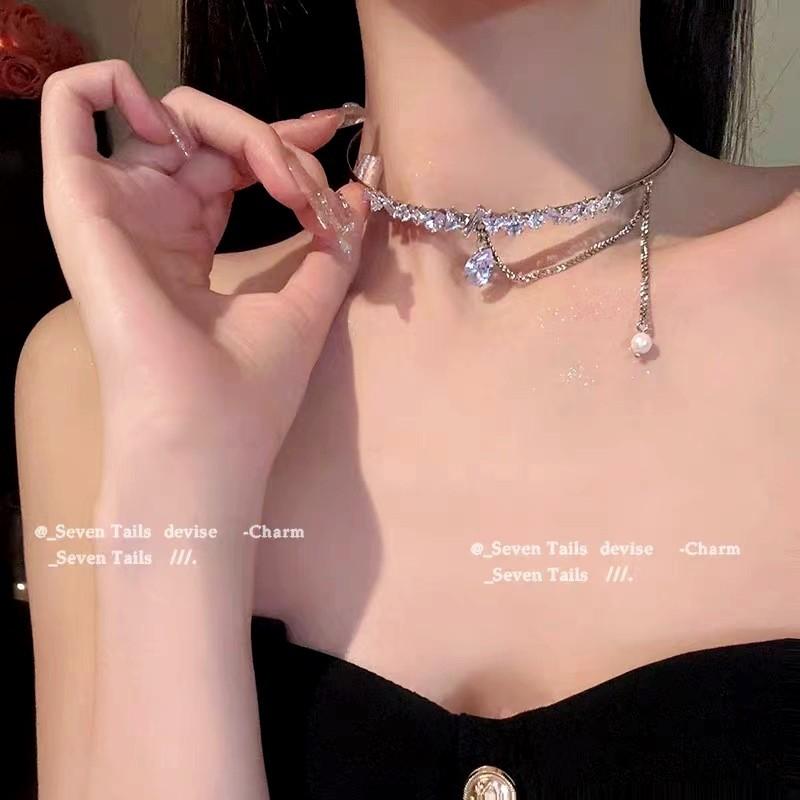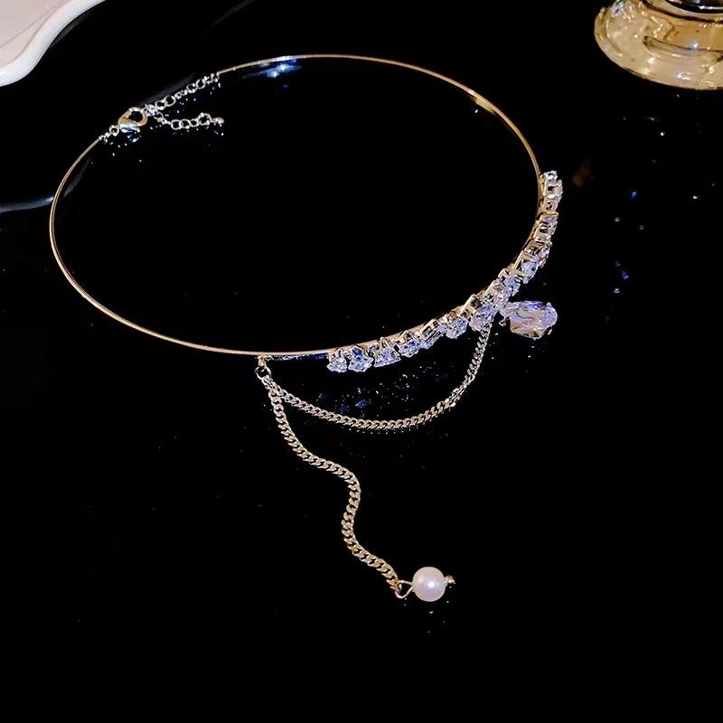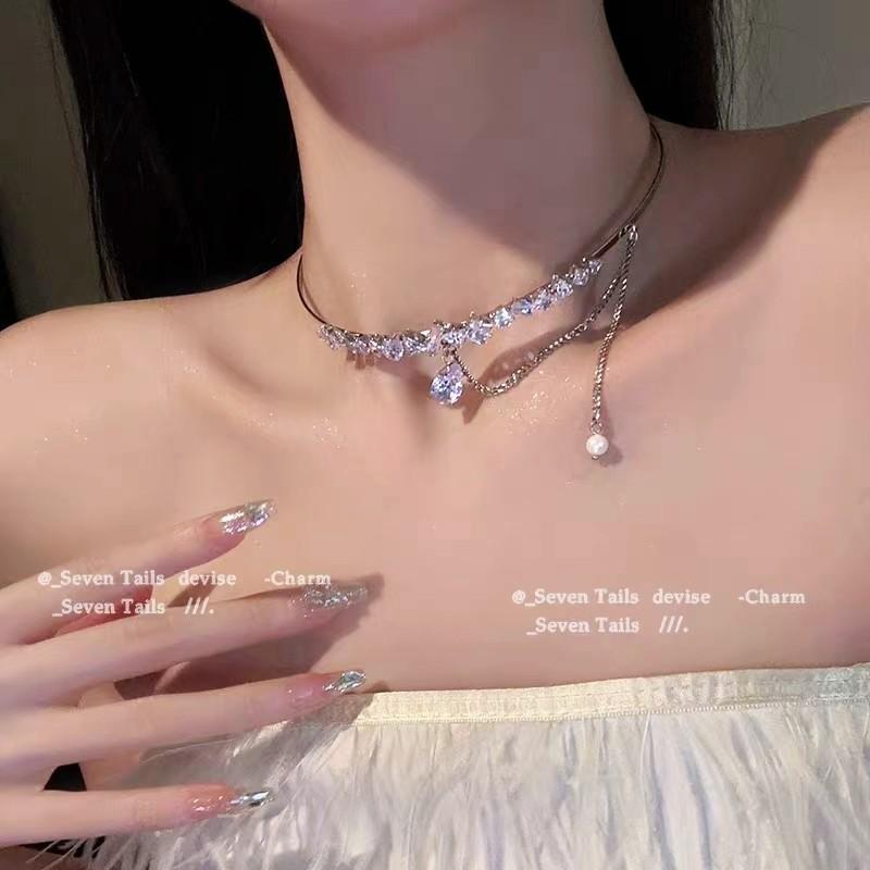 Collar elegante y exquisito con borlas de perlas y diamantes de imitación en forma de gota, de moda ligera y de lujo, popular en línea.