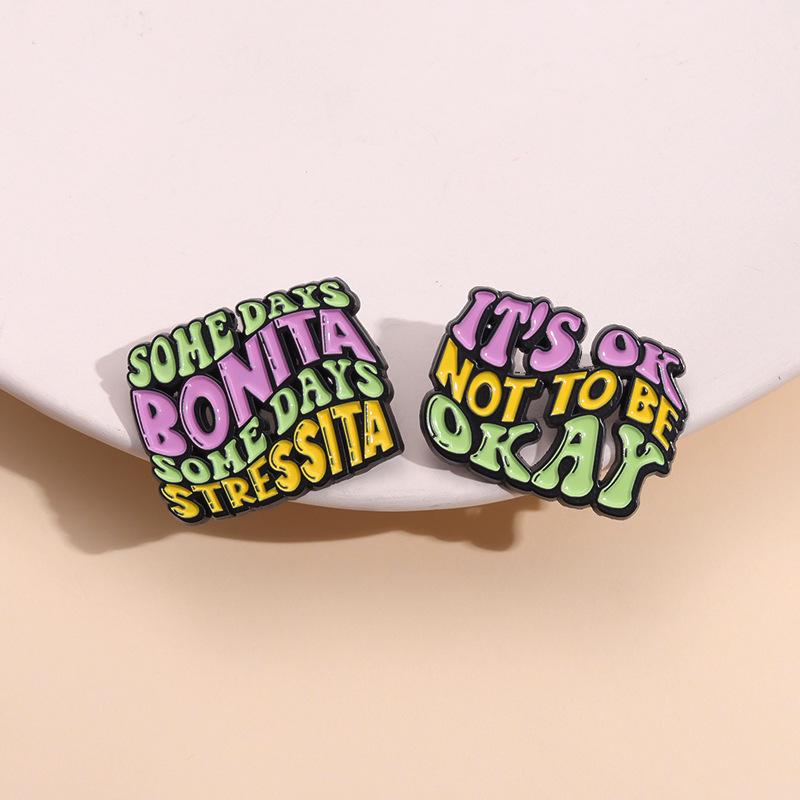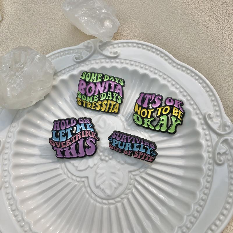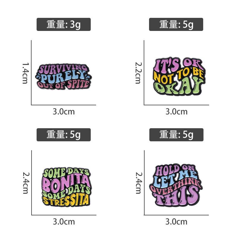 Broche con letras de colores de Amazon, creativo, sencillo, con frases cortas en inglés, para ropa, bolsos, accesorios, insignia de metal.