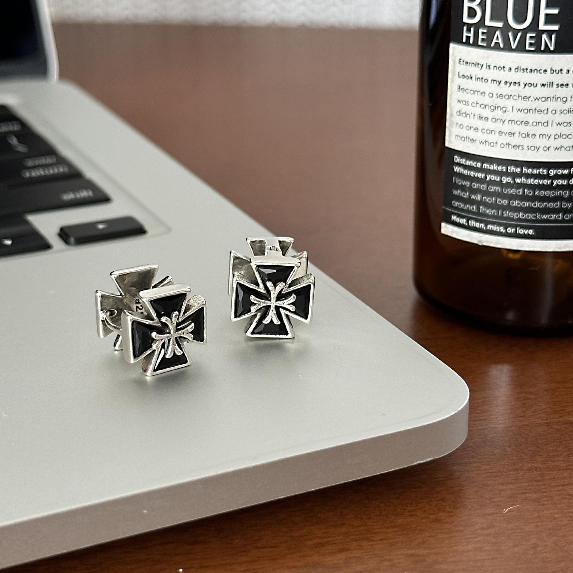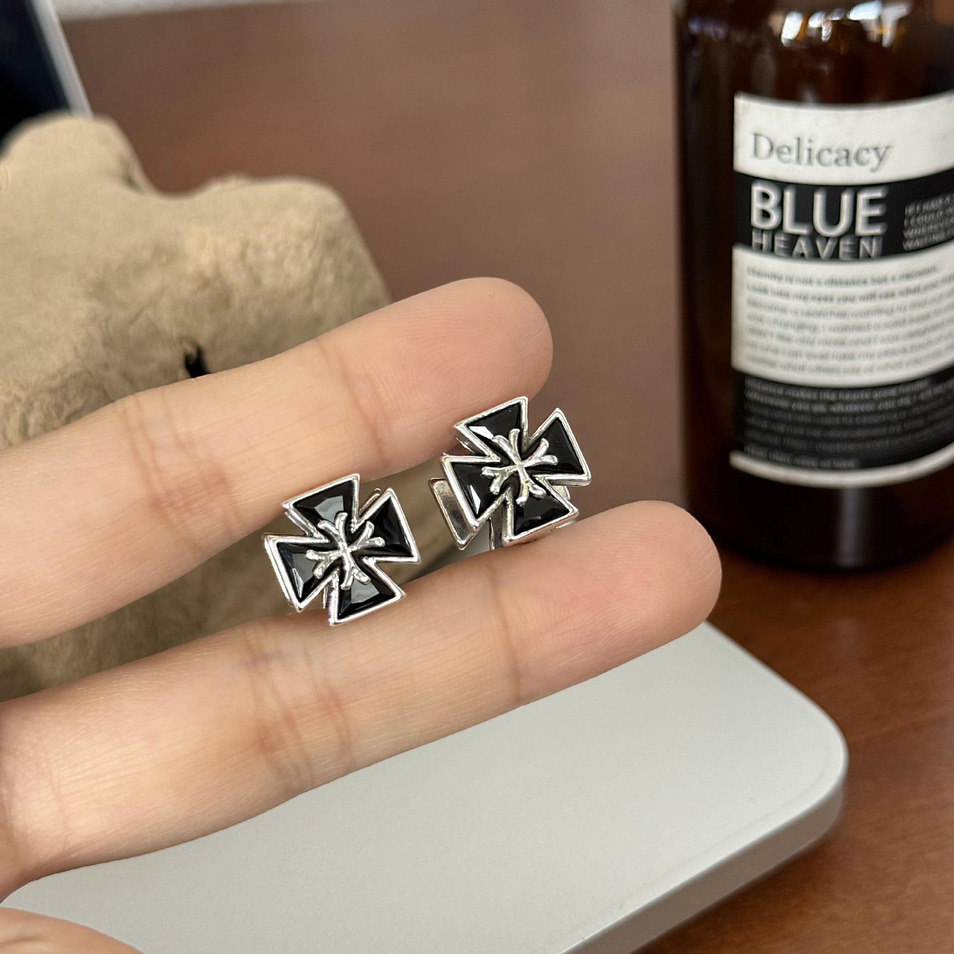 Explosiones Transfronterizas Circonita Negra Arete de Cruz de Doble Cara Retro Angustiado Hebilla de Oreja de Alta Gama Pendientes Exquisitos Punk