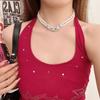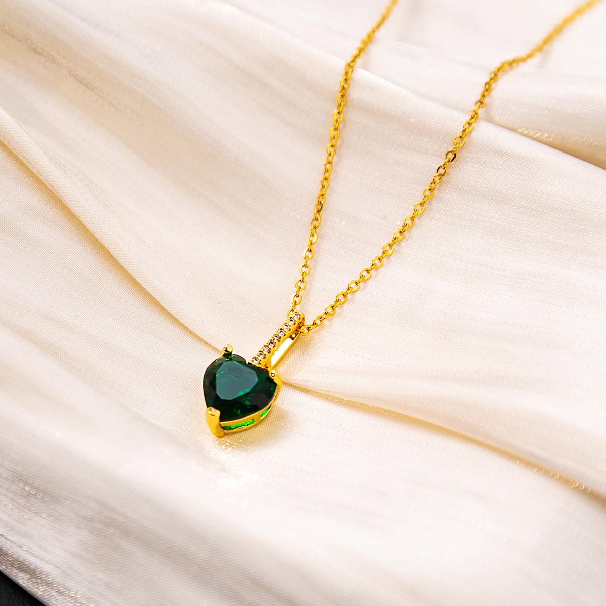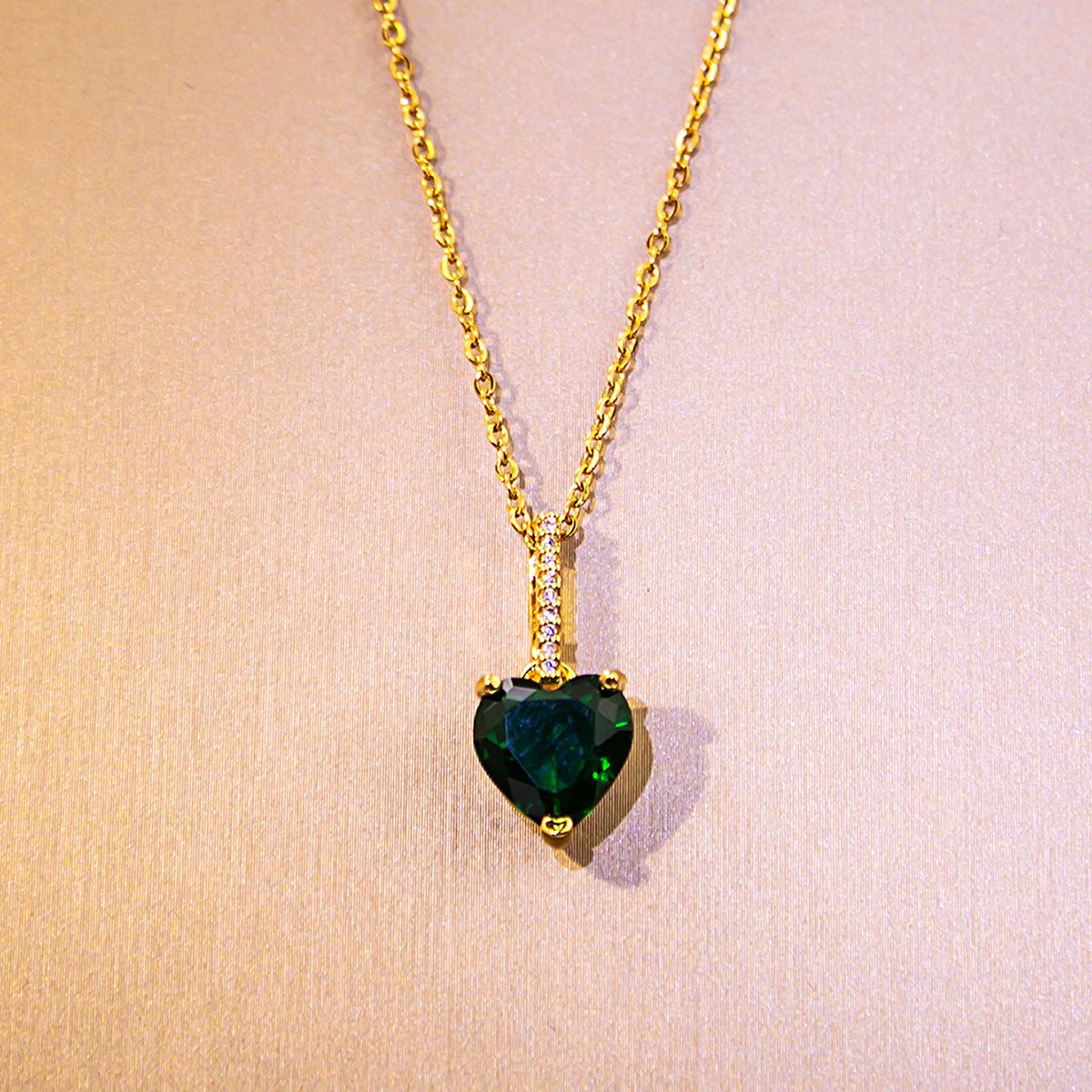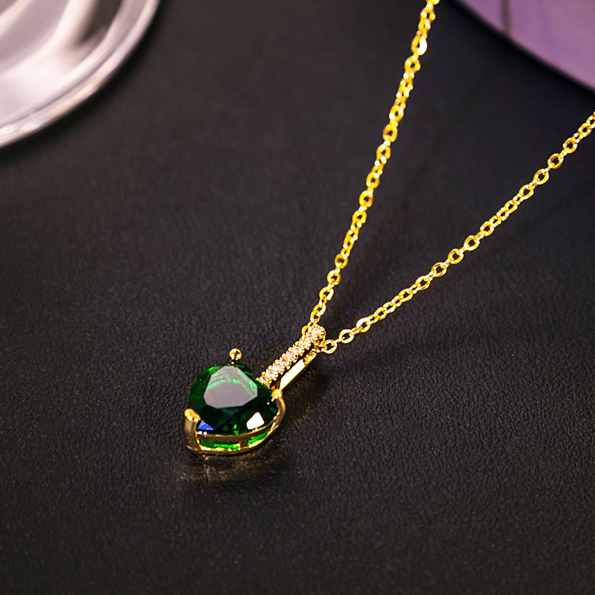 Collar de amor esmeralda simple, estilo retro europeo y americano, con temperamento artístico, exquisita cadena de clavícula con incrustaciones de diamantes.