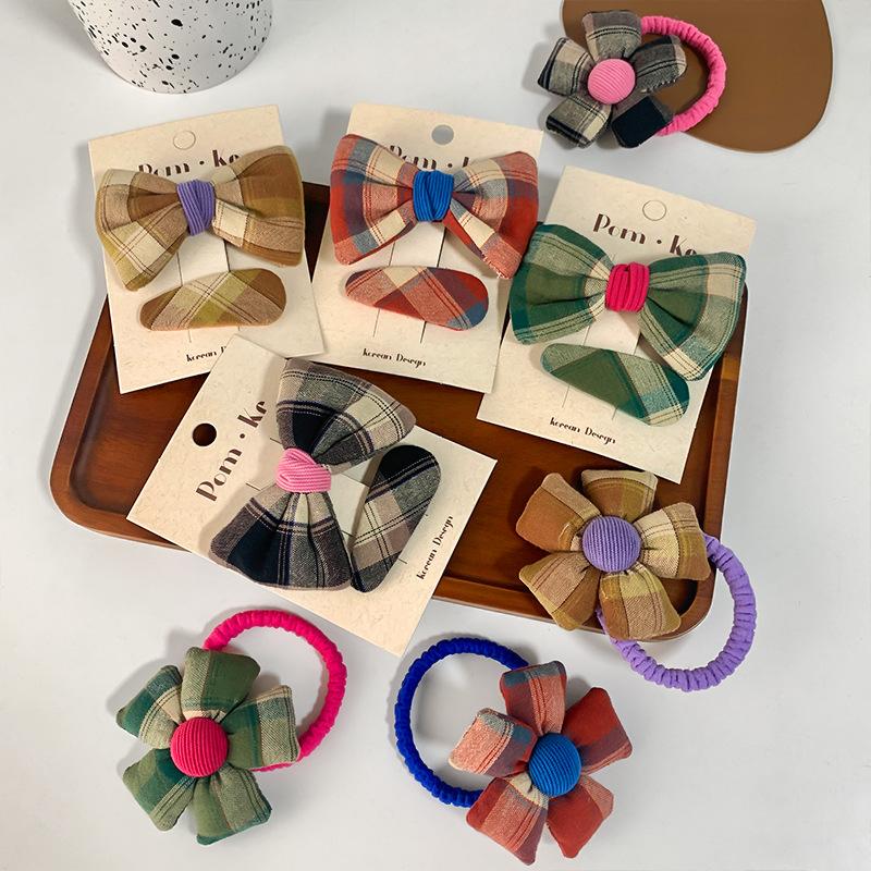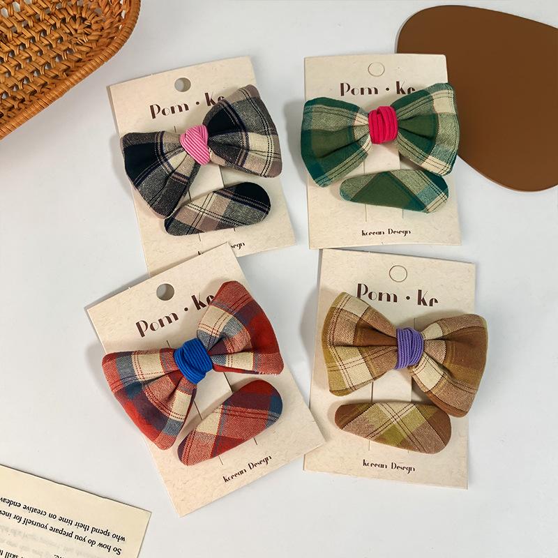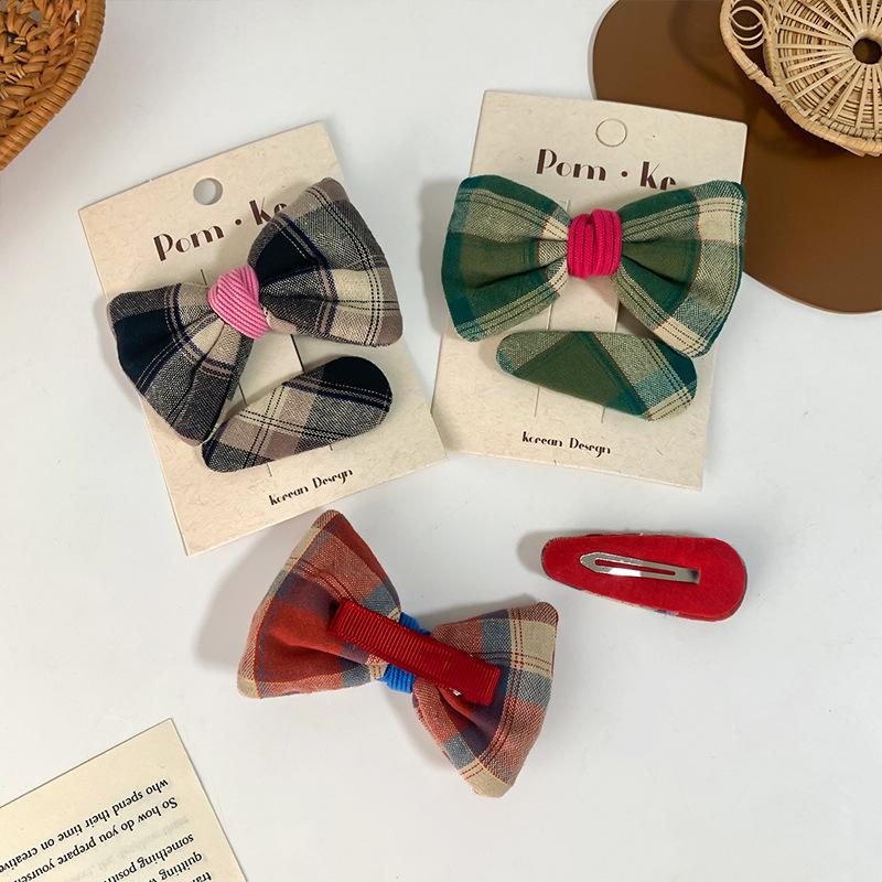 [1] red plaid bow hairpin two-piece set, [2] Black plaid bow hairpin two-piece set, [3] Brown plaid bow hairpi...