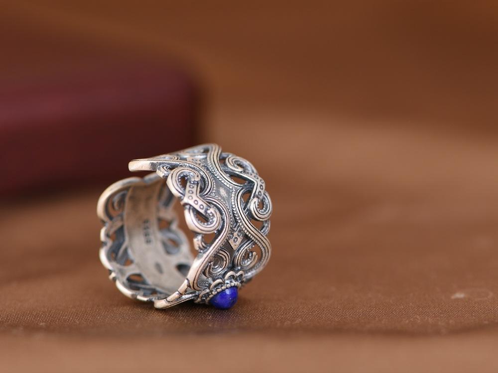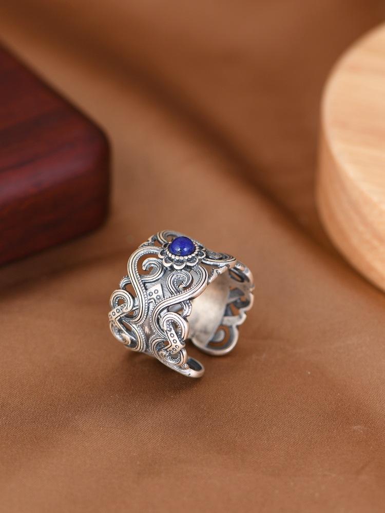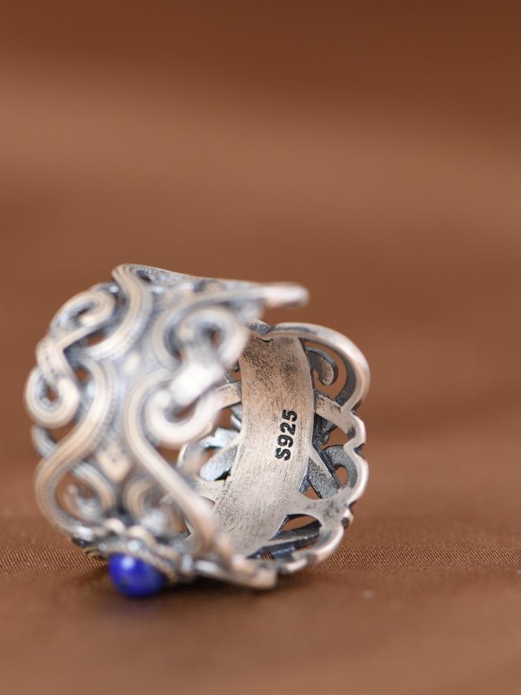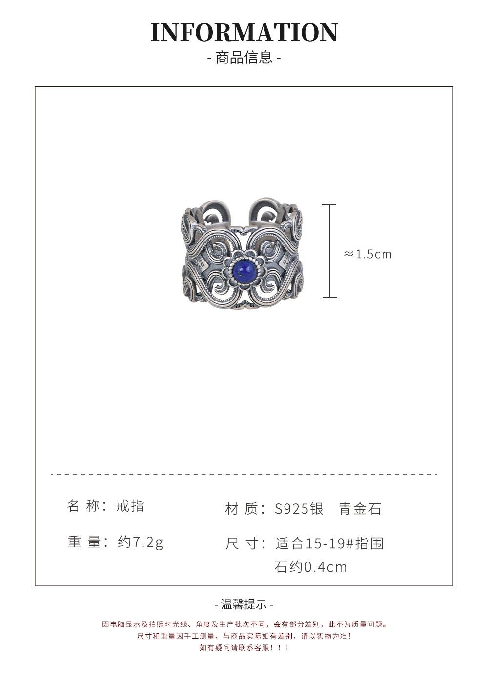 Anillo de plata S925 Golden Deer King, estilo retro, sencillo, con hierba Tang, versión ancha, con incrustaciones de lapislázuli, para mujer, accesorios de pulsera y anillo