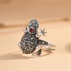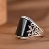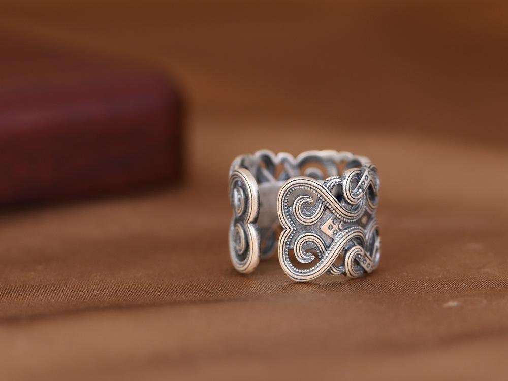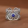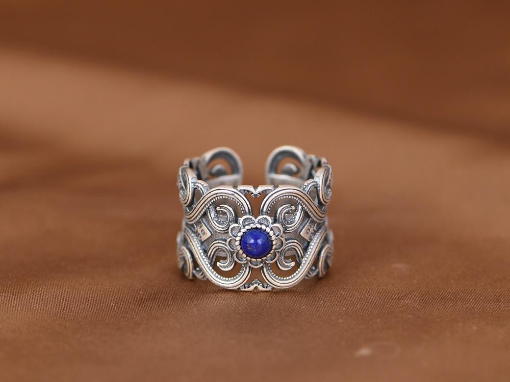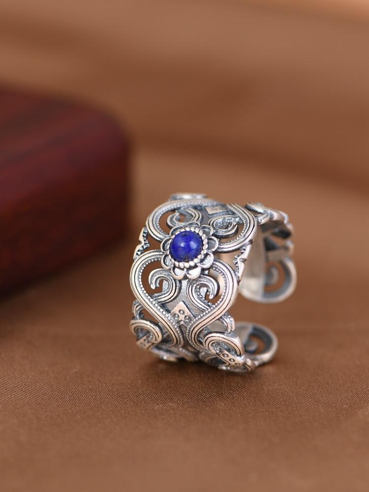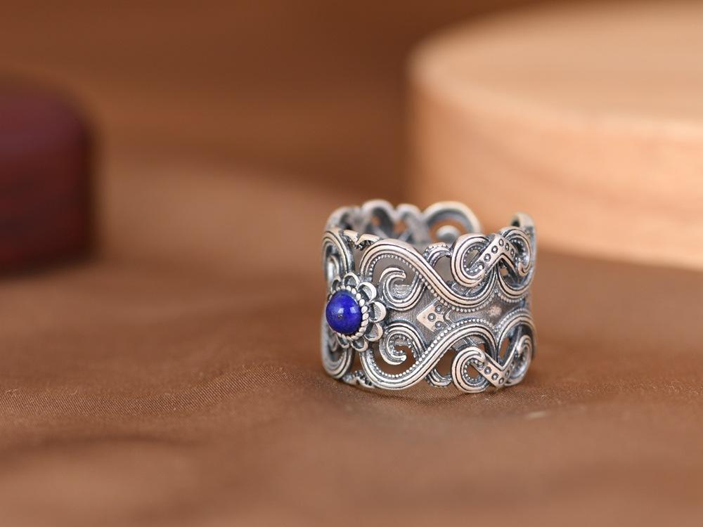 Anillo de plata S925 Golden Deer King, estilo retro, sencillo, con hierba Tang, versión ancha, con incrustaciones de lapislázuli, para mujer, accesorios de pulsera y anillo