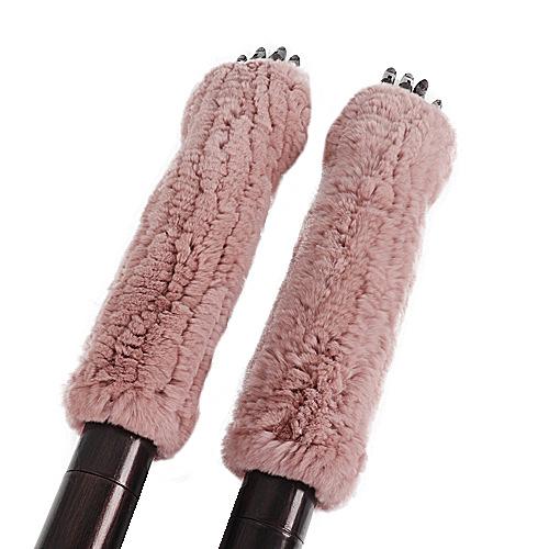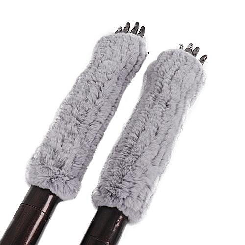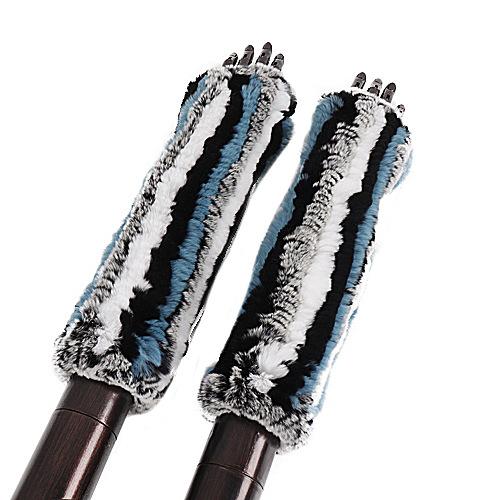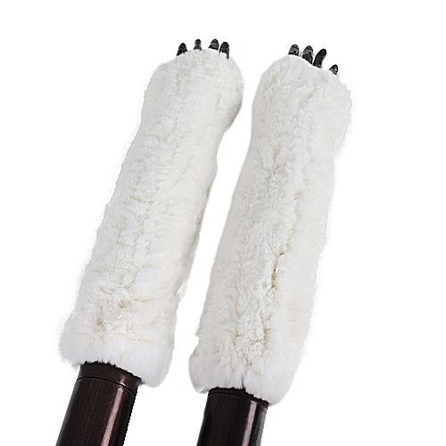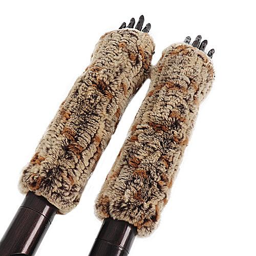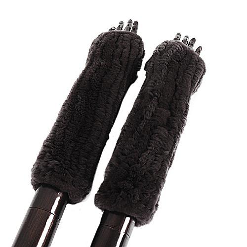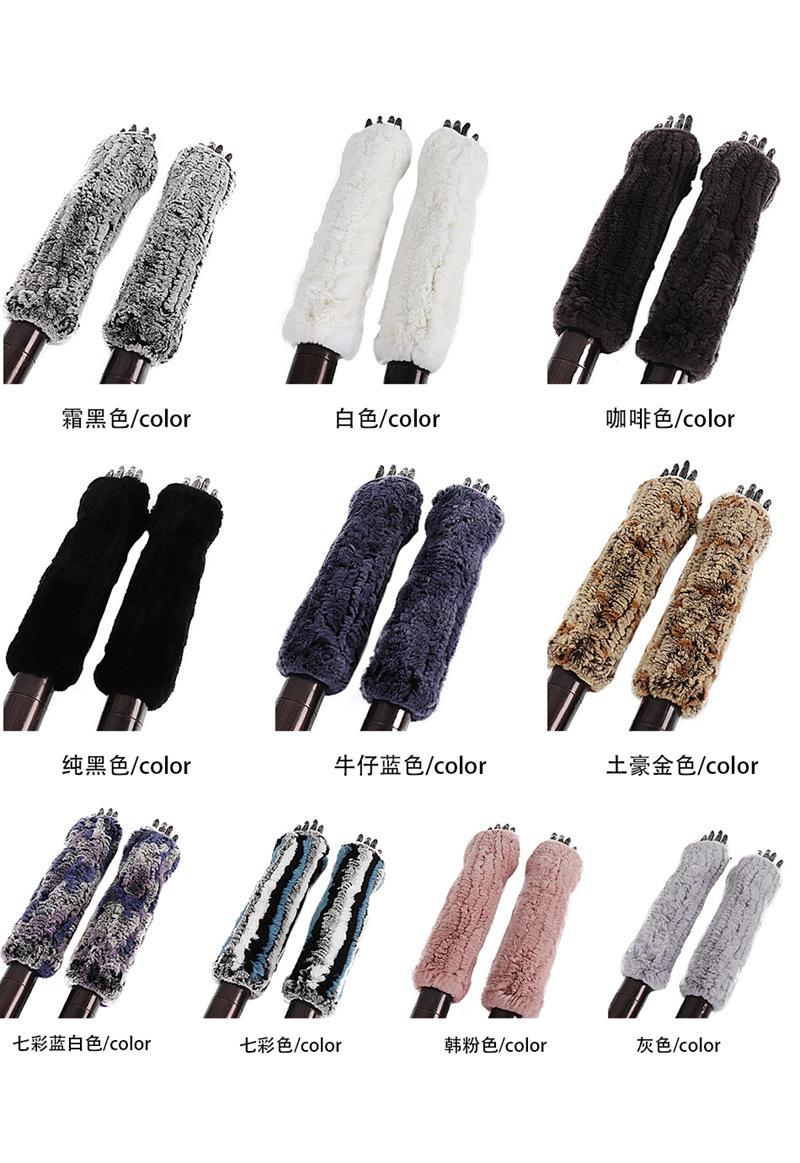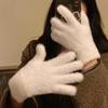 Guantes de piel de conejo Rex de invierno coreanos, bonitos guantes de medio dedo cálidos con forro polar grueso y felpa para mujer