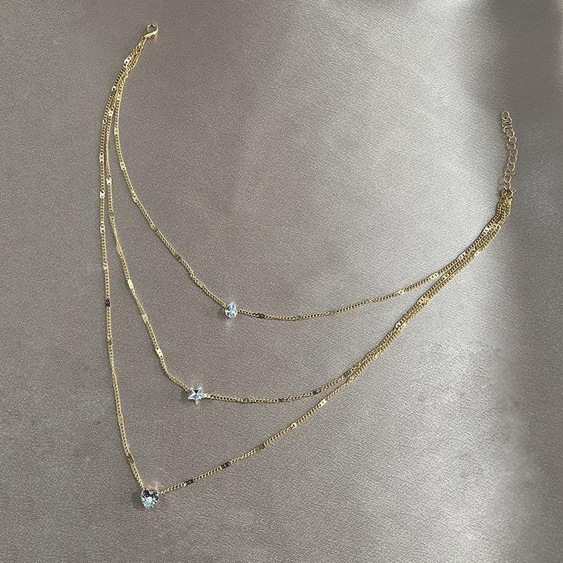 Exportación Transfronteriza Más Vendido Moda y Simple Colgante Retro de Estrella de Cinco Puntas Corazón Gota de Agua Collar Cadena para Clavícula