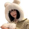 Otoño e invierno super lindo sombrero de felpa con orejas de oso, lindo rostro, gorro pequeño y cálido, ciclismo para mujer, esquí, protección para las orejas, sombrero Lei Feng