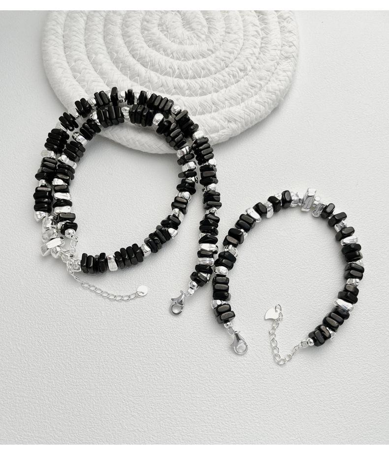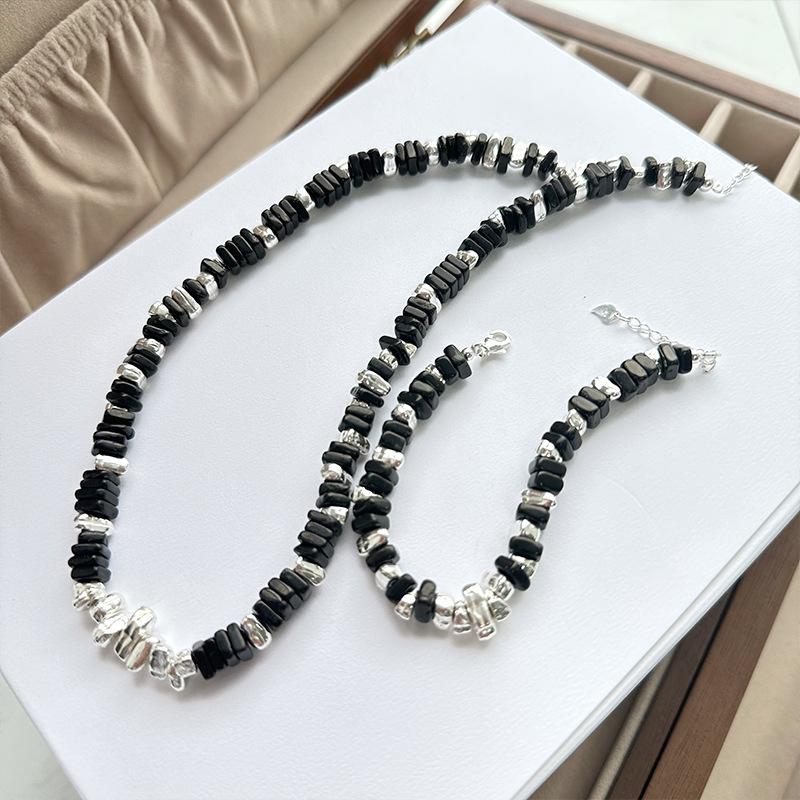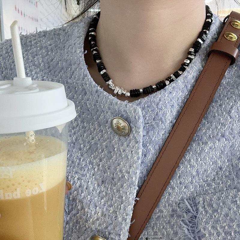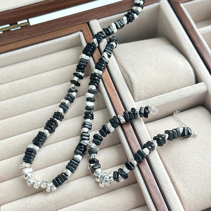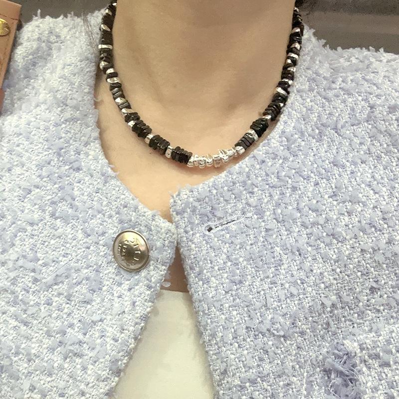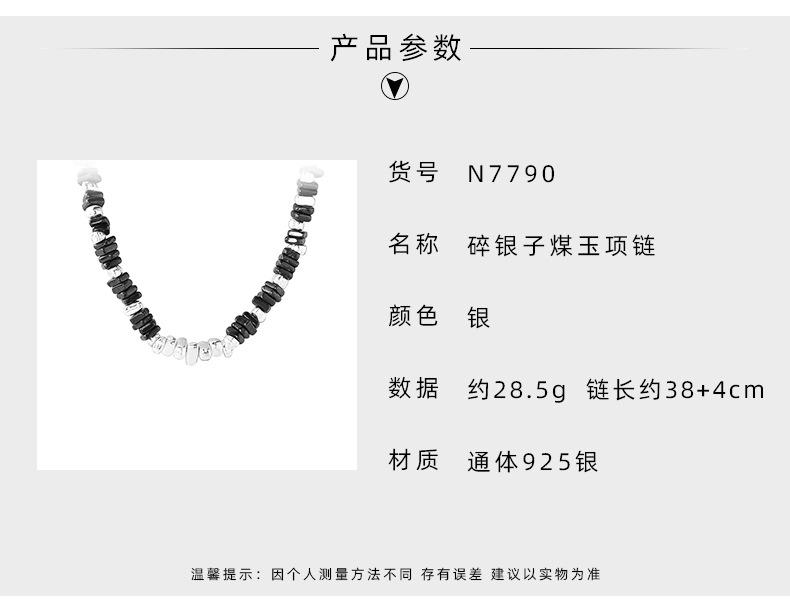 Collar de Plata Esterlina 925 Plata Rota Jade Carbón Diseño Simple de Industria Pesada Moda Hip Hop Calle Collar Corto para Mujer N7790