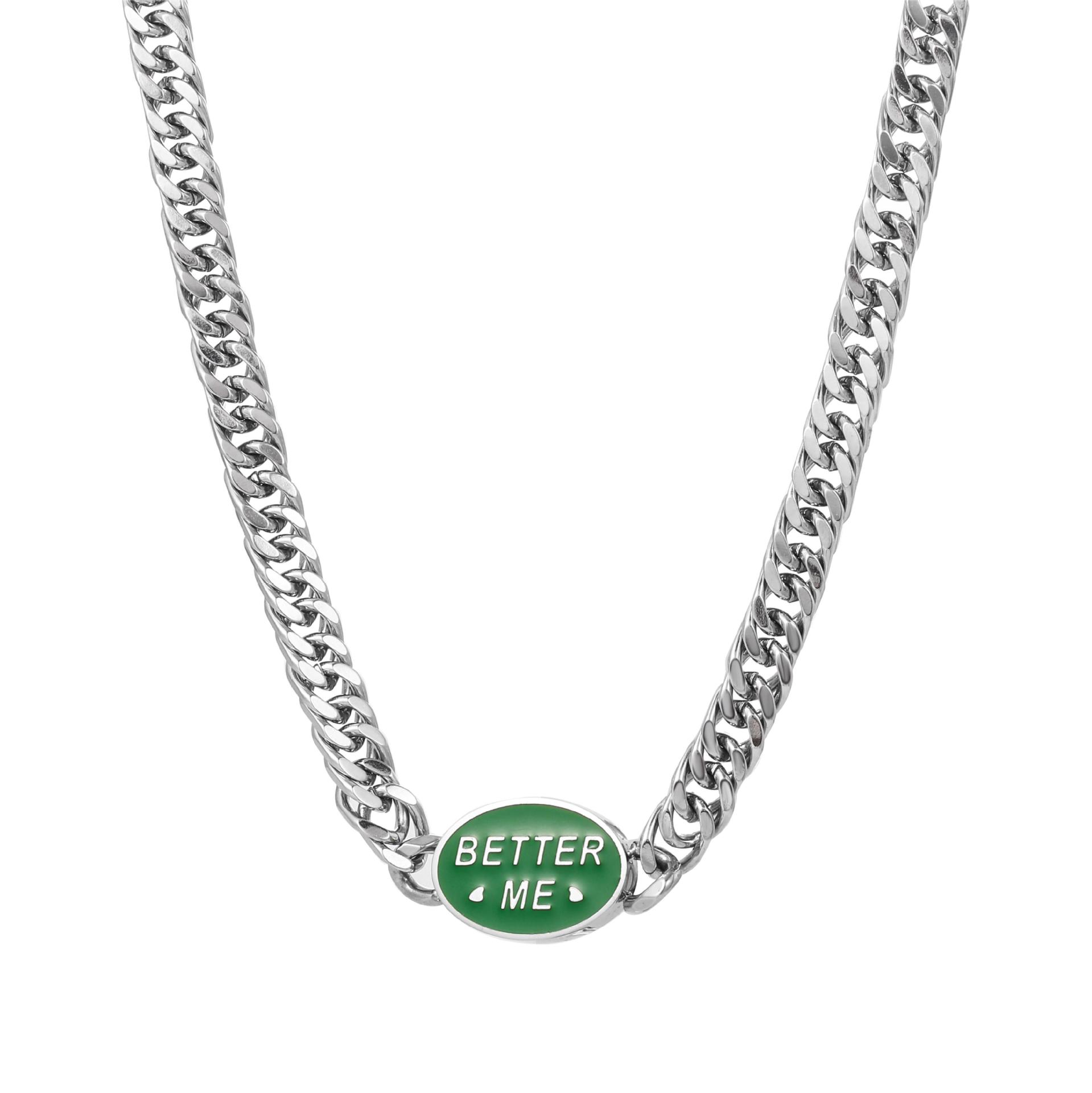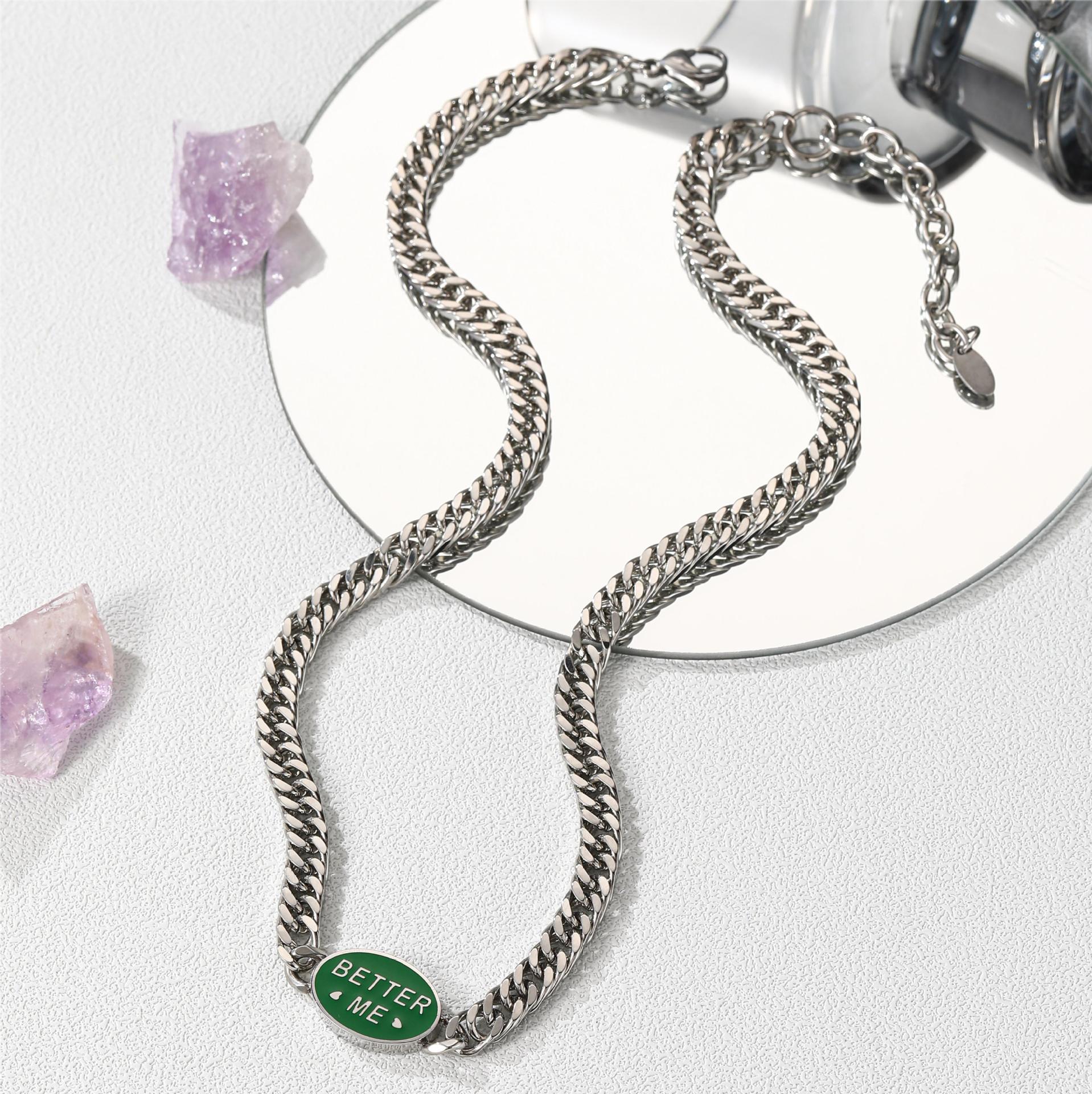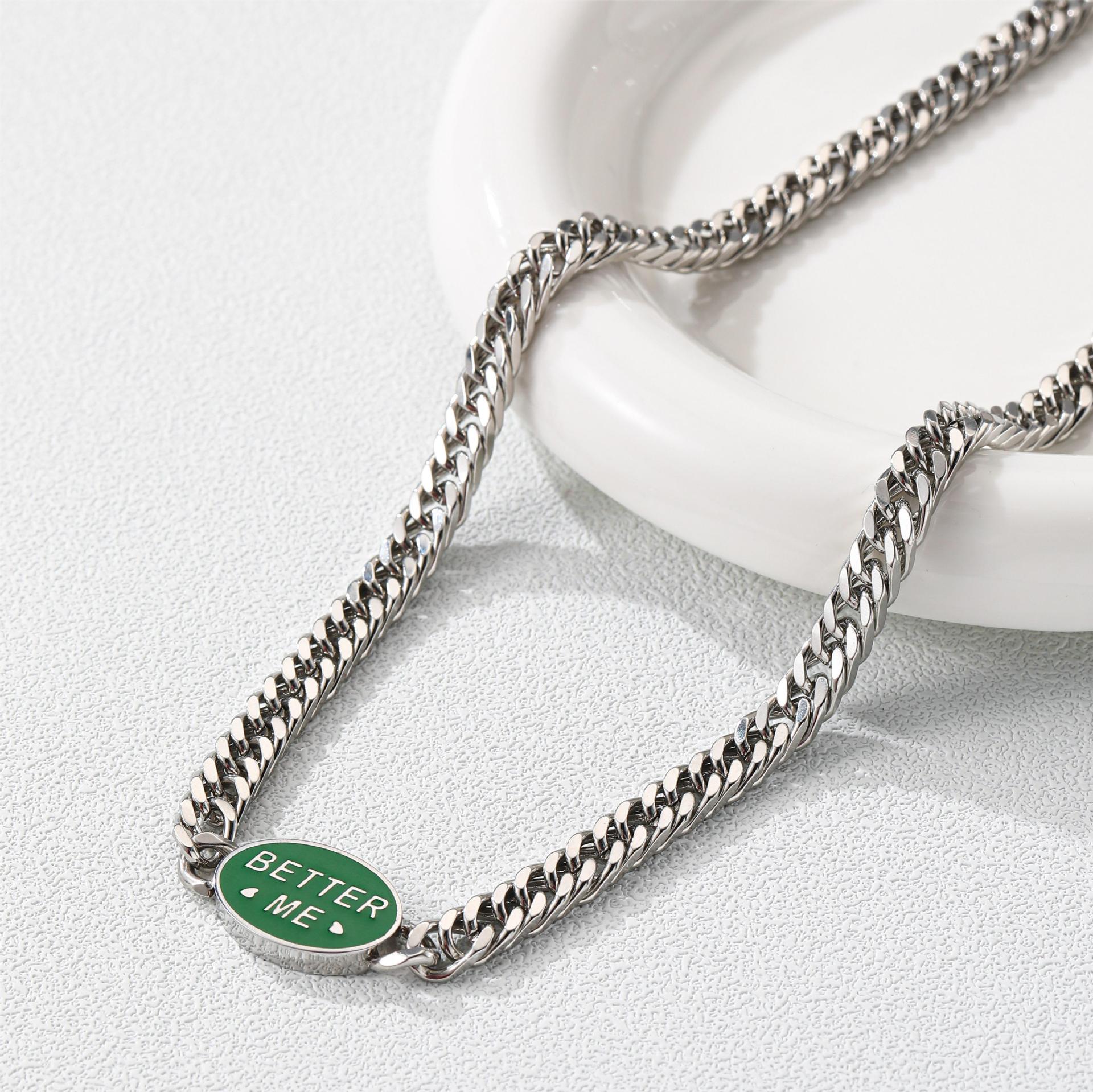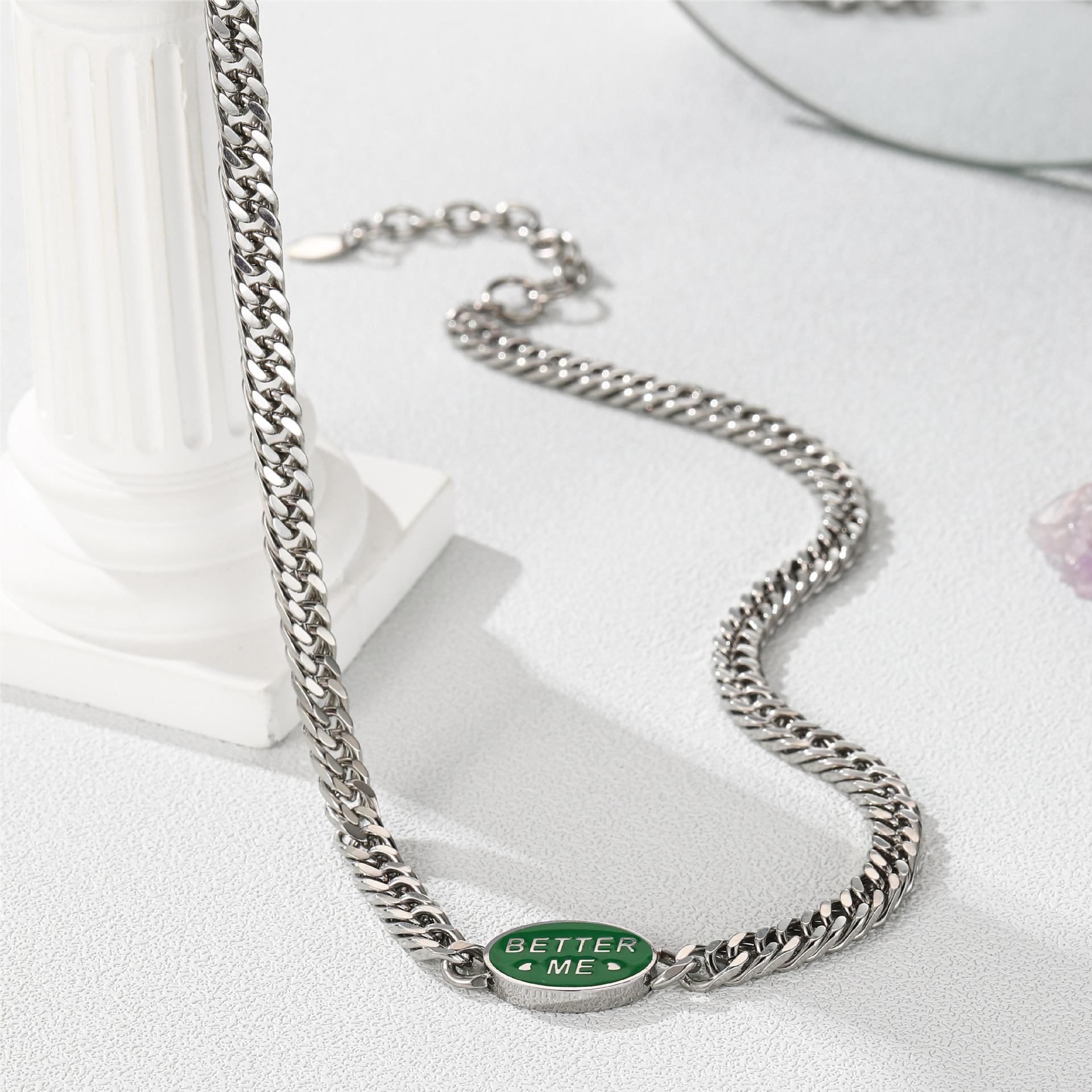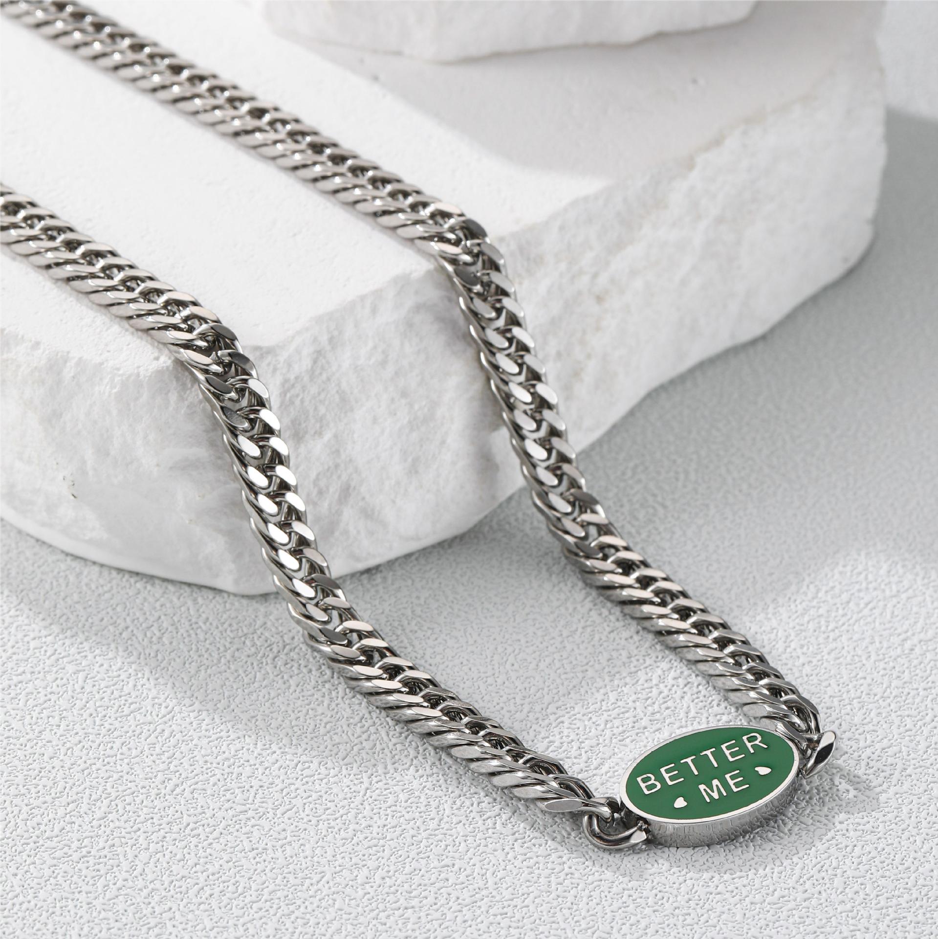 Collar de cadena de clavícula de acero de titanio de alta calidad para hombre y mujer, estilo hip hop, cadena cubana de la marca Green Glue, de moda europea y americana