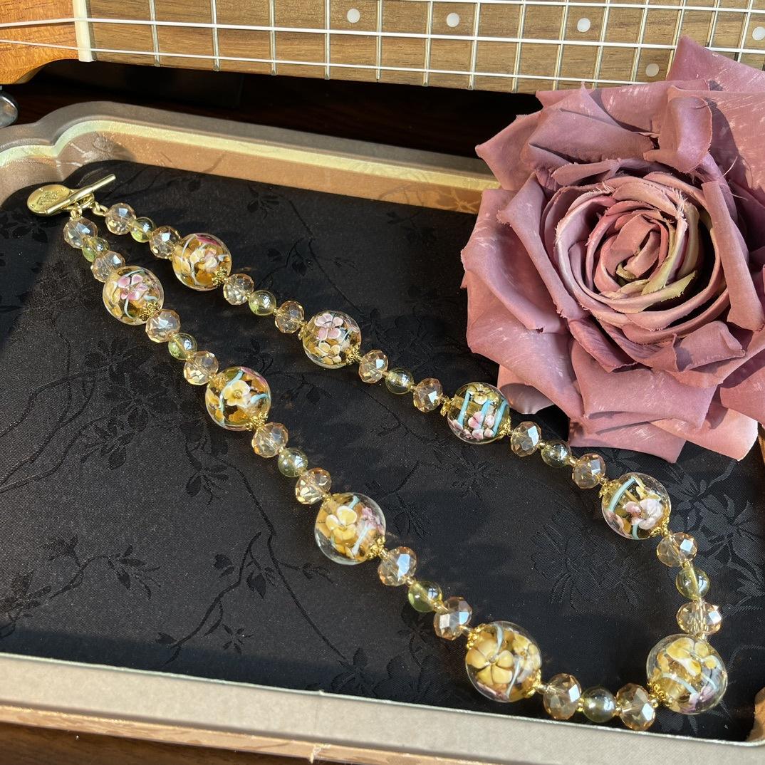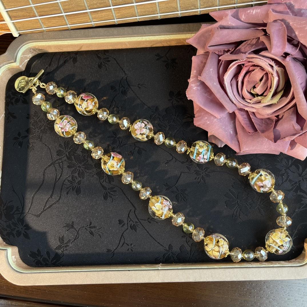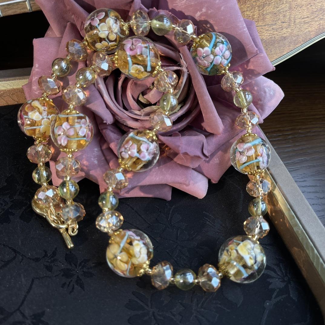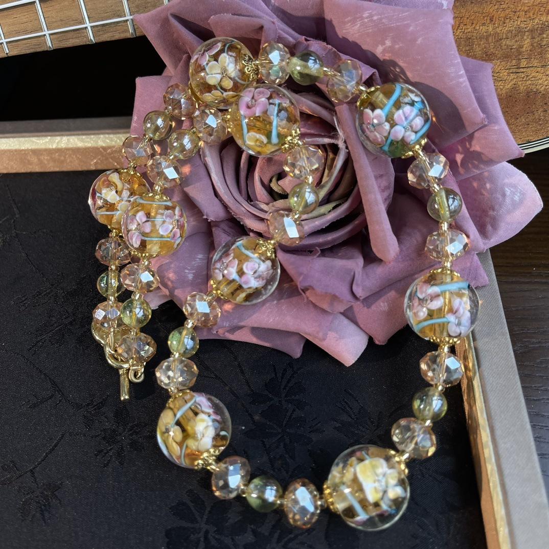 [Honey South] Collar Joker corto de moda con cuentas de vidrio de la serie dorada de la industria pesada retro vintage