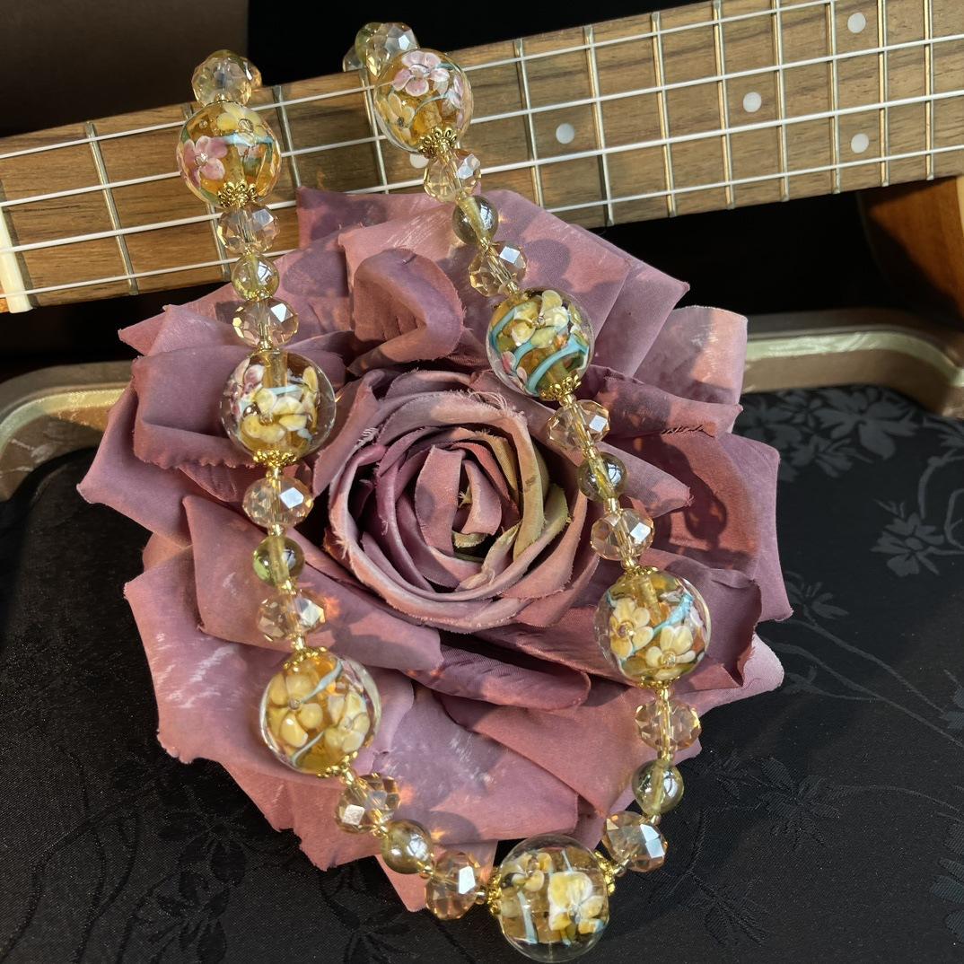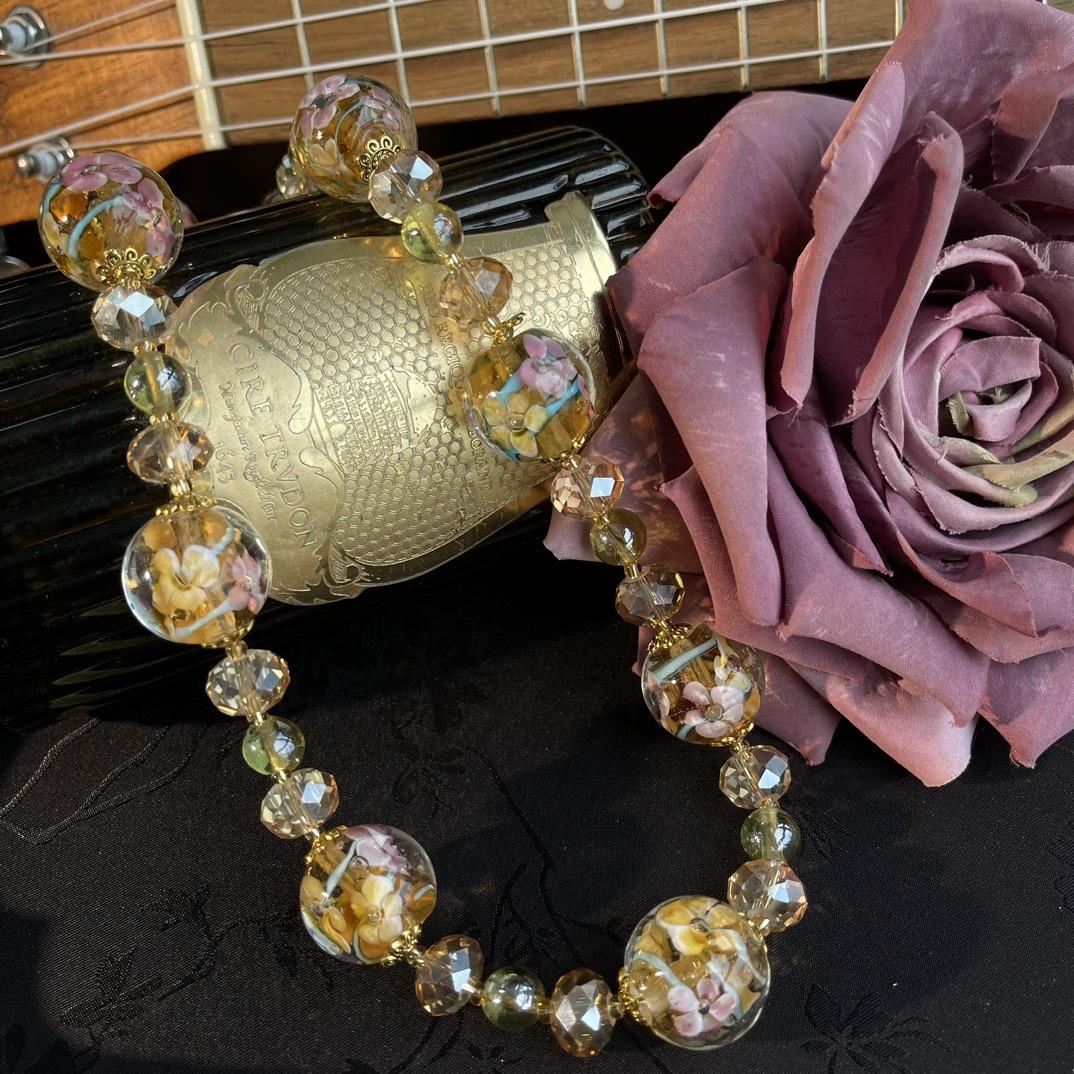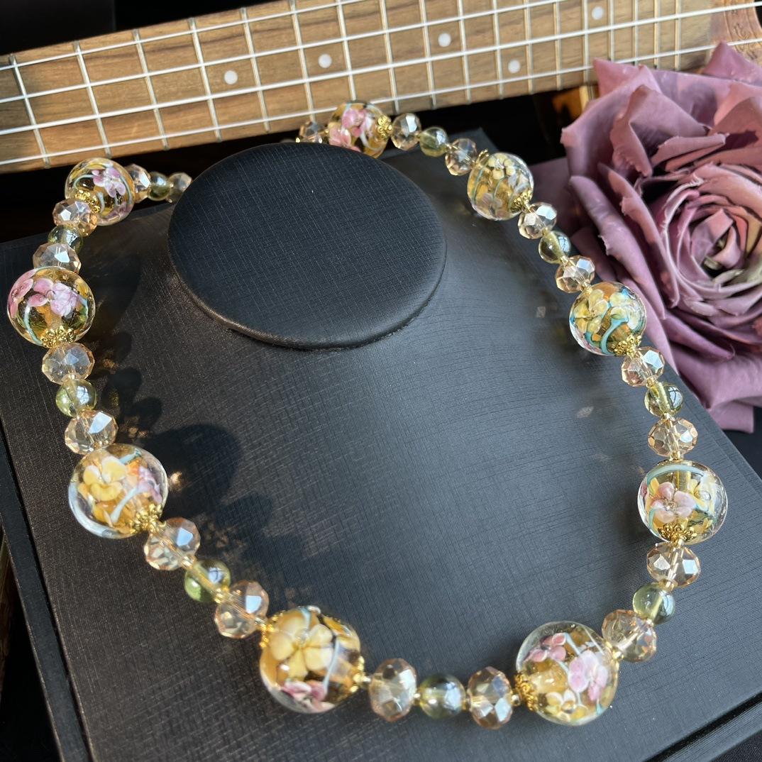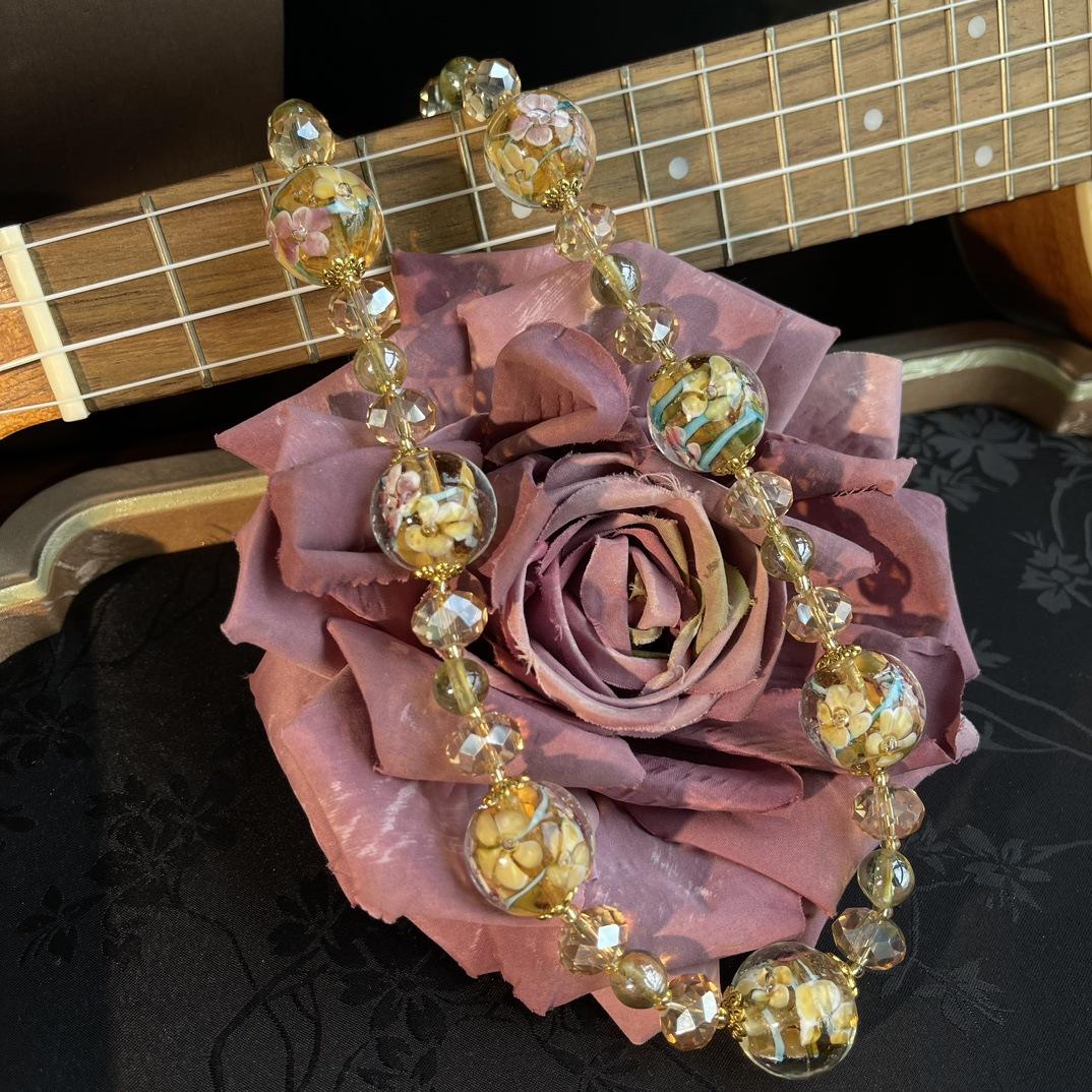 [Honey South] Collar Joker corto de moda con cuentas de vidrio de la serie dorada de la industria pesada retro vintage
