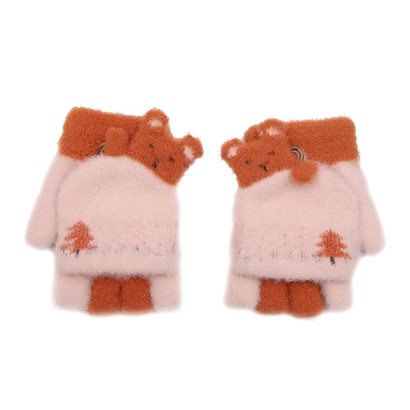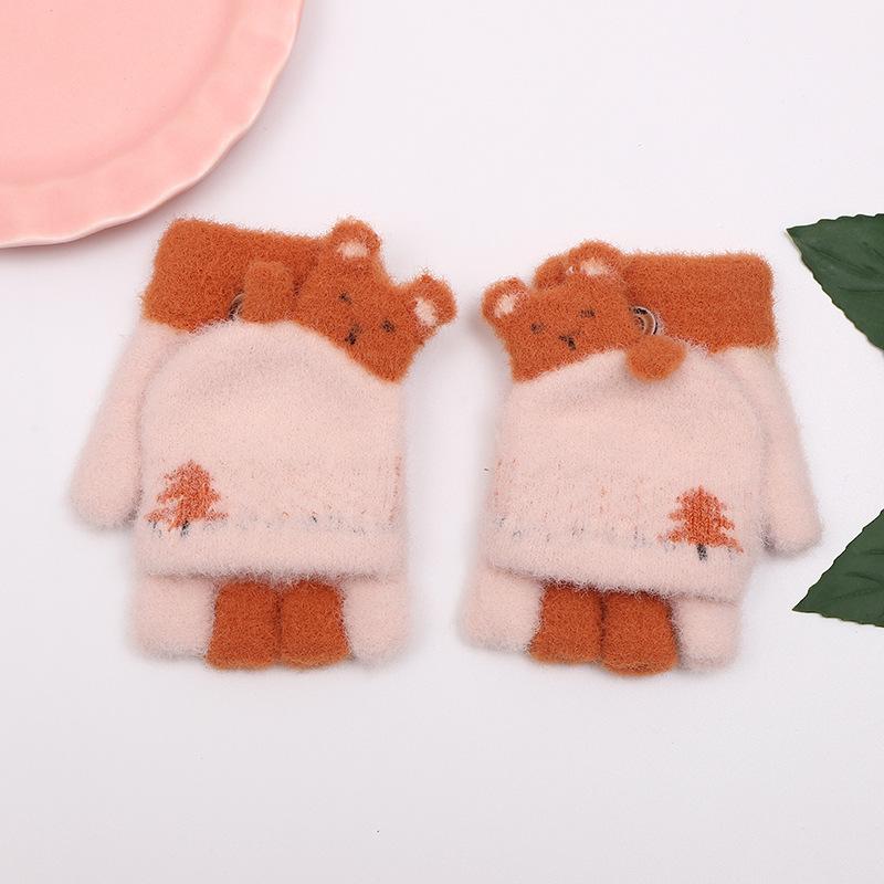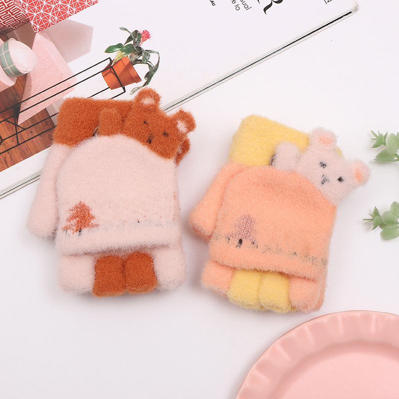 Guantes de punto de invierno para niños, guantes de medio dedo, guantes de lana cálidos y resistentes al frío, guantes de escritura para niños y niñas.