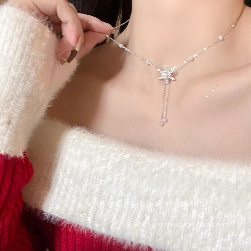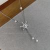 Collar de borla de perla de copo de nieve para mujer, cadena de clavícula de nicho de lujo ligero, cadena para suéter de otoño e invierno de alta calidad, accesorios elegantes de alta gama