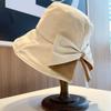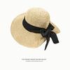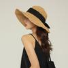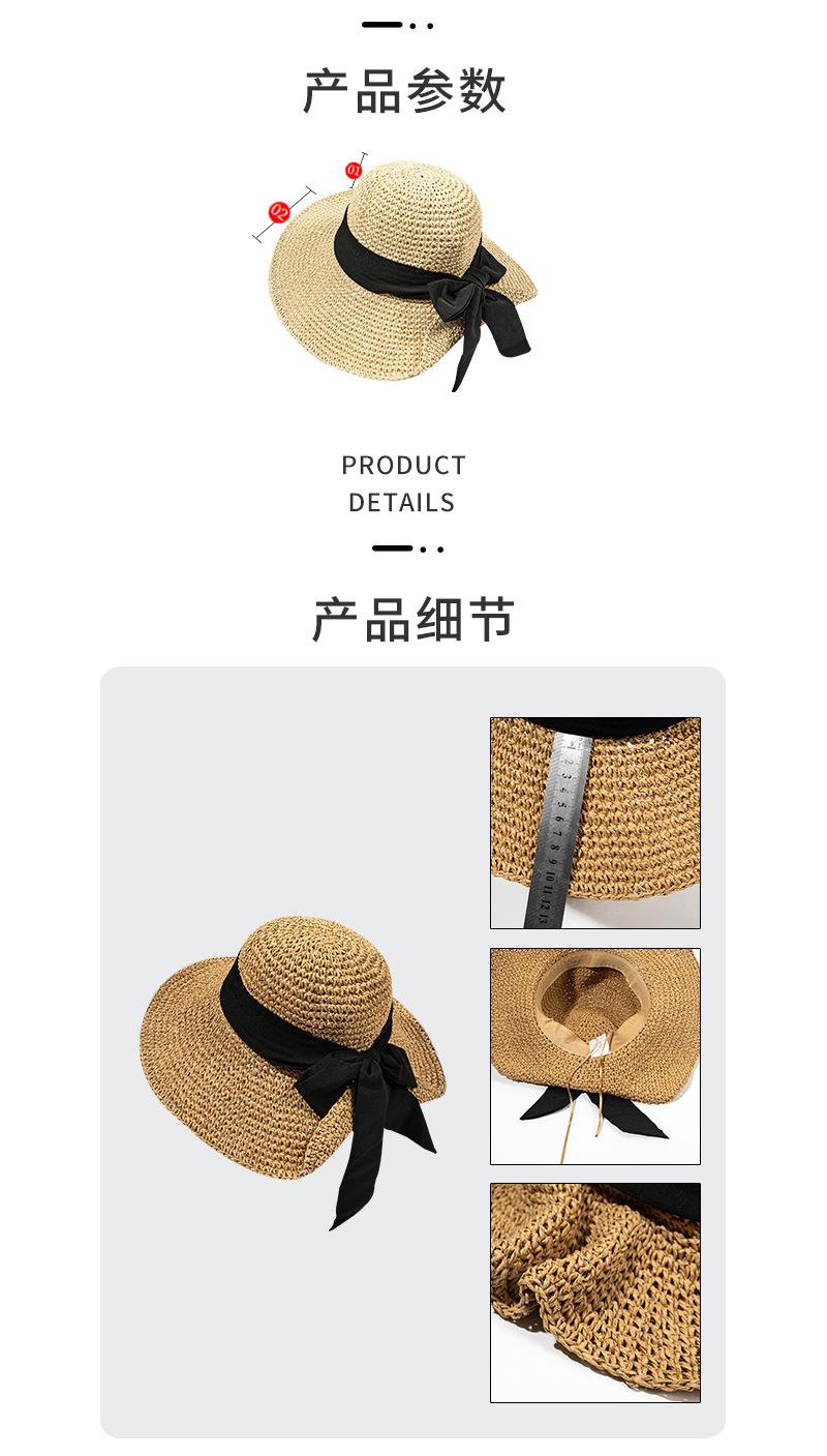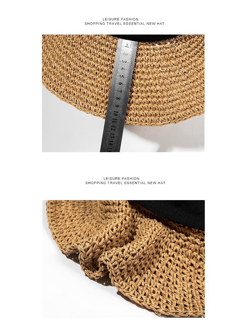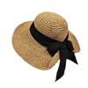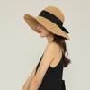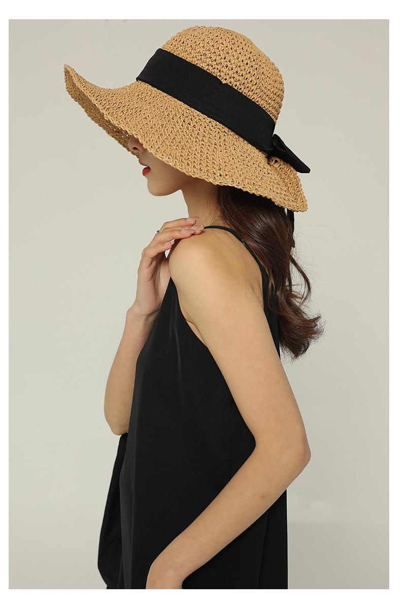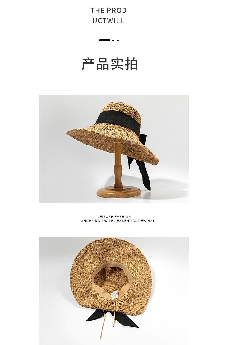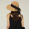 Sombrero de Pescador con Lazo Negro Sombrero de Paja para Mujer Estilo Japonés Ala Ancha Verano Viaje Combinable Protección Solar Sombrero para el Sol Primavera Verano